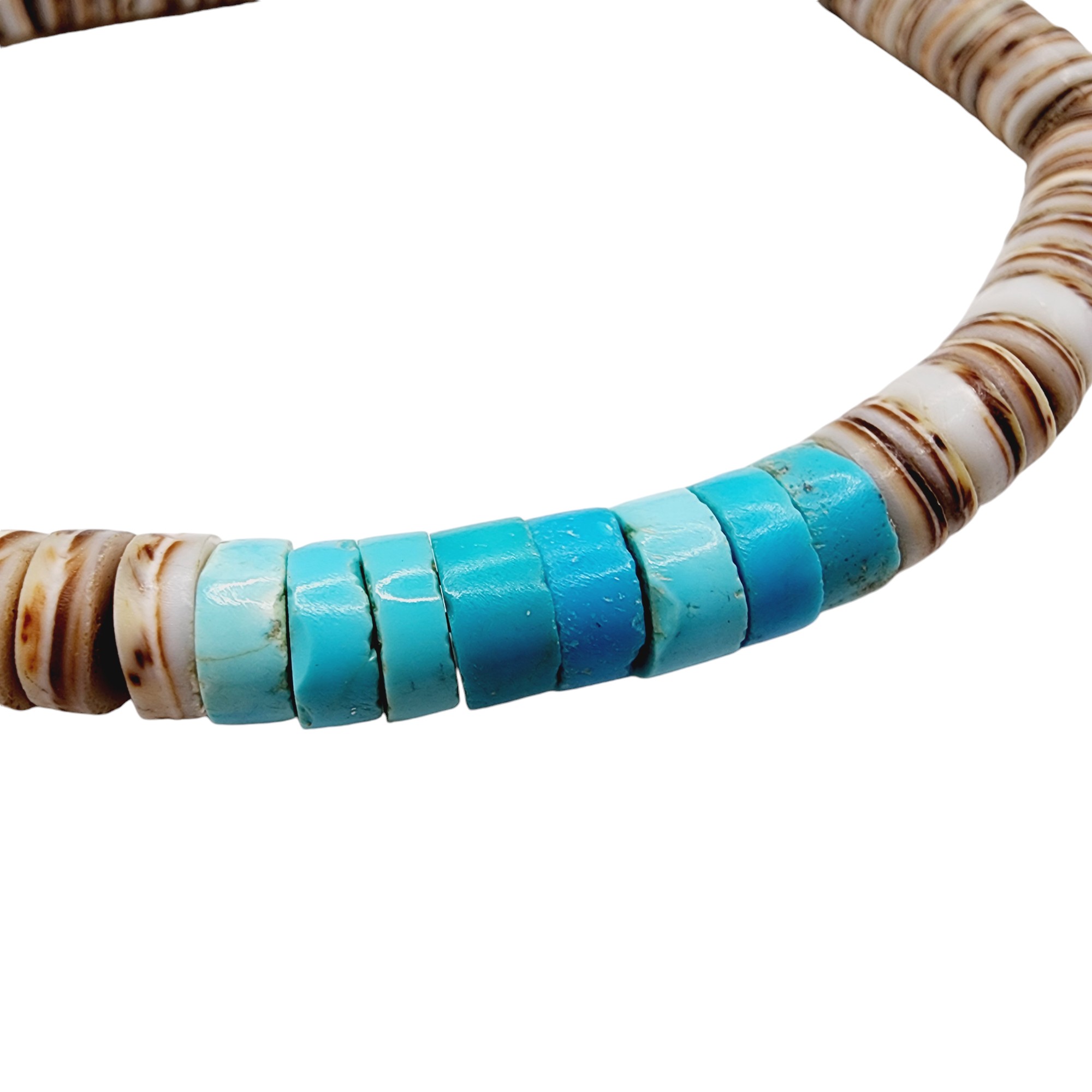 Vintage Turquoise and Shell Heishe Necklace 18.8g