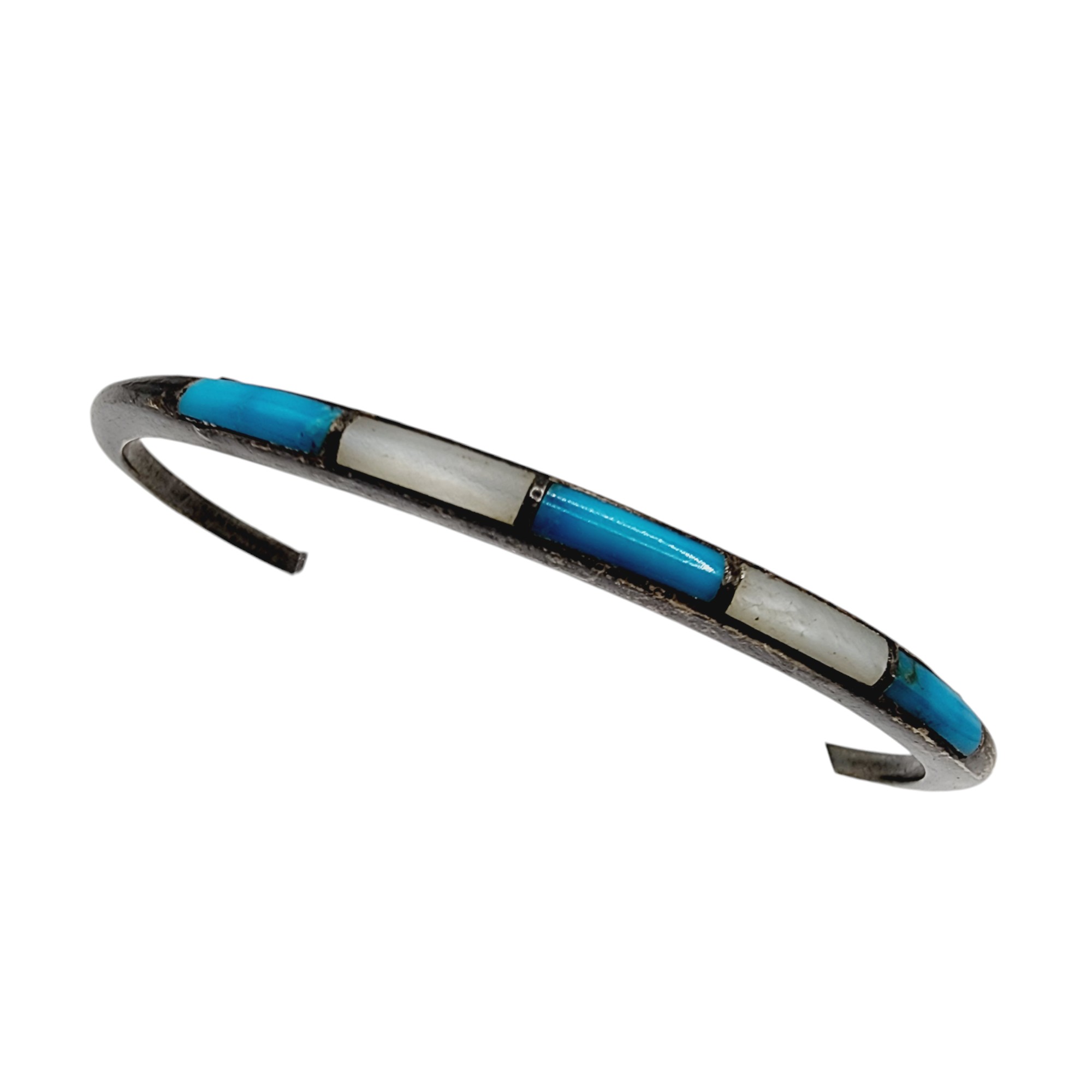 Zuni Sterling Turquoise Mother of Pearl Inlay Bracelet 8.6g