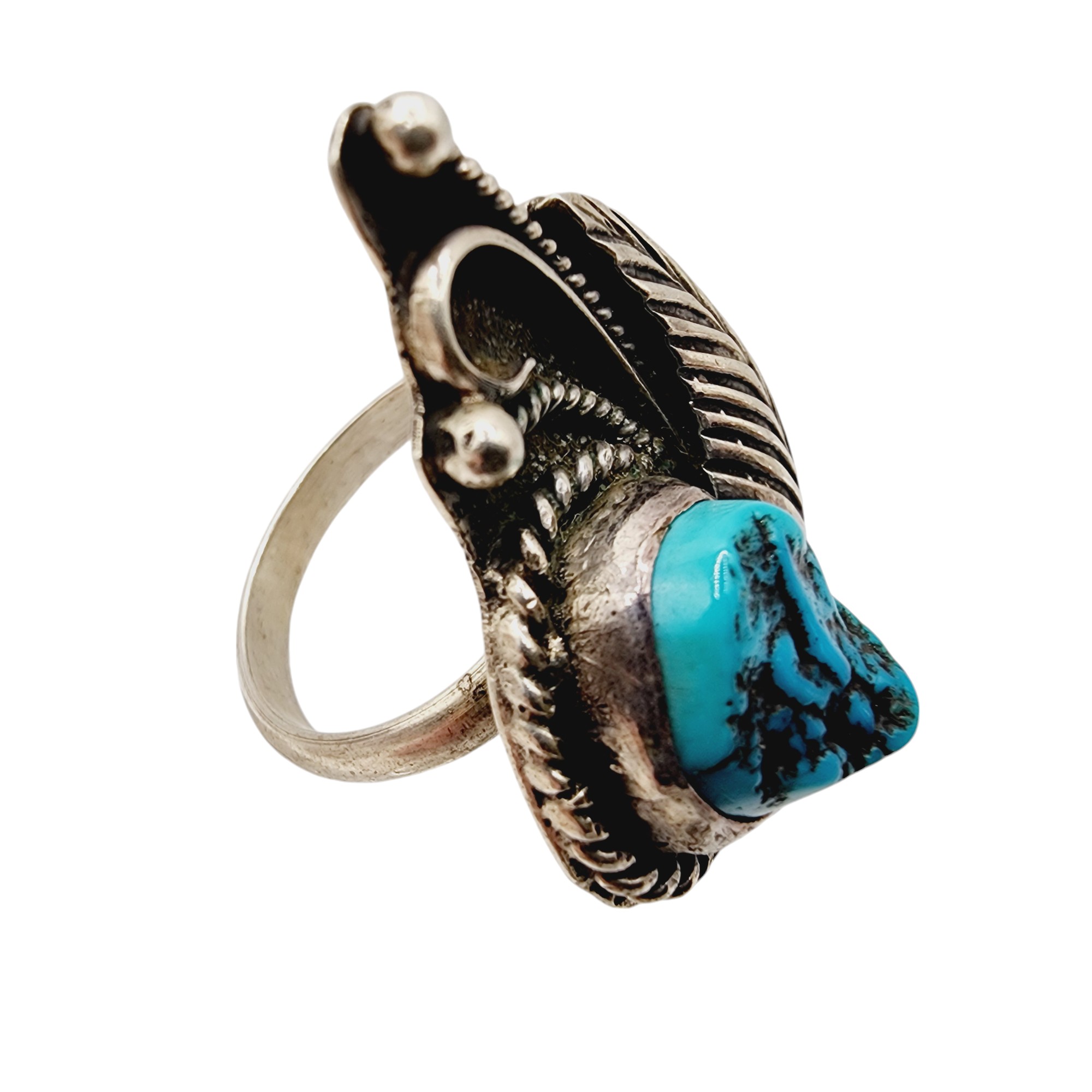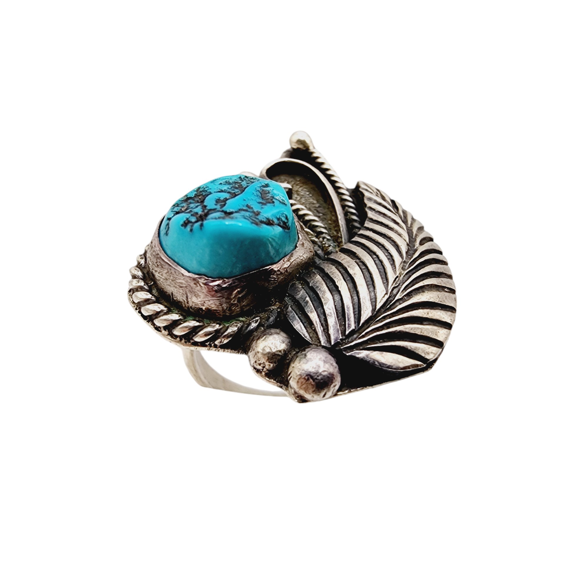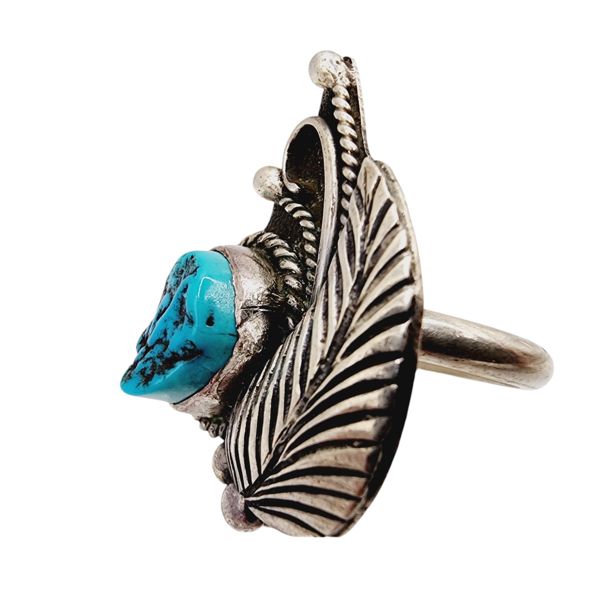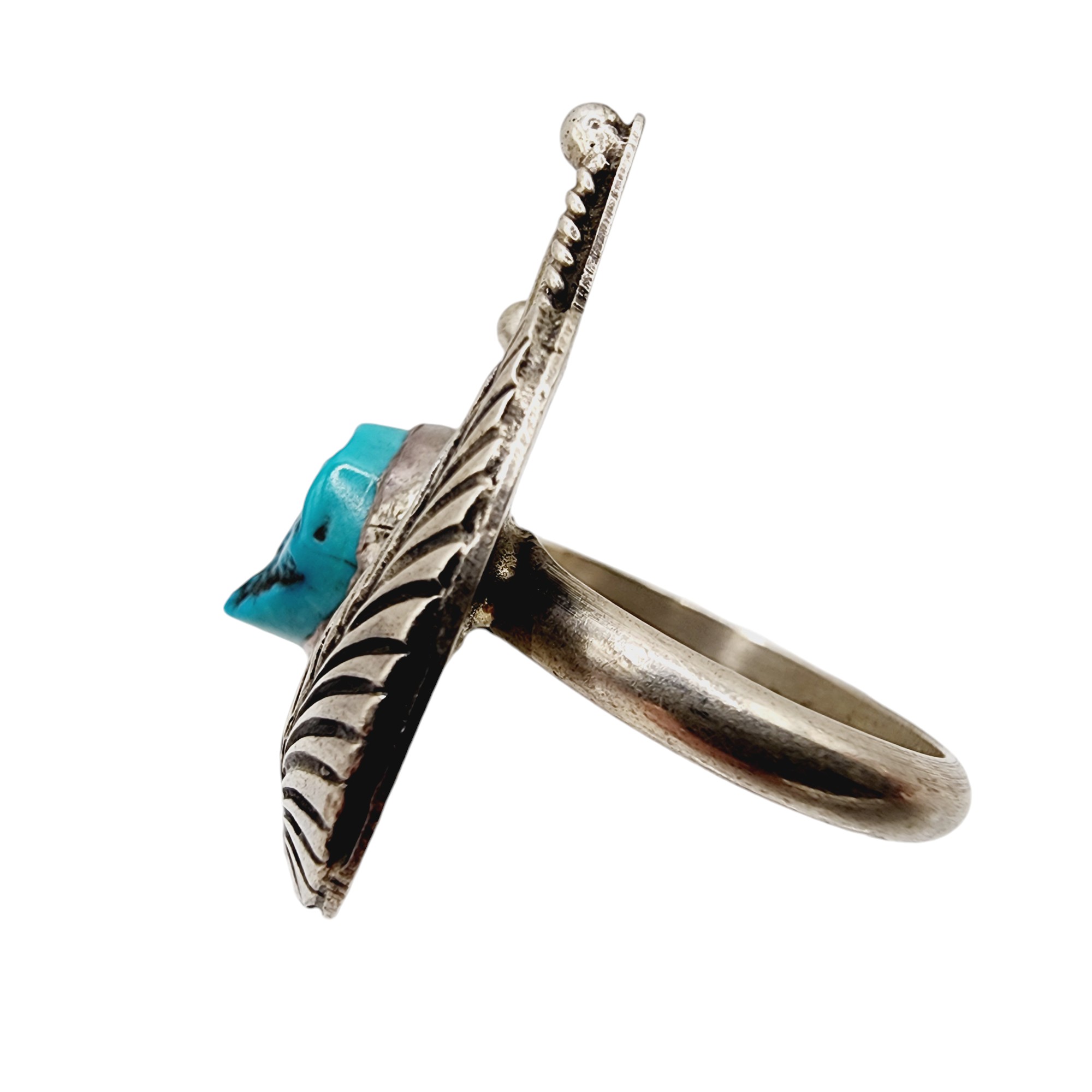 Beautiful Vintage Navajo Sterling Turquoise Feather Ring Sz 9 11.1g