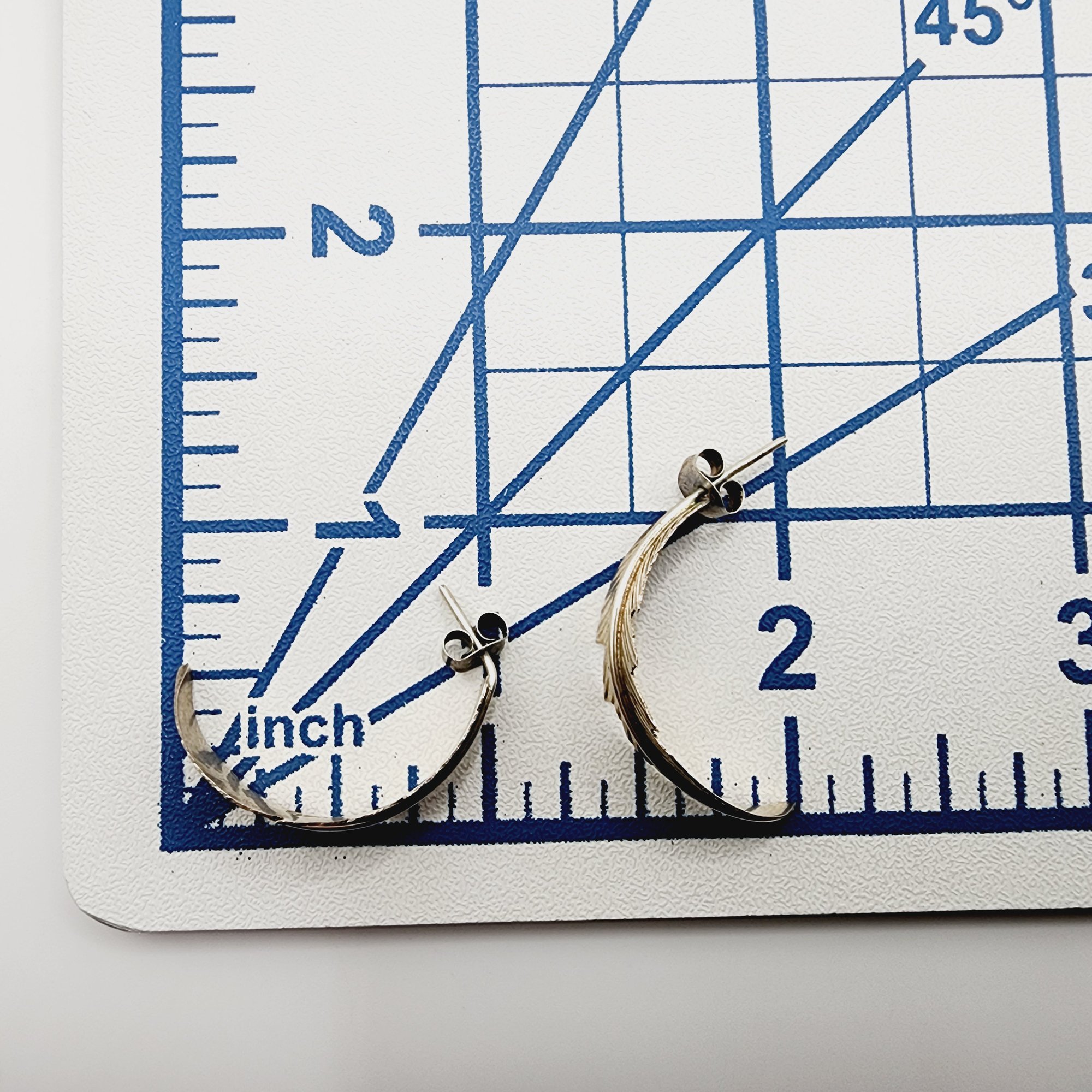 Allen Barney Navajo Sterling Feather Half Hoop Earrings 2.2g