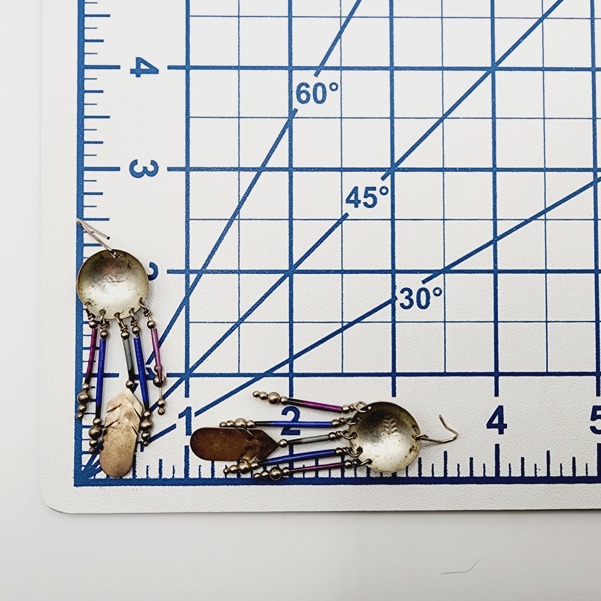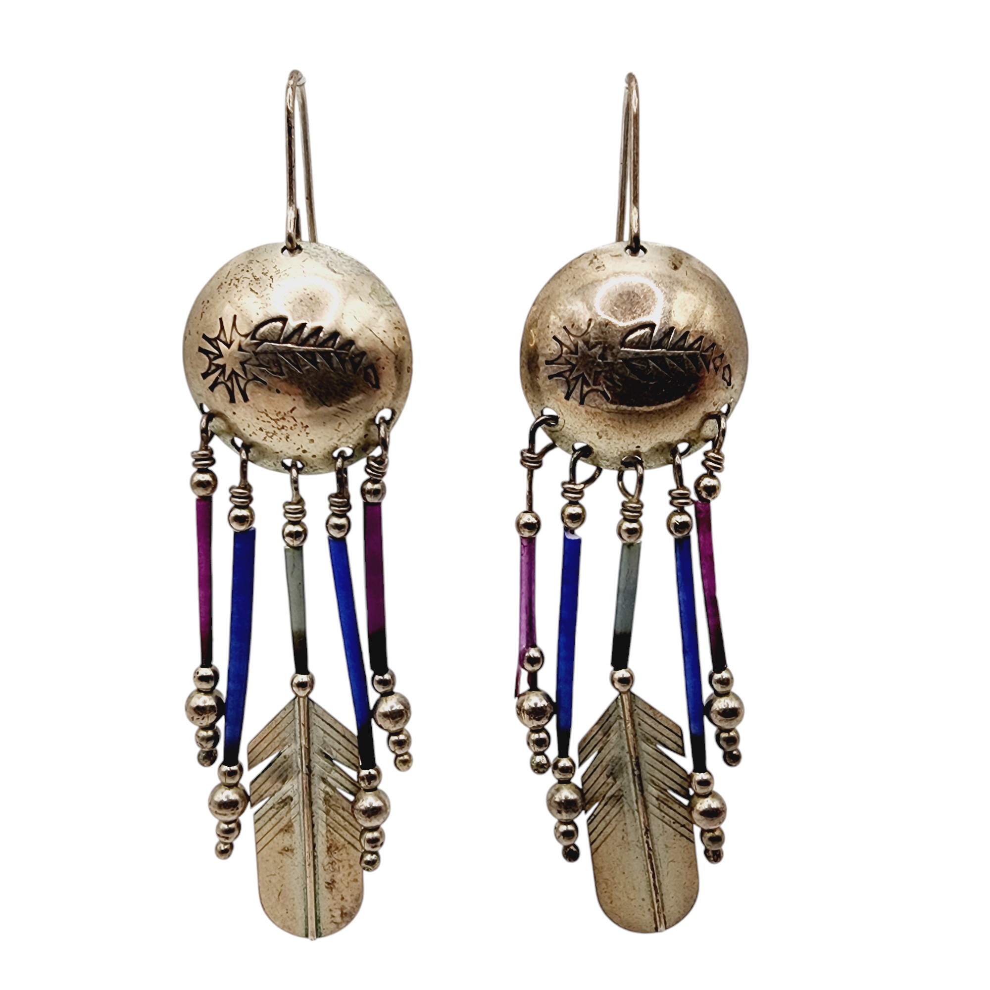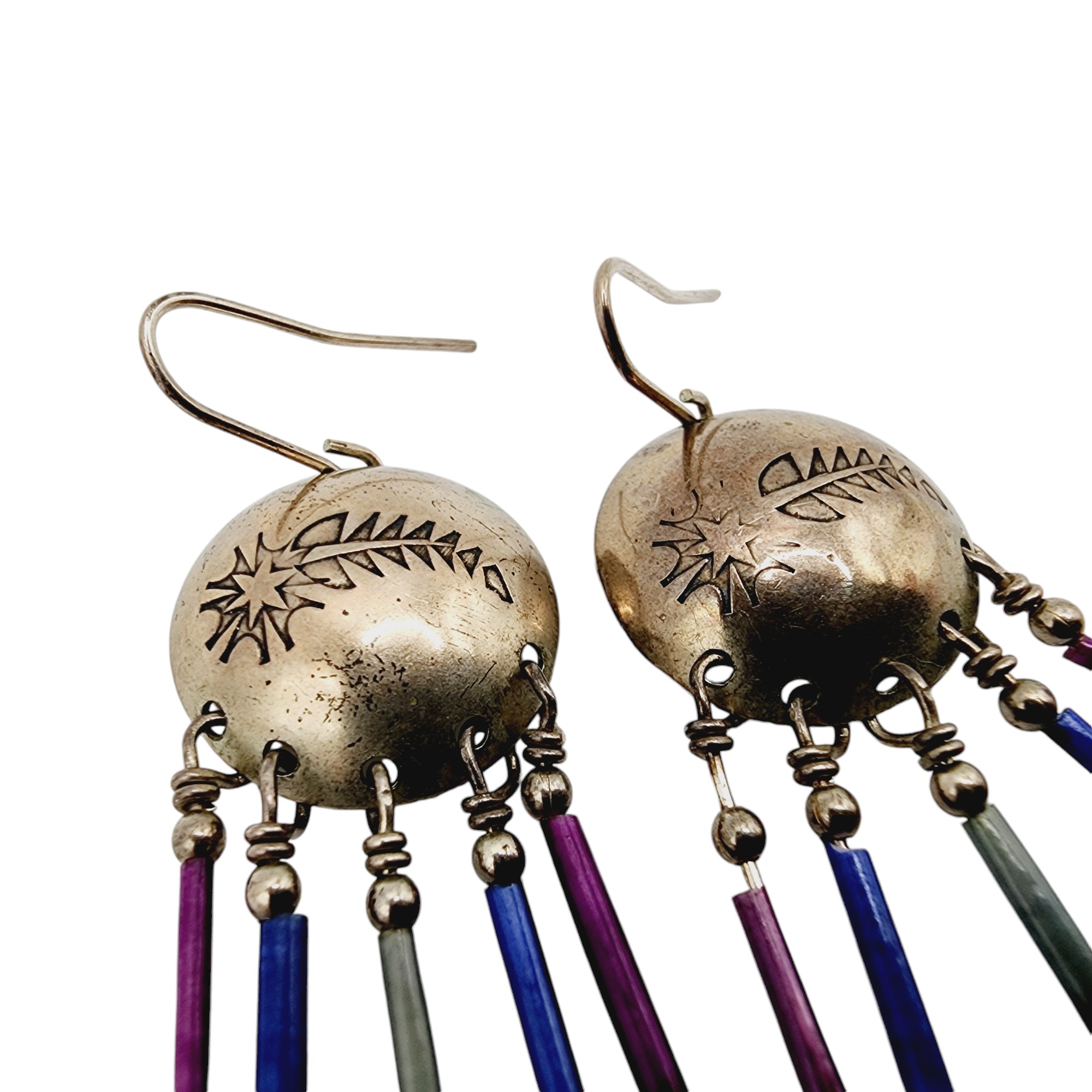 Vintage Signed LHTC Sterling Southwest Concho Stamped Feather Fringe Earrings 6g