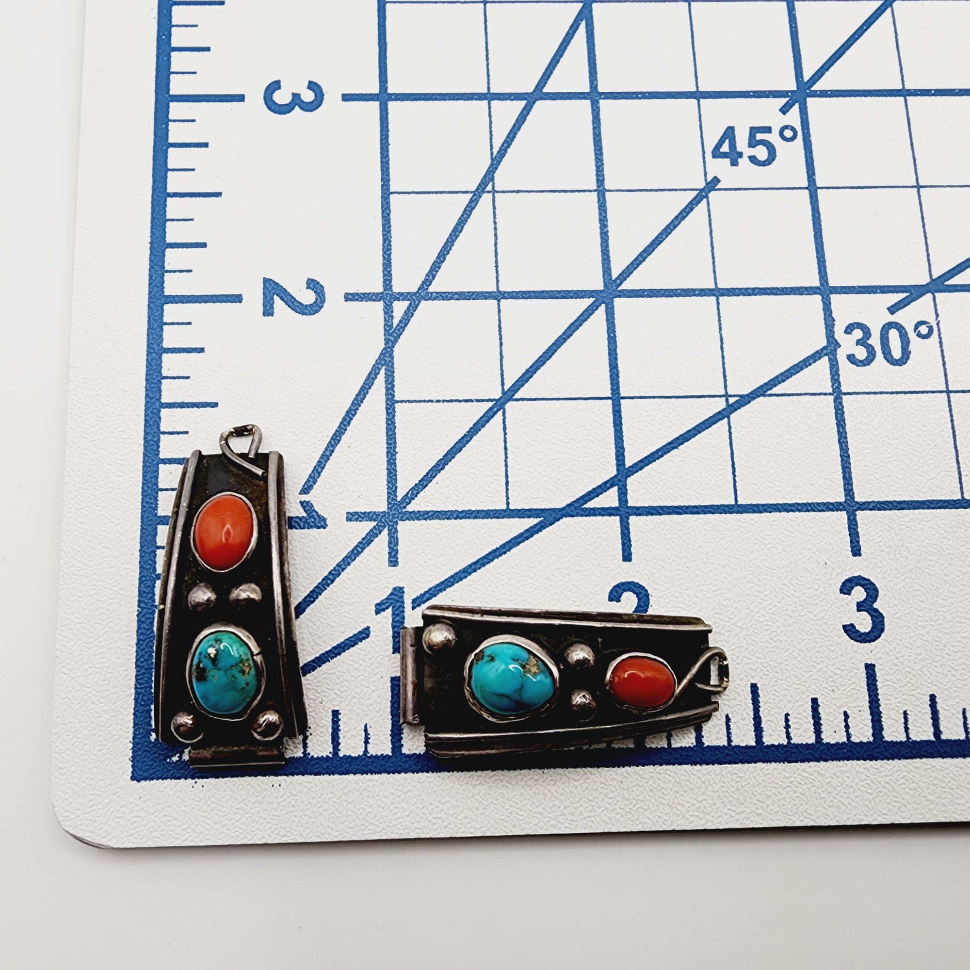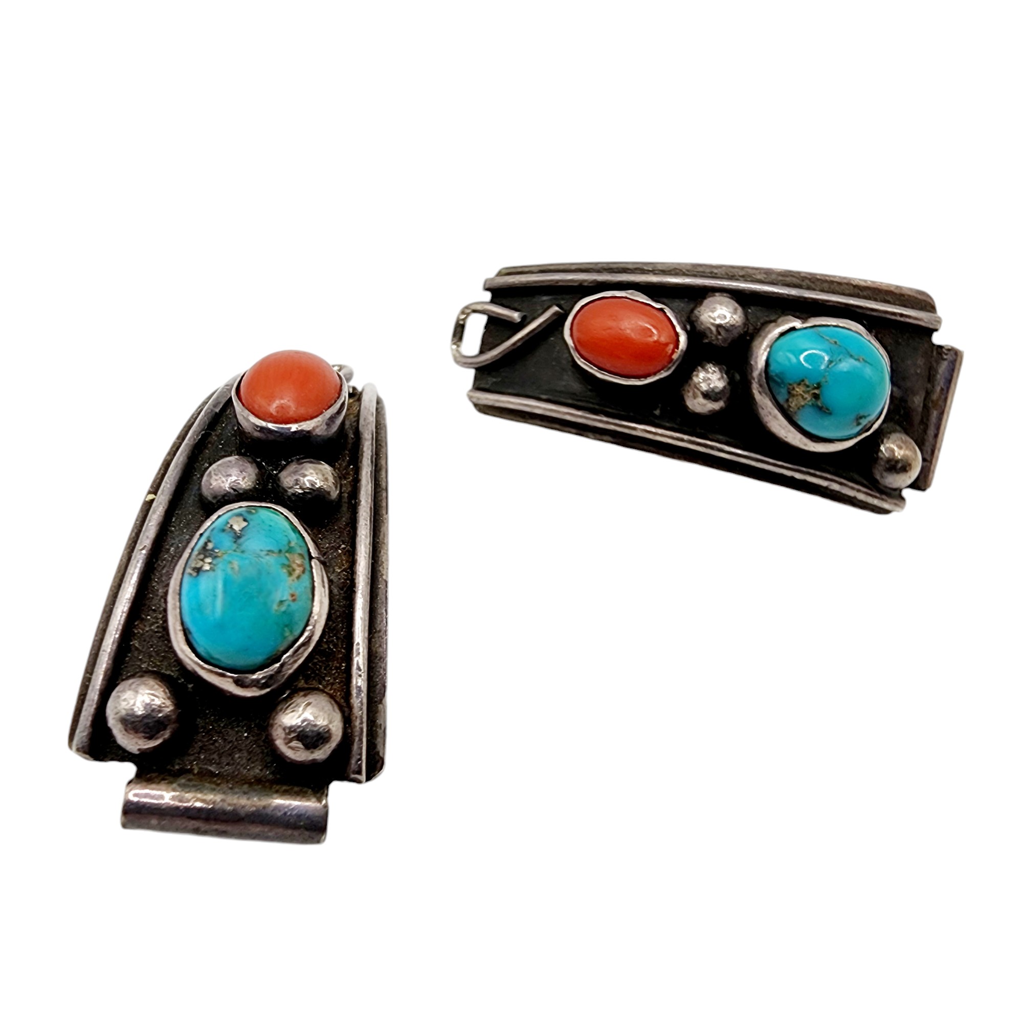 Vintage Navajo Sterling Coral Turquoise Watch Tips 11.6g