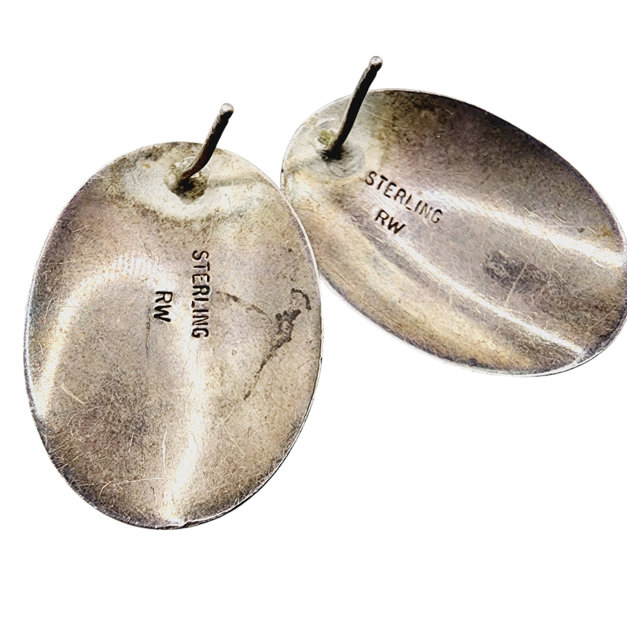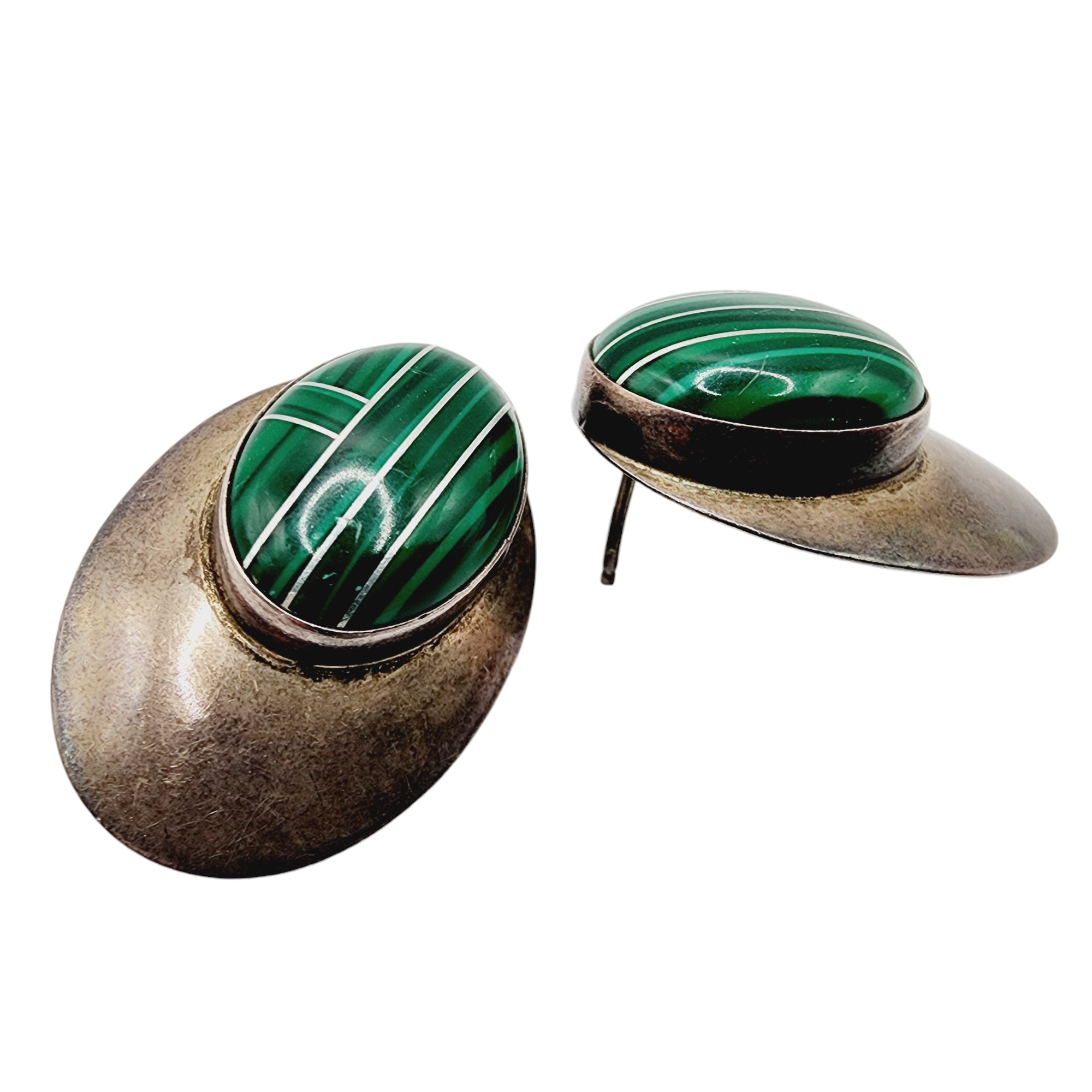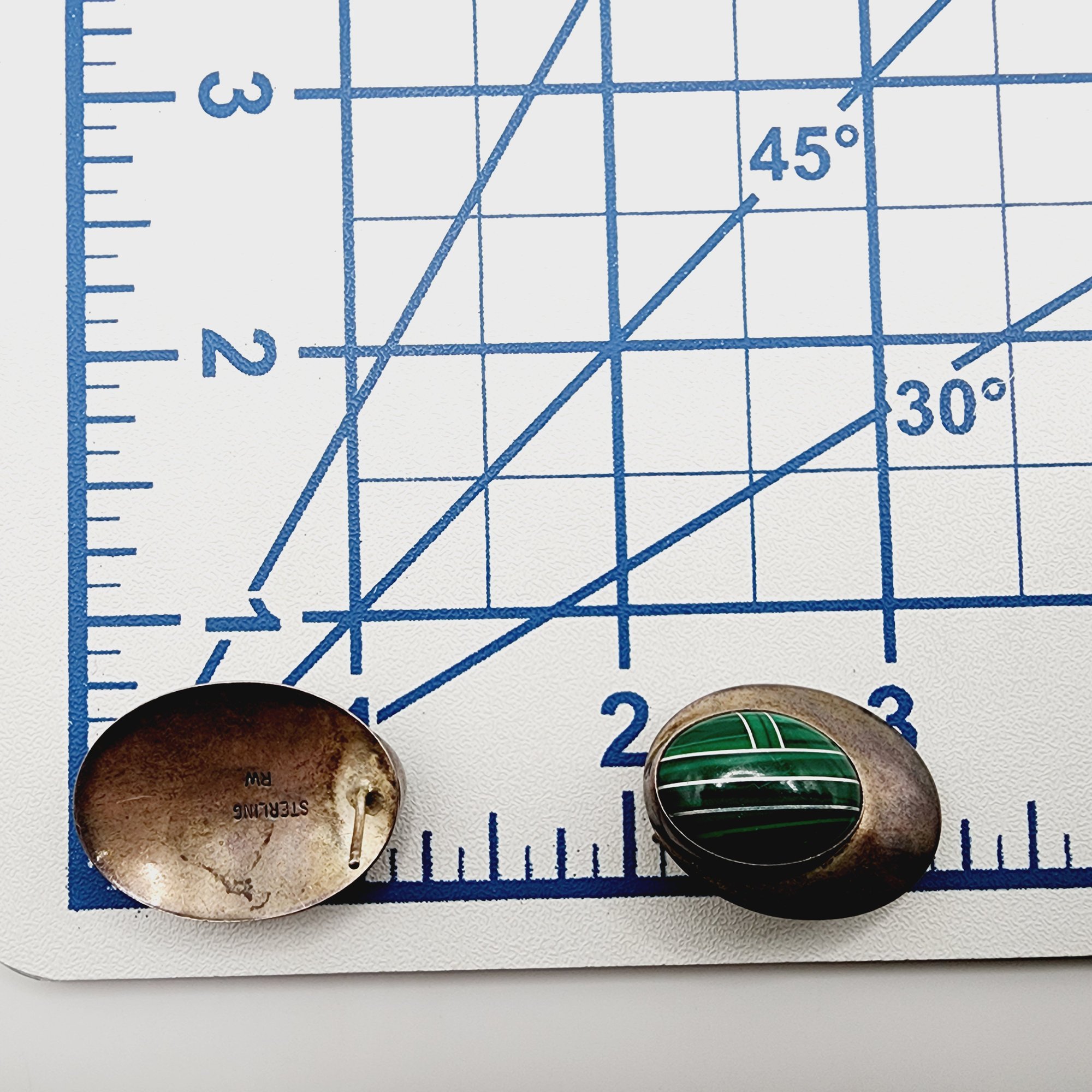 Ronnie Willie Navajo Sterling Malachite Inlay Earrings 8.4g