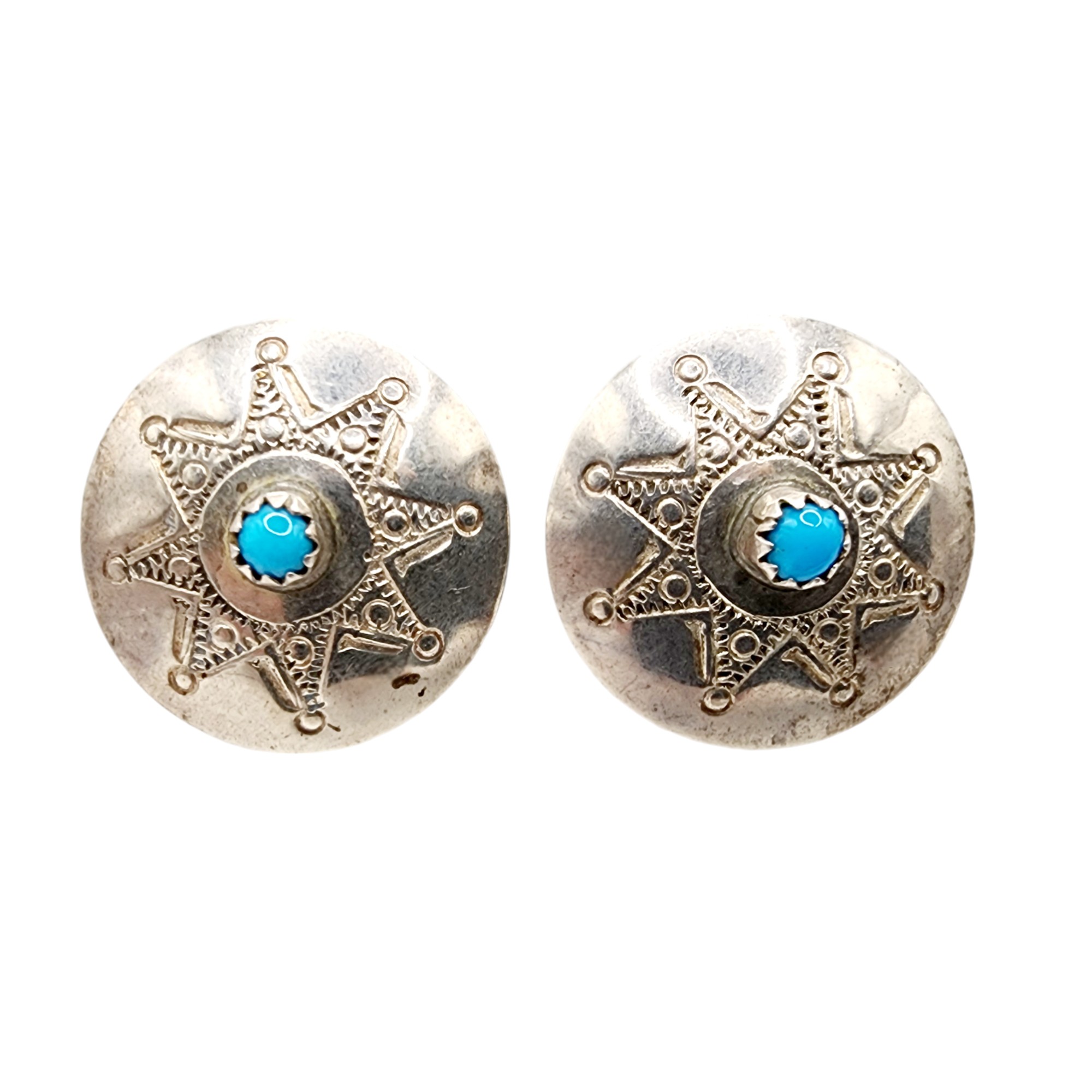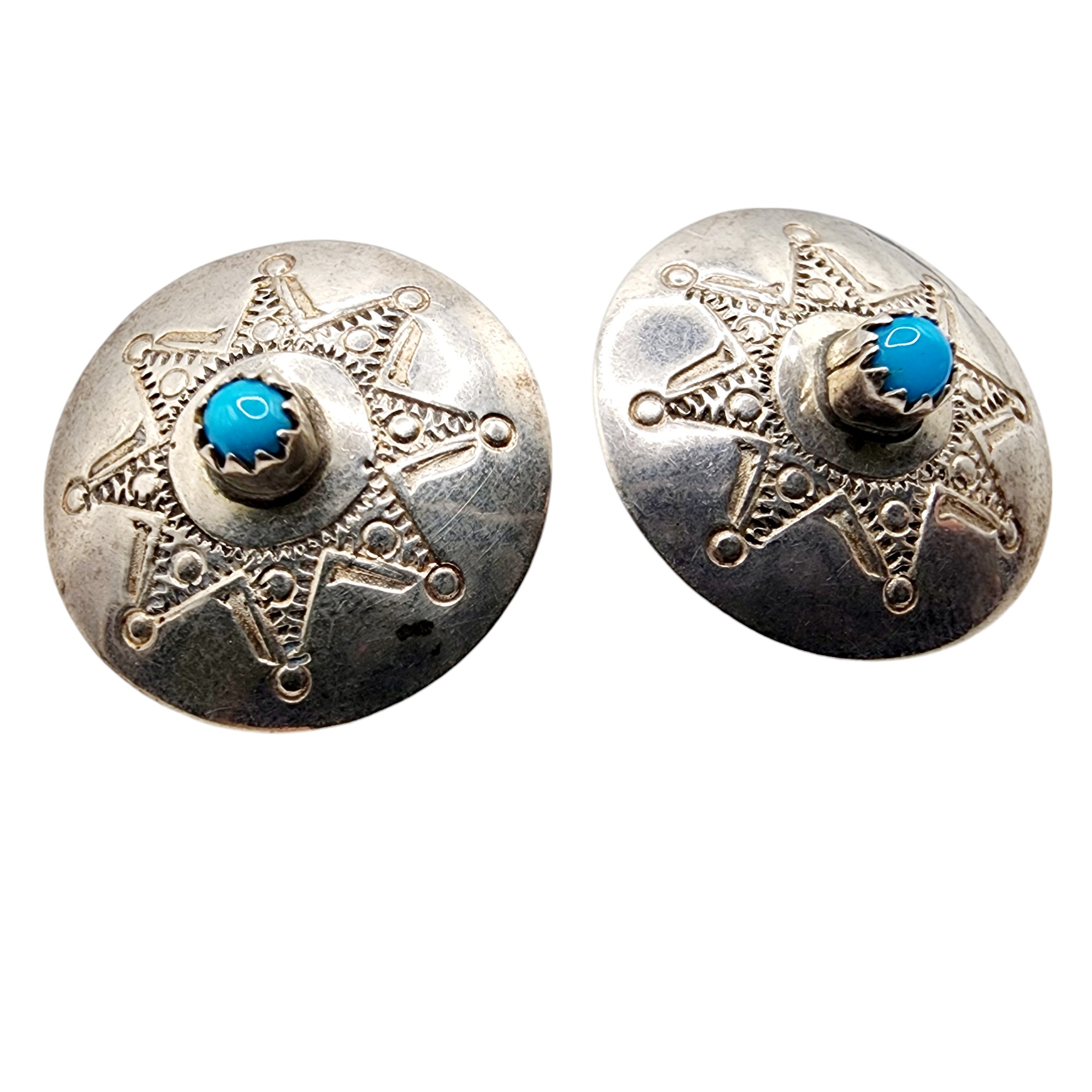 Vintage Nathaniel Johnson Navajo Sterling Stamped Turquoise Earrings 3.6g