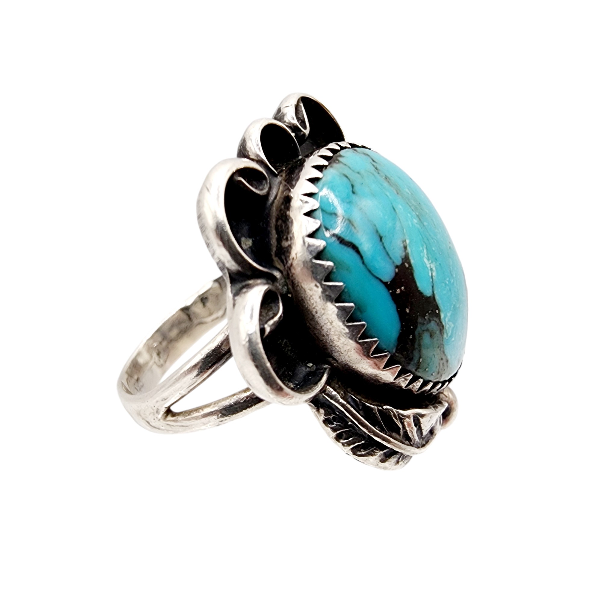 Gorgeous! Signed ‘K’ Navajo Sterling Turquoise Ring Sz 5.25 7.1g