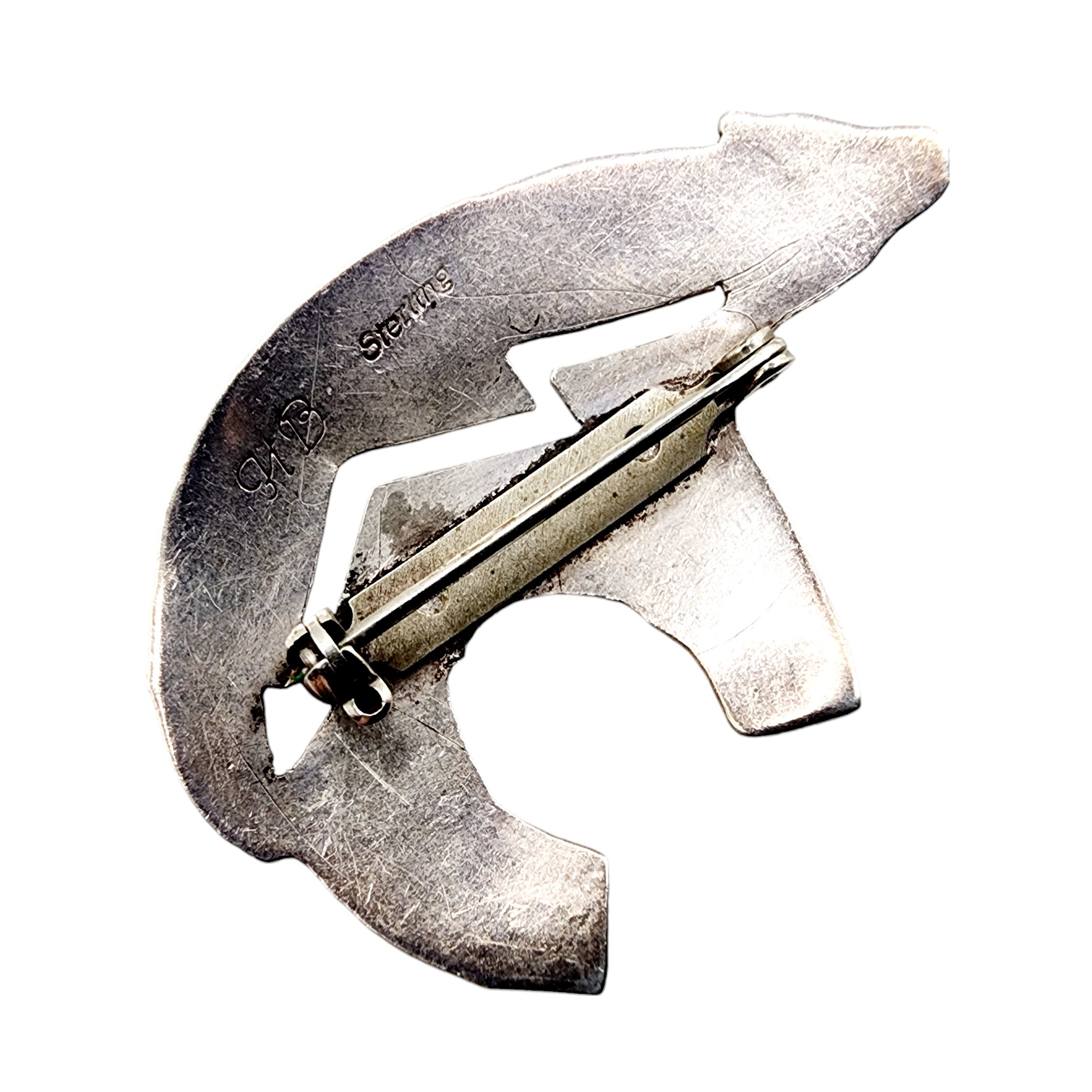 Vintage Signed ‘HB’ Navajo Heartline Bear Brooch 5.1g