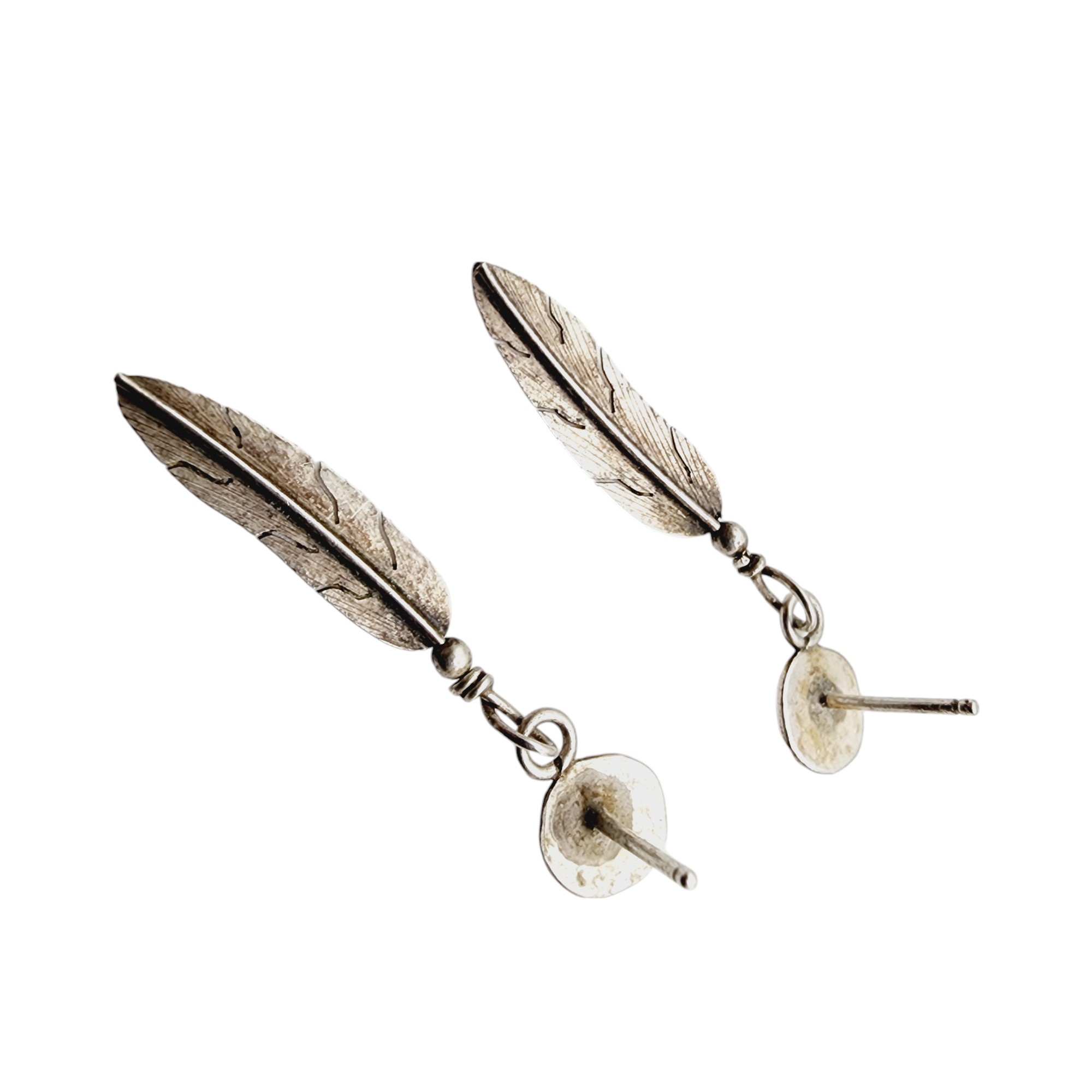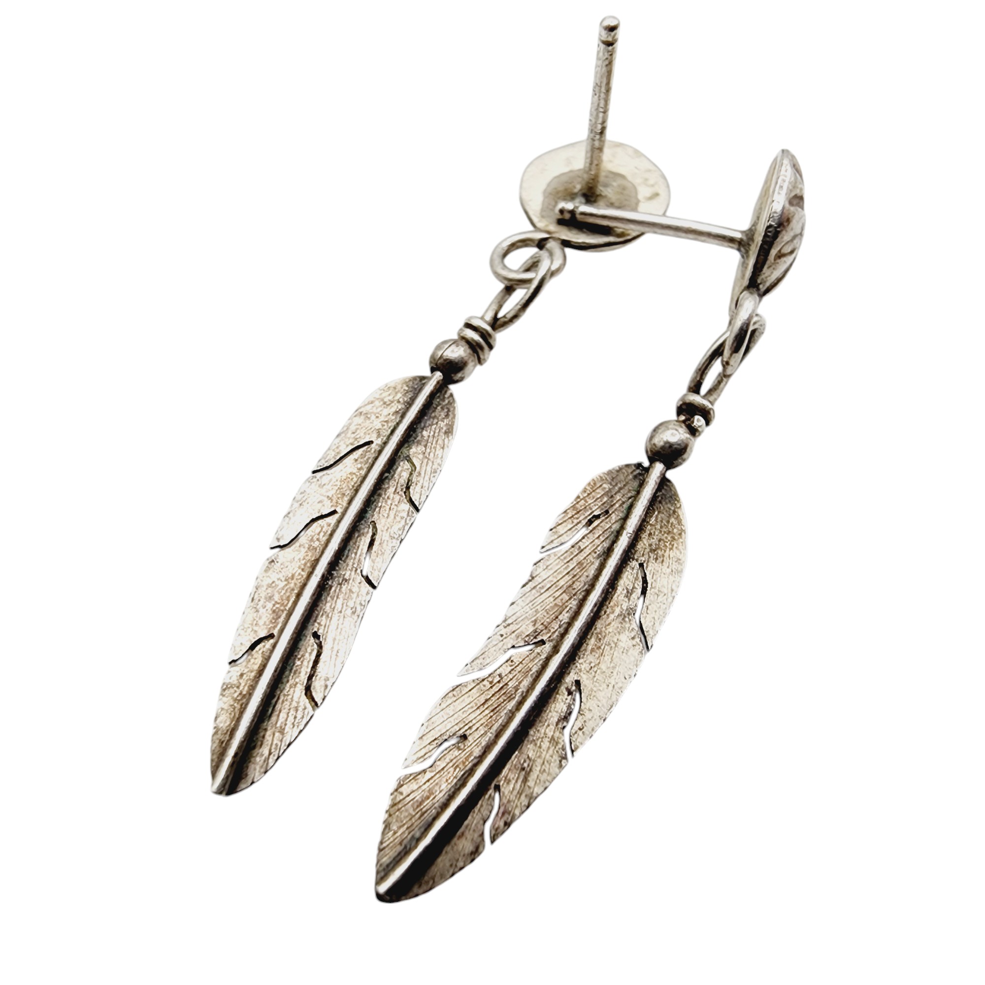 Navajo Sterling Feather Dangle Earrings 1.7g