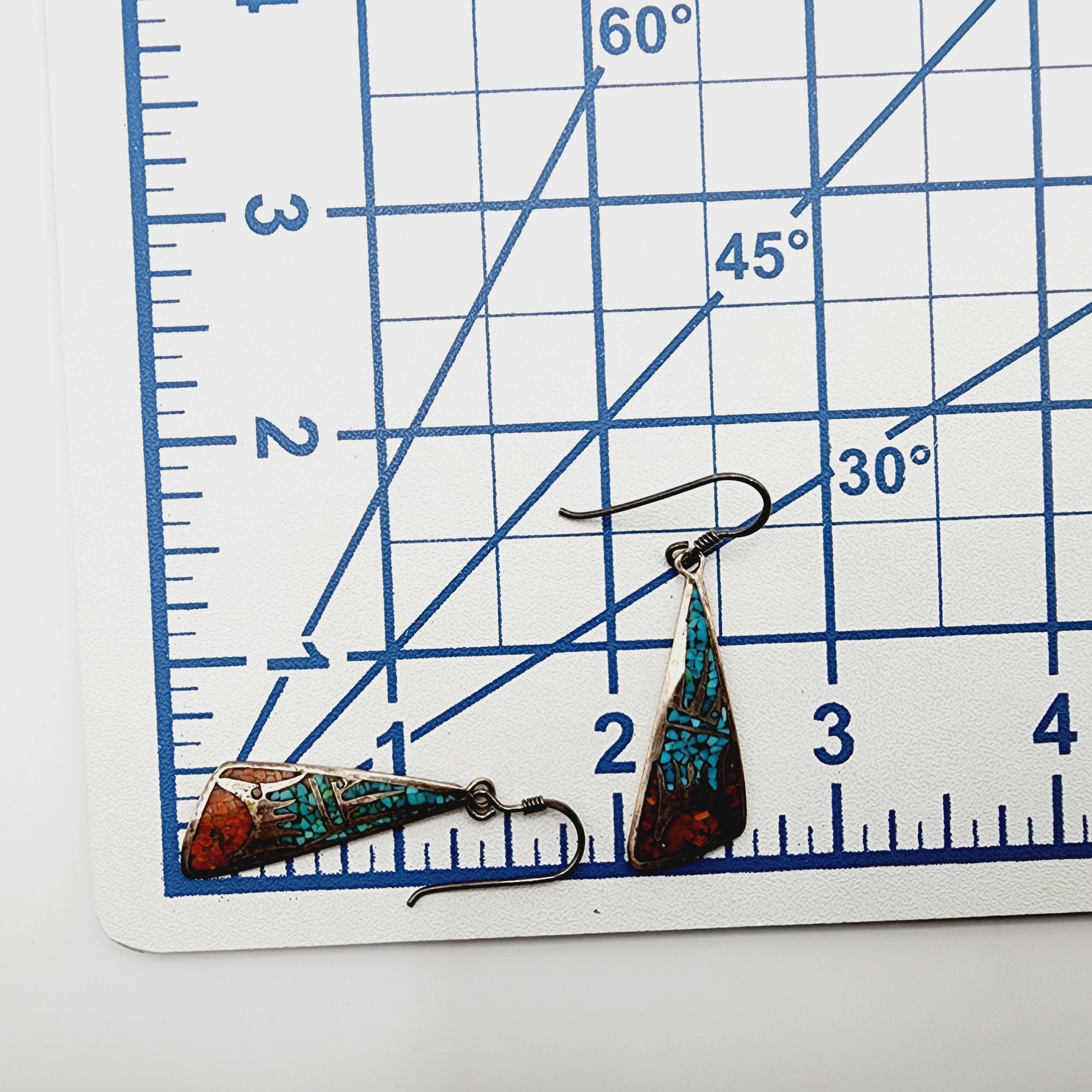 Vintage Navajo Sterling Turquoise Coral Chip Inlay Earrings 4.4g