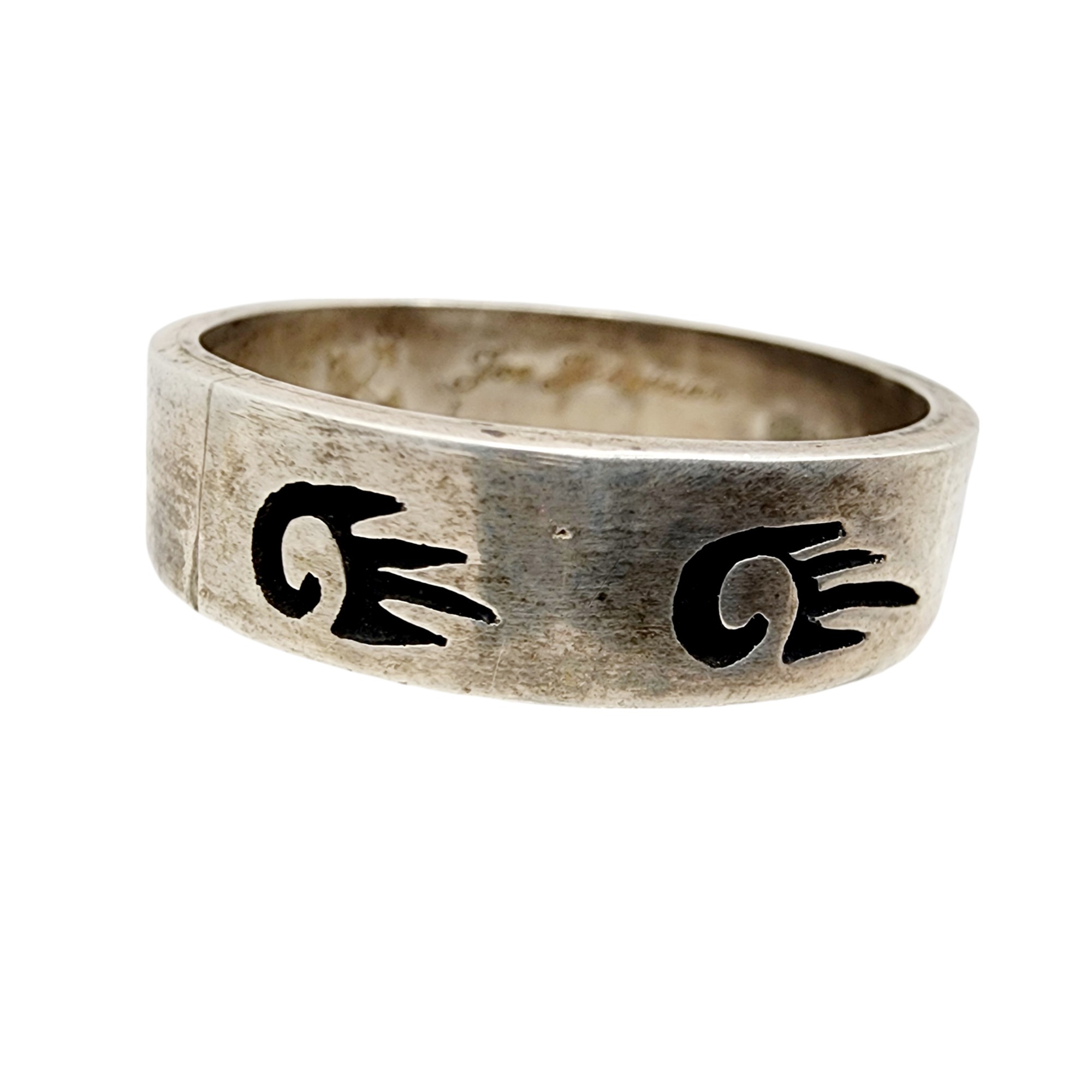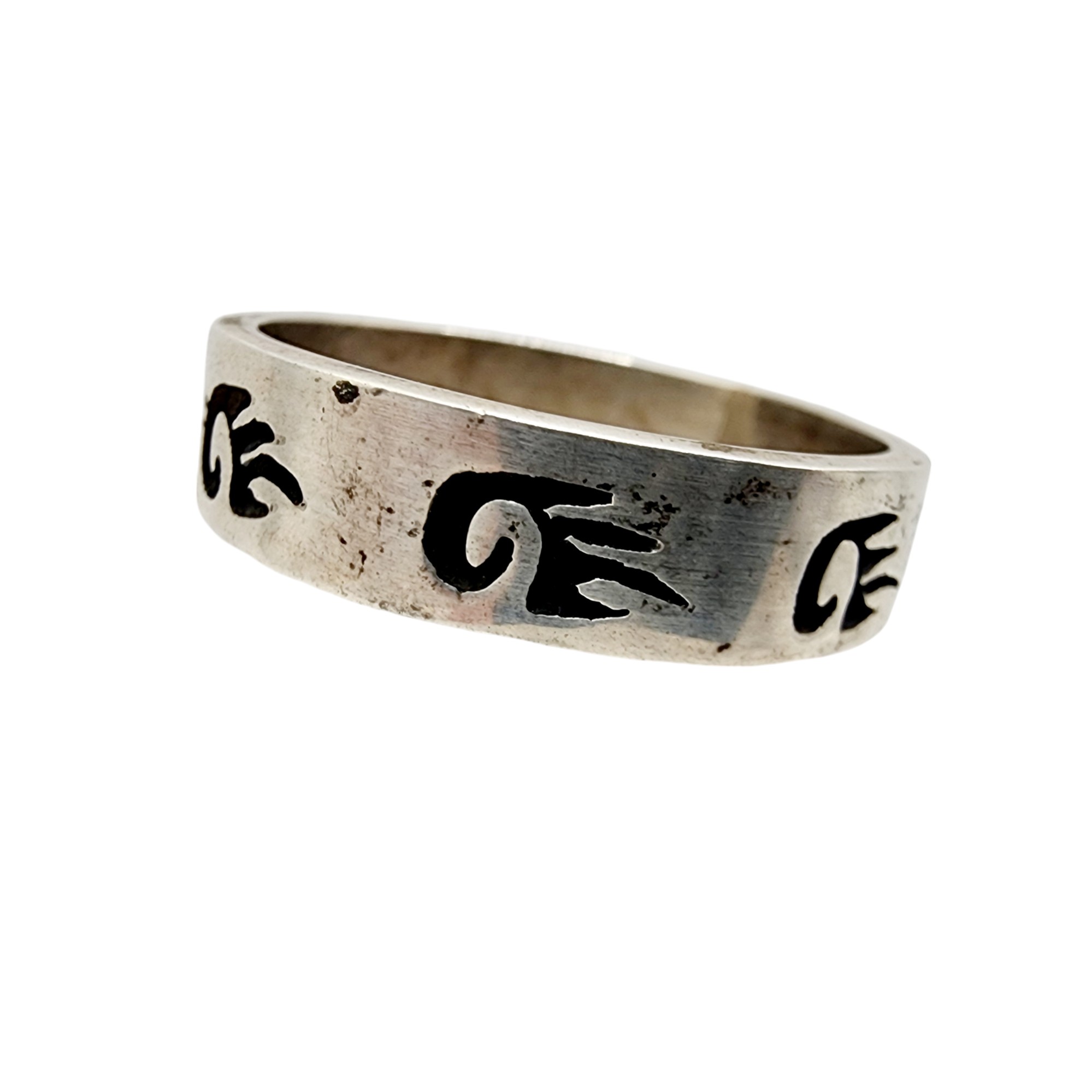 Vintage Joe Josytewa Hopi Sterling Overlay Bear Paw Mens Ring Sz 12.5 6.1g