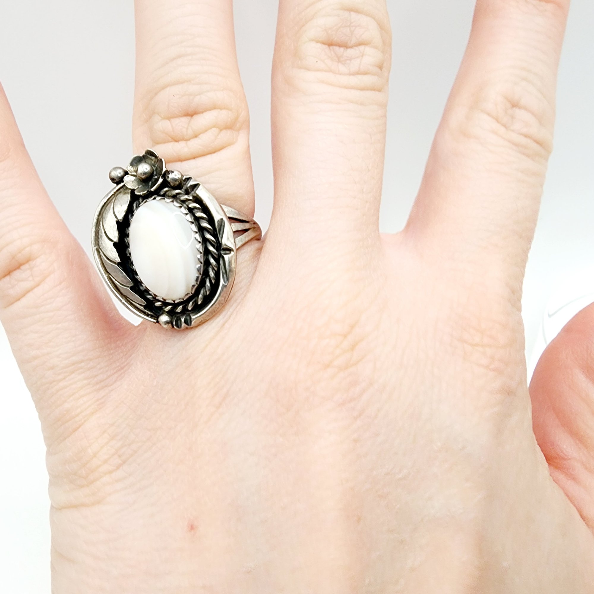Nakai Navajo Sterling Mother of Pearl Ring Sz 7 6.9g