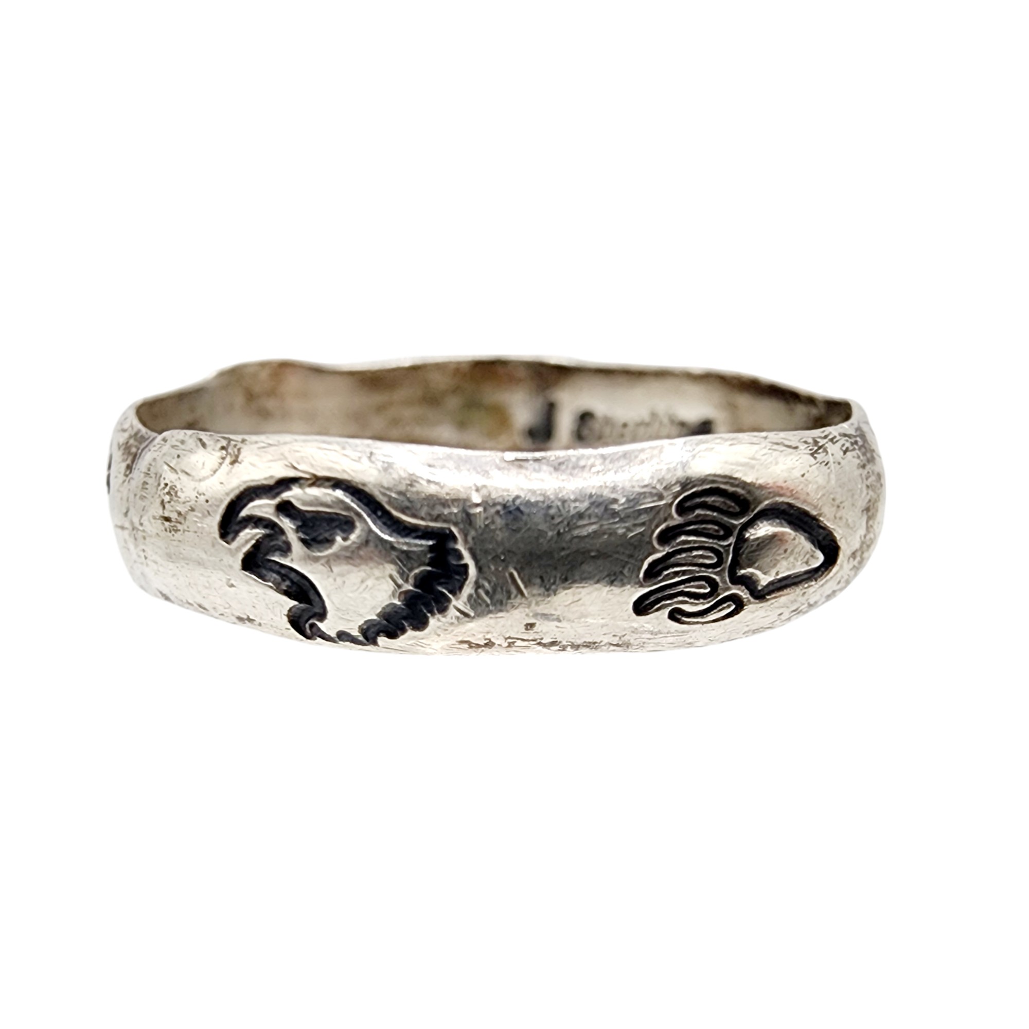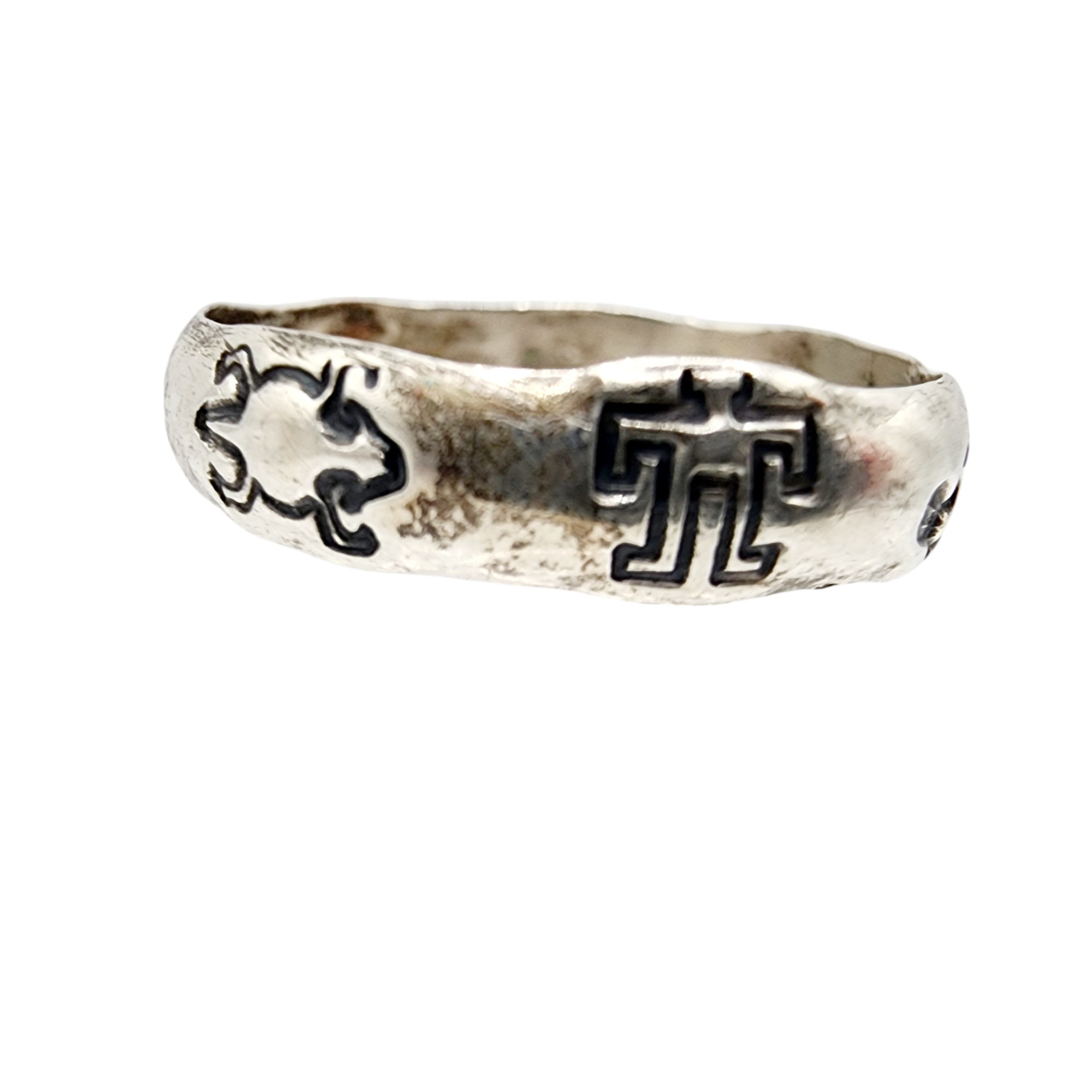 Vintage Signed Navajo Sterling Handmade Stamped Ring Sz 9 2.1g
