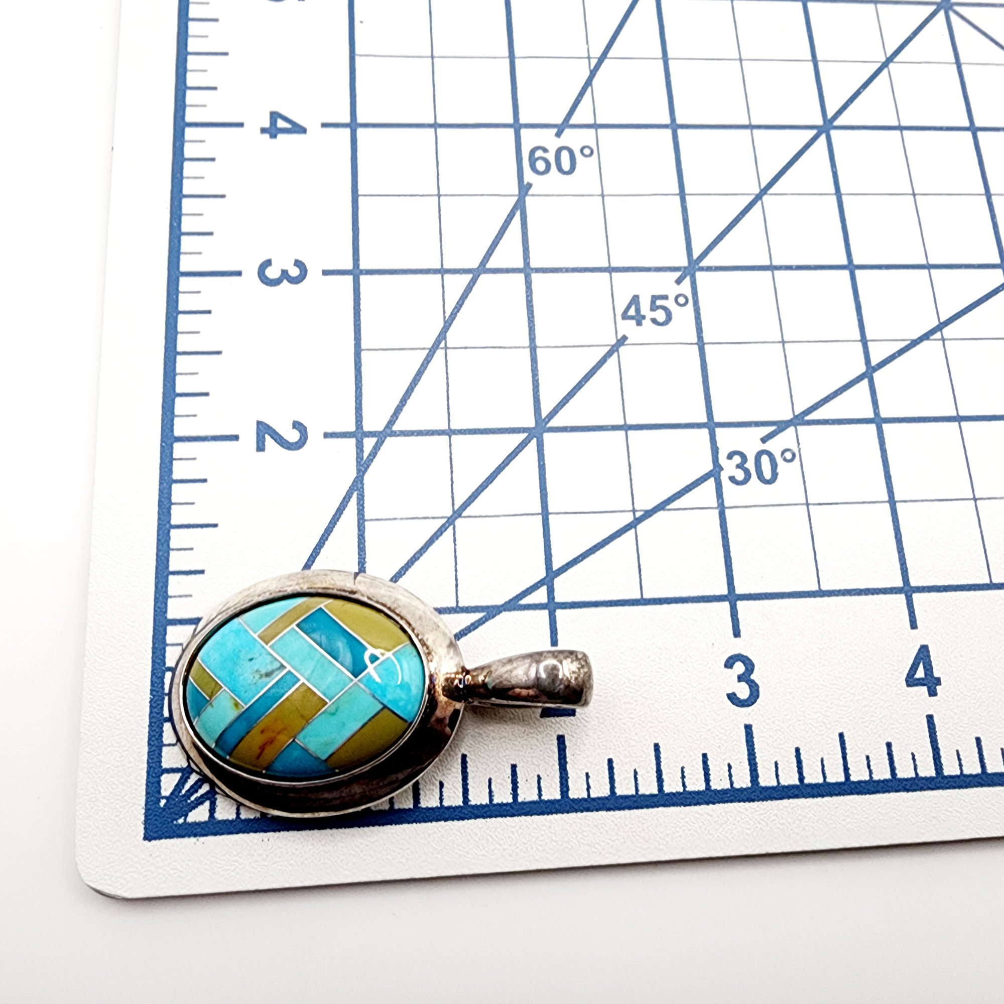 Carolyn Pollack Relios Vintage Sterling Turquoise Inlay Pendant 17.6g