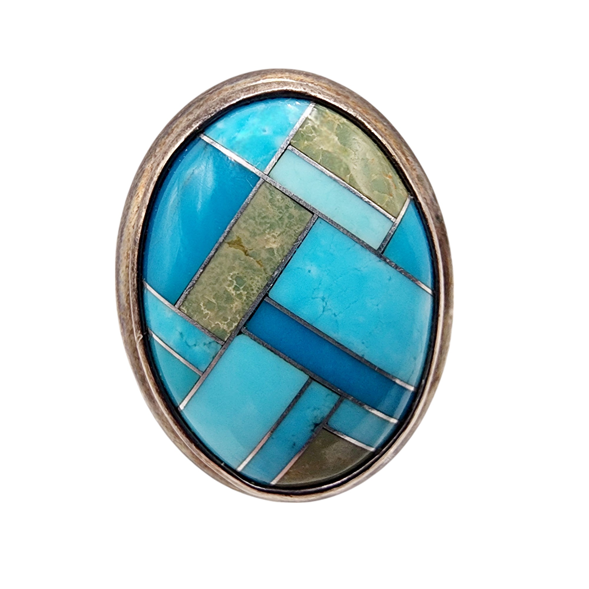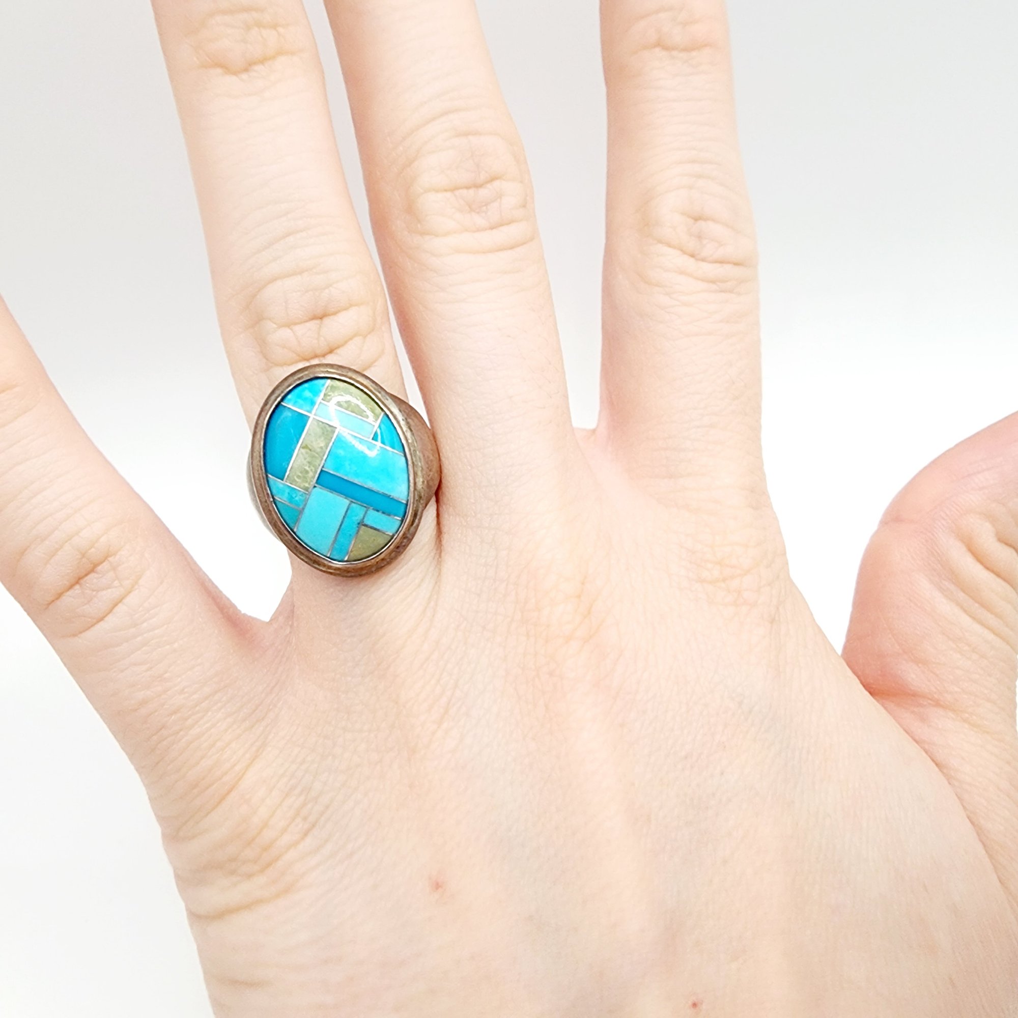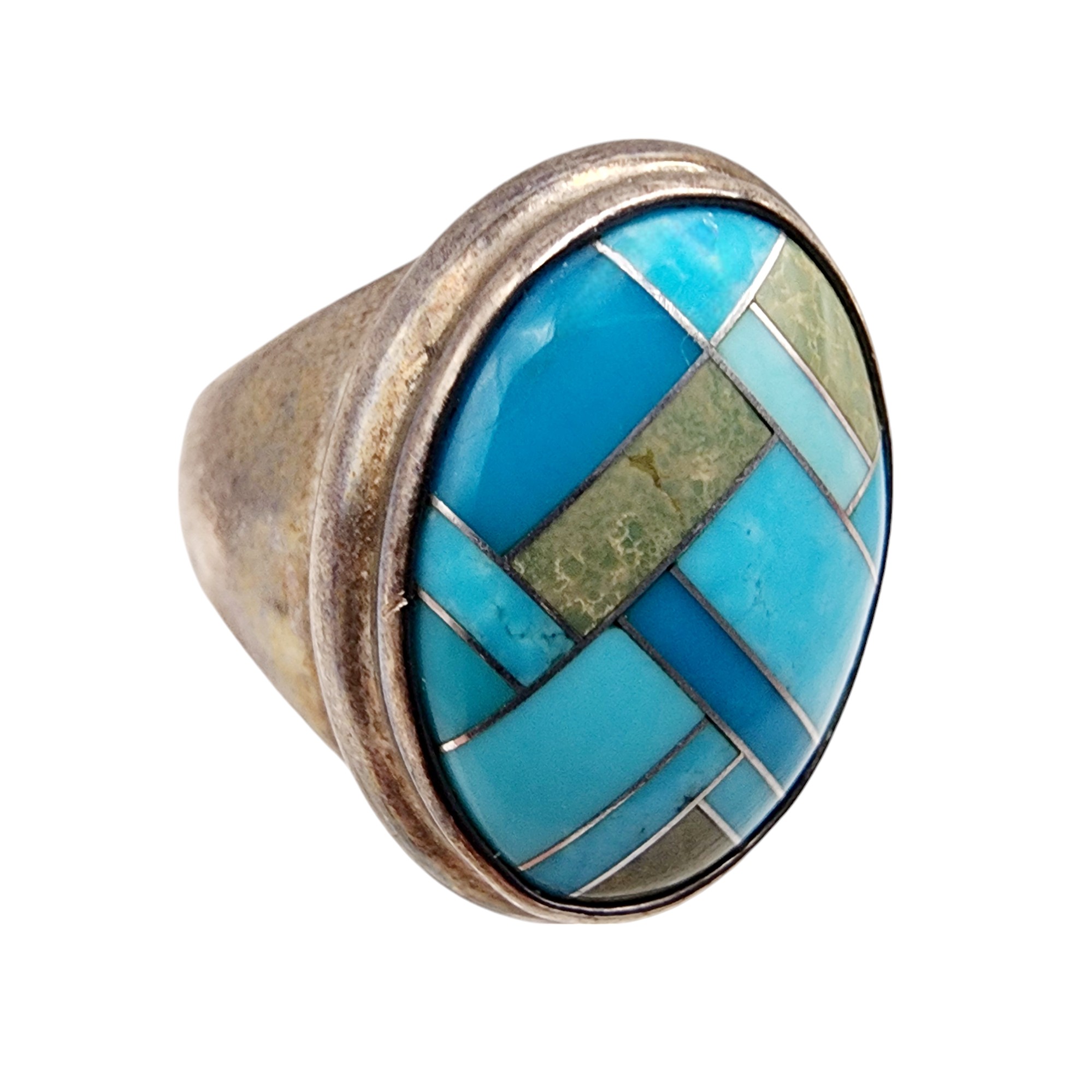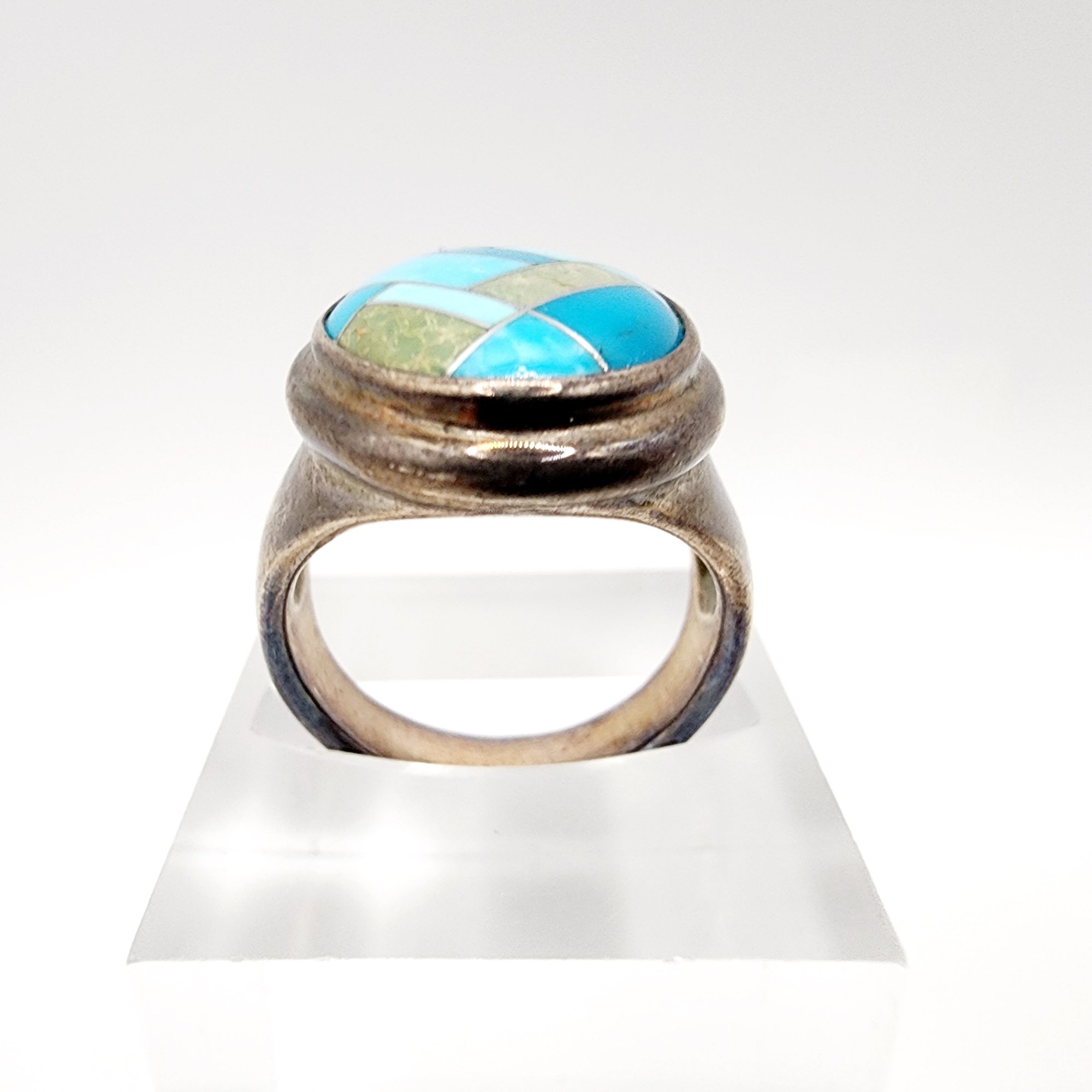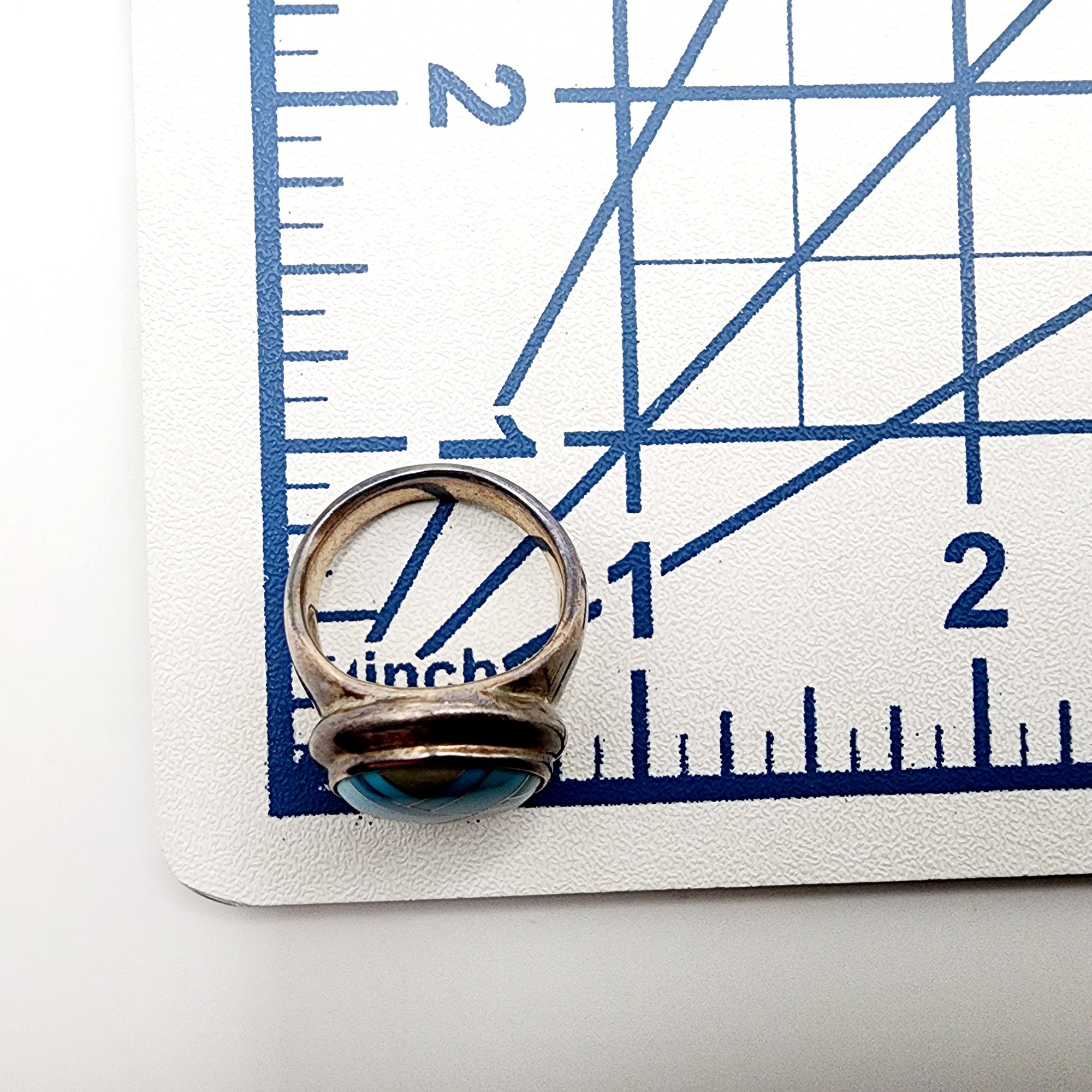 Carolyn Pollack Relios Vintage Sterling Turquoise Inlay Ring Sz 6.5 8.6g