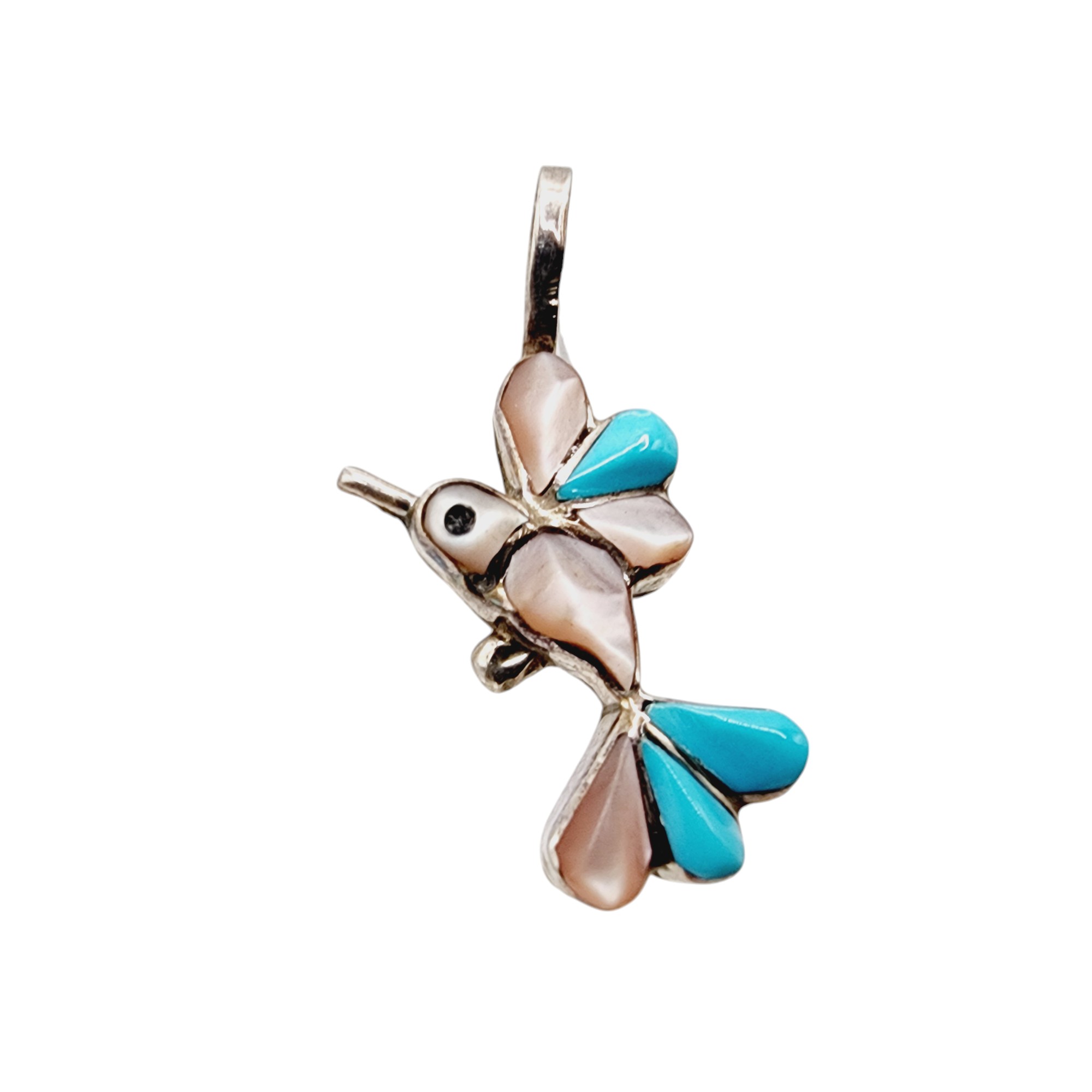 Zuni Sterling Hummingbird Inlay Pendant 1.5g