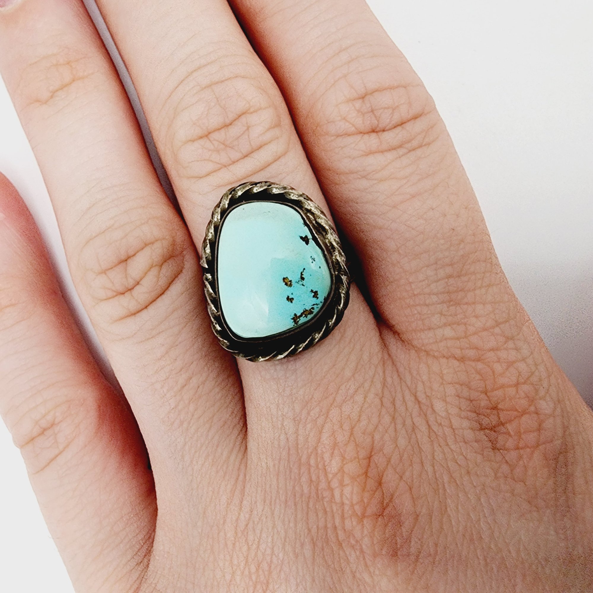 Vintage Navajo Sterling Turquoise Ring Sz 7.5 7.1g – color is beautiful!