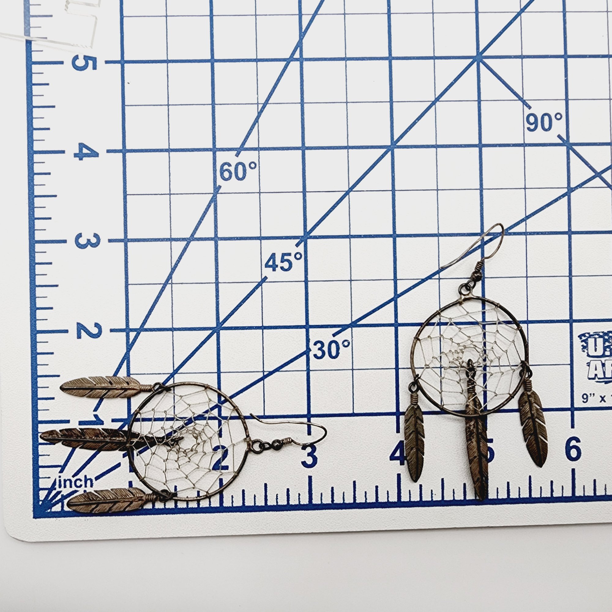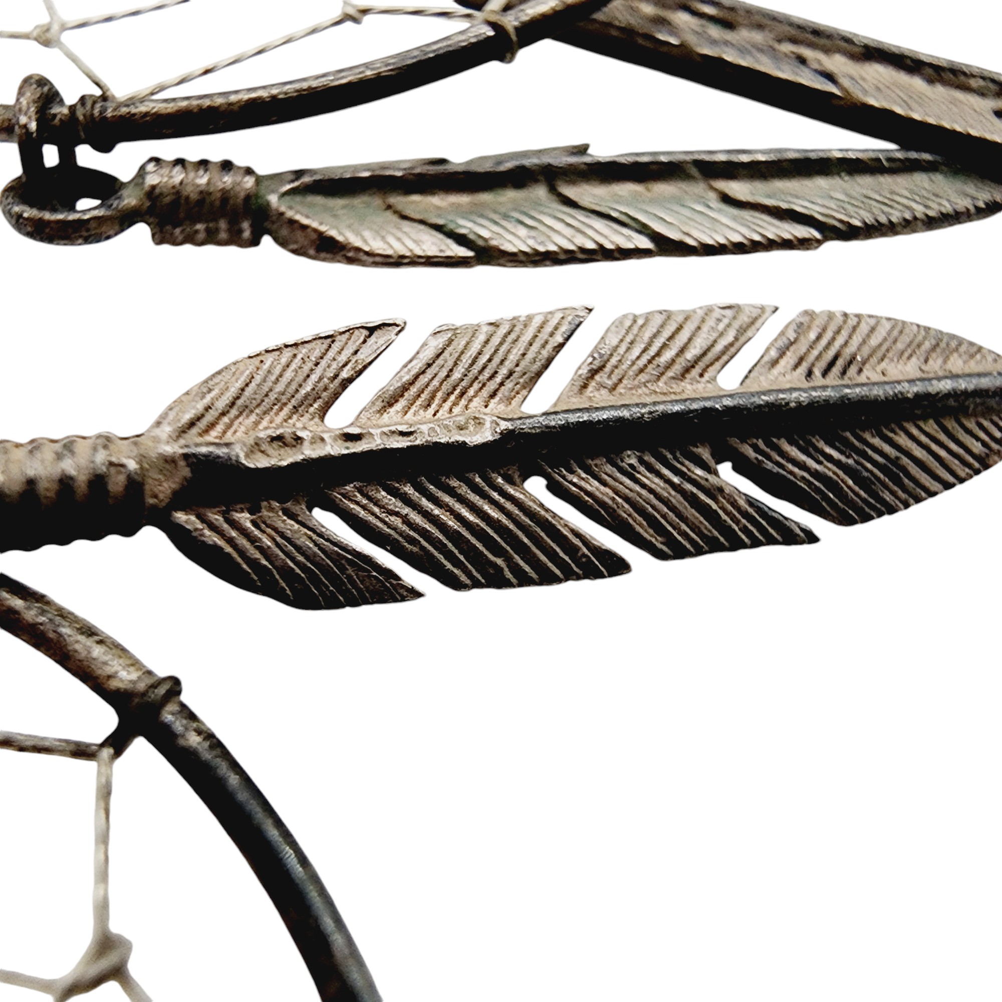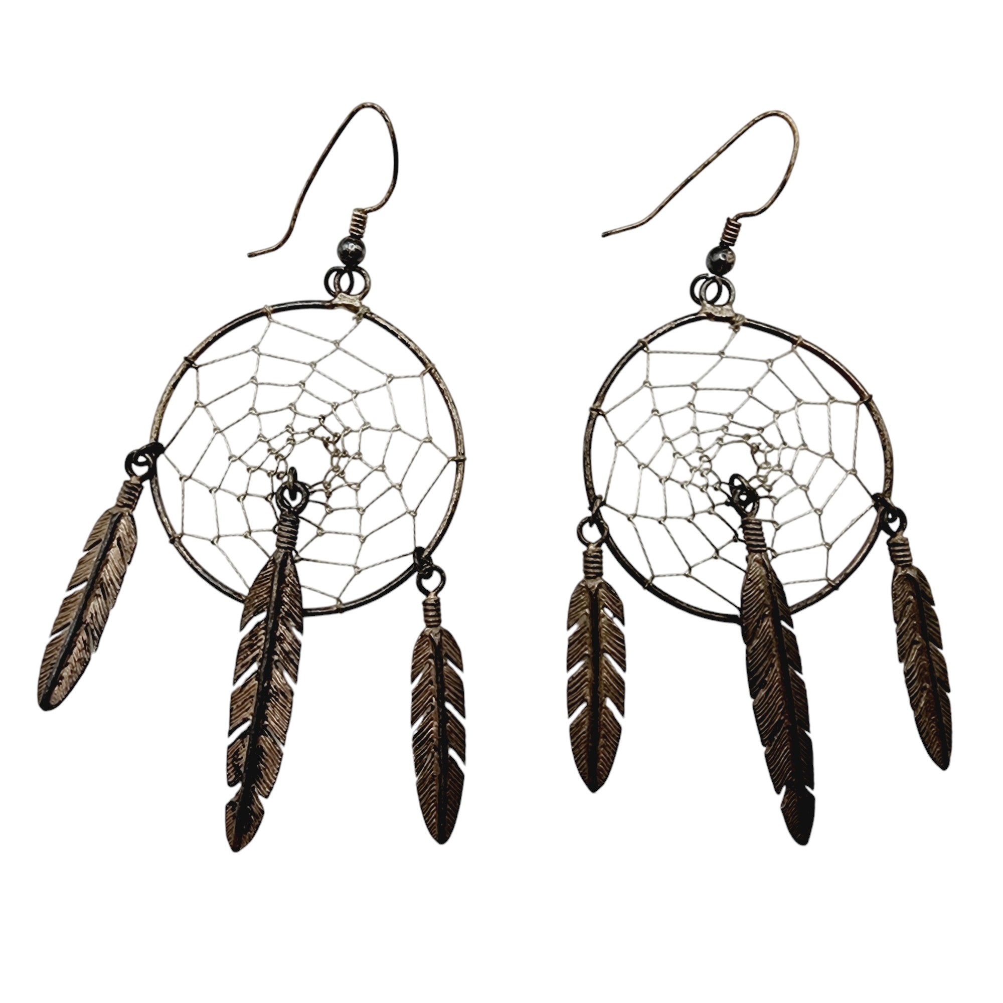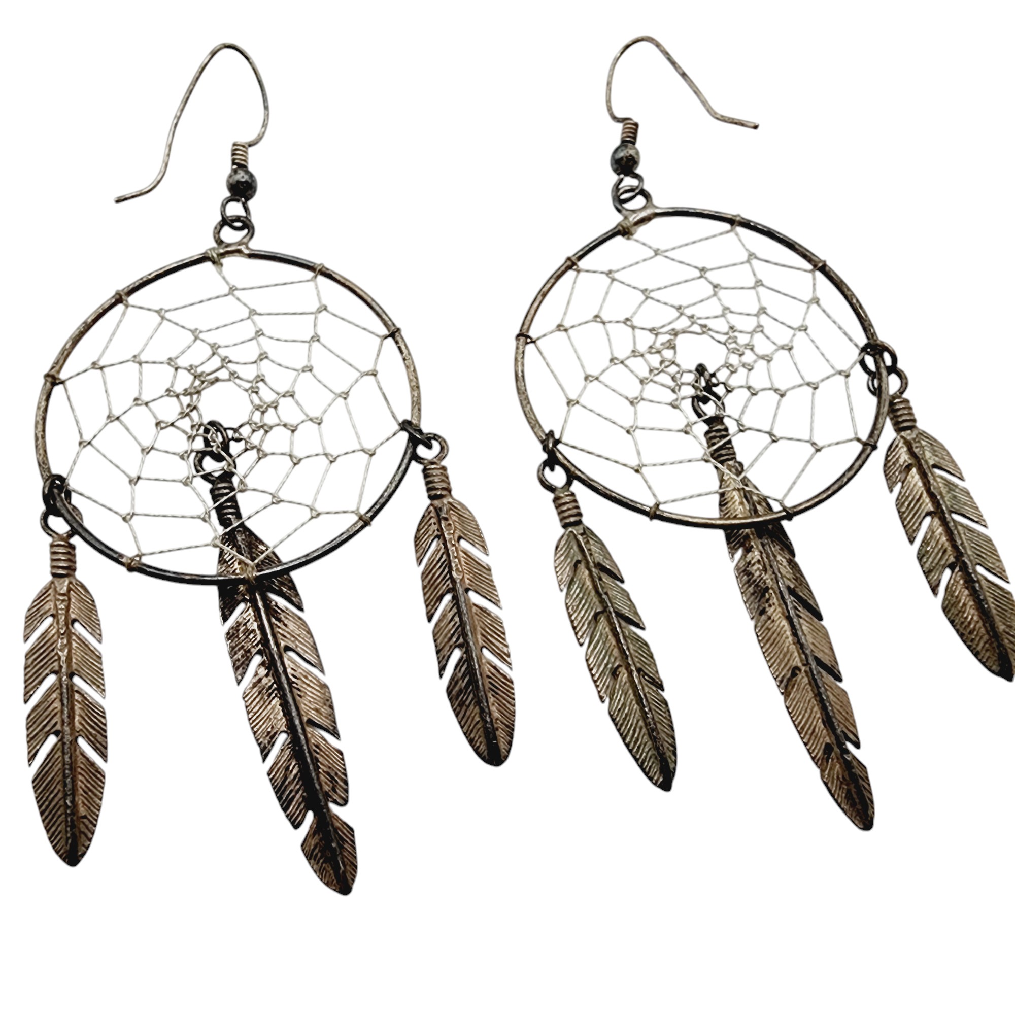 Vintage Sterling Southwestern Dreamcatcher Feather Dangle Earrings 10.8g