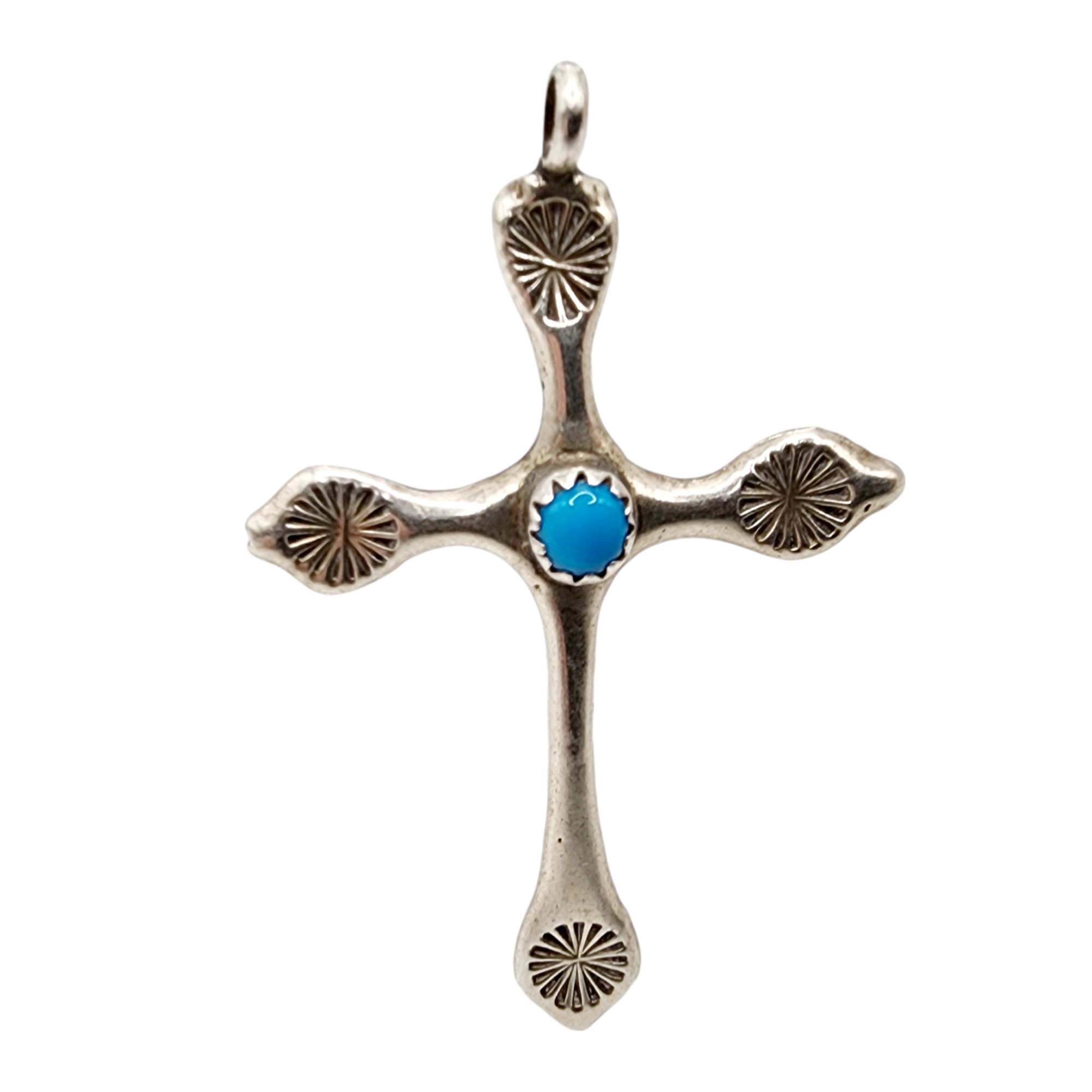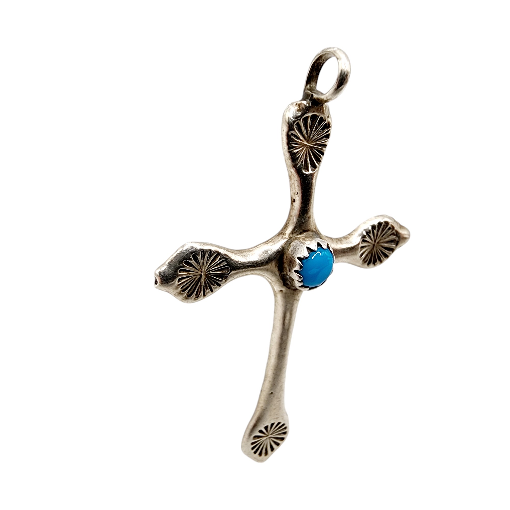 Vintage Navajo Sterling Turquoise Cross Pendant 3g