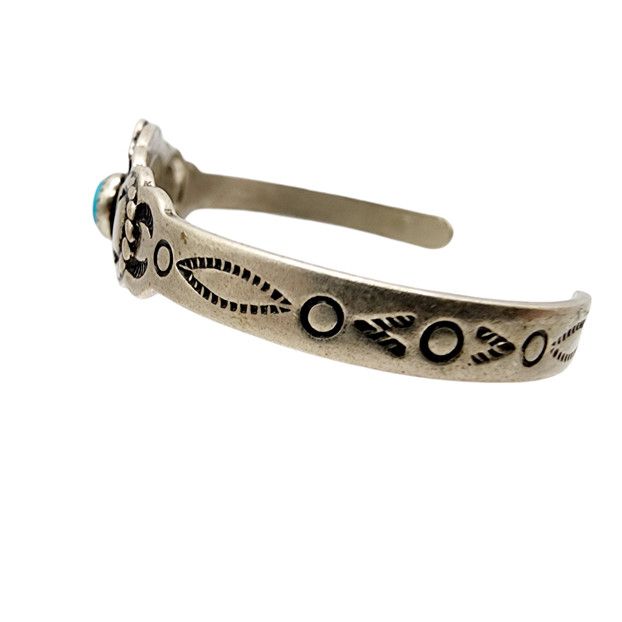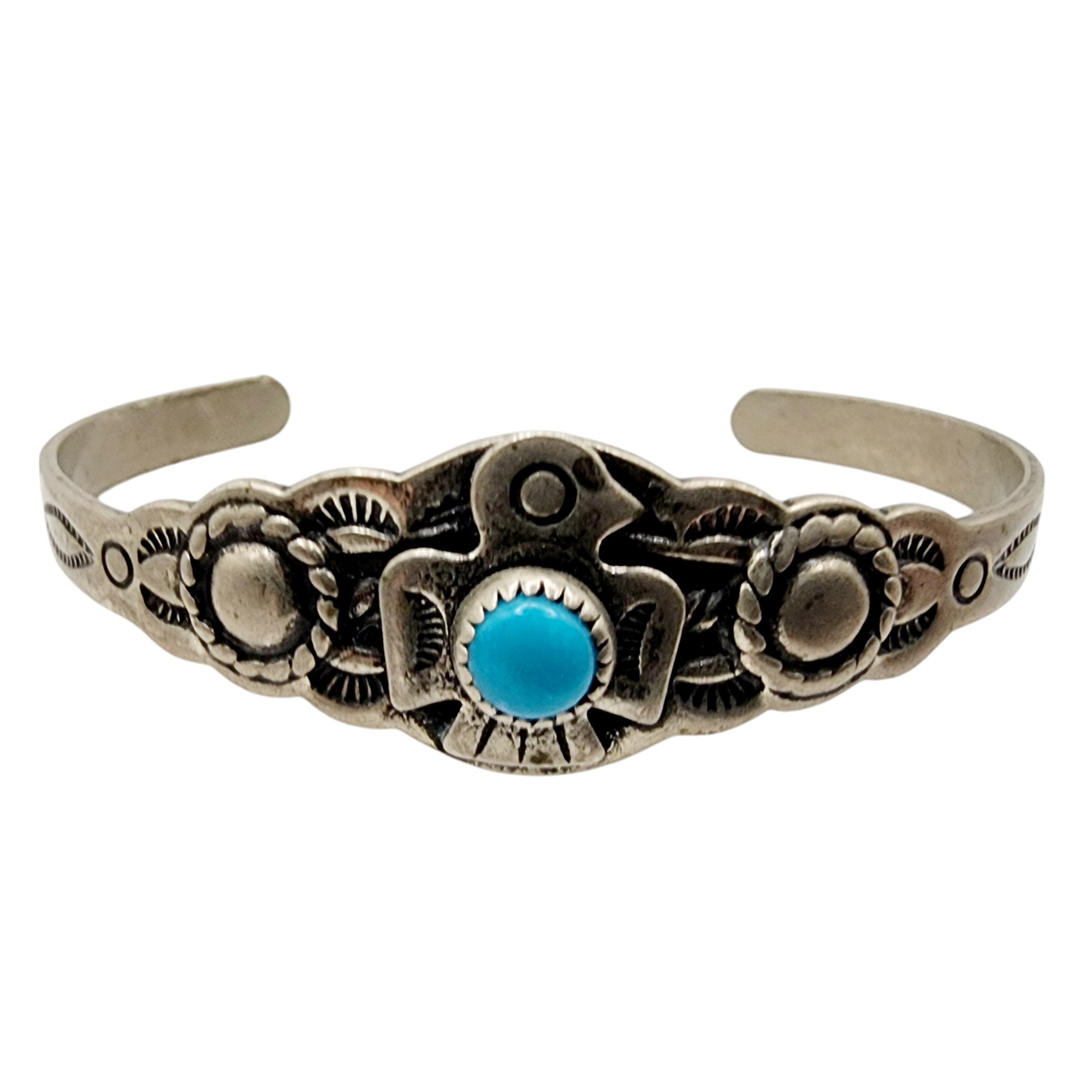 Vintage Bell Trading Post Nickel Turquoise Thunderbird Child Cuff Bracelet 5.7g