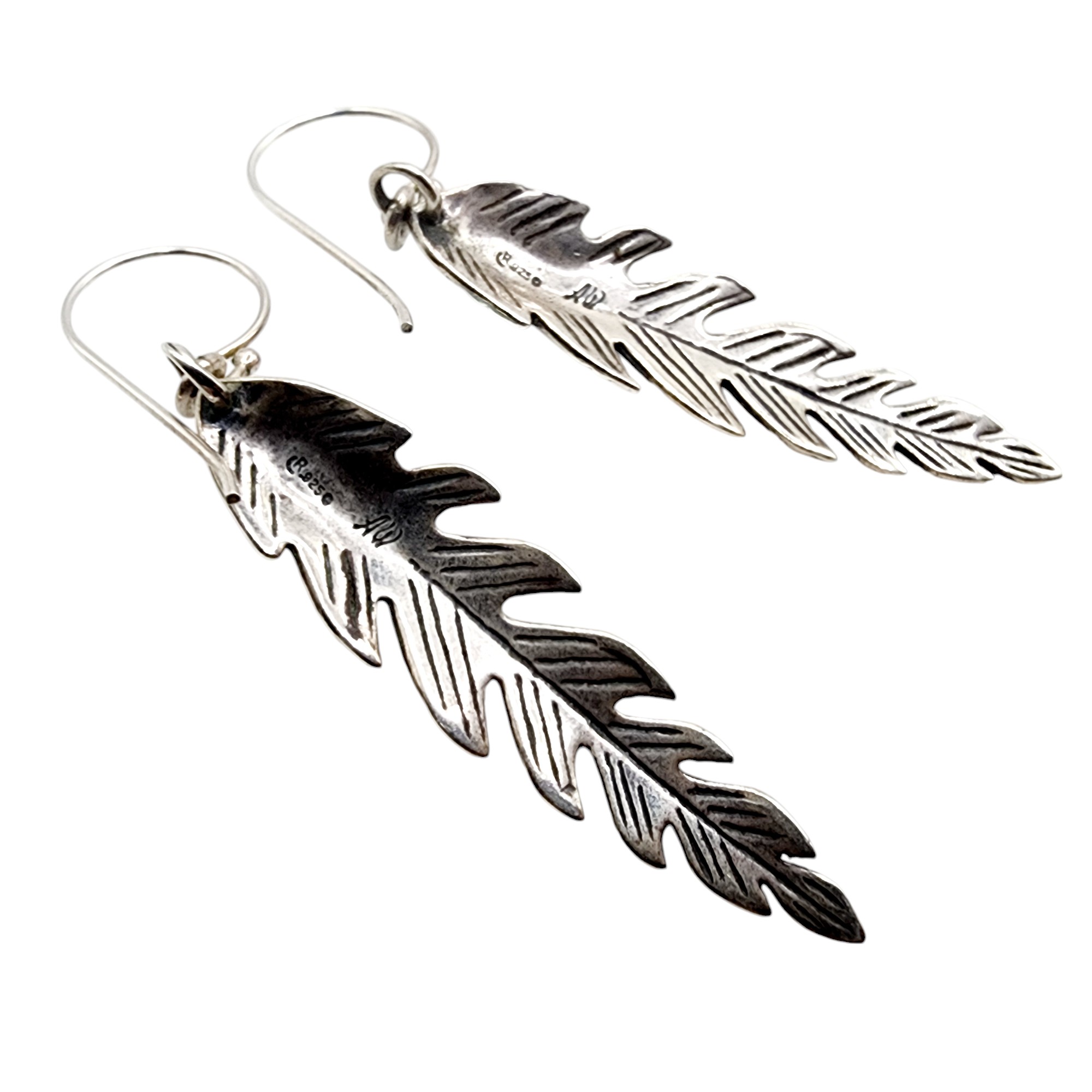Carolyn Pollack Relios and ‘AW’ Signed Vintage Sterling Turquoise Feather Earrings 7g