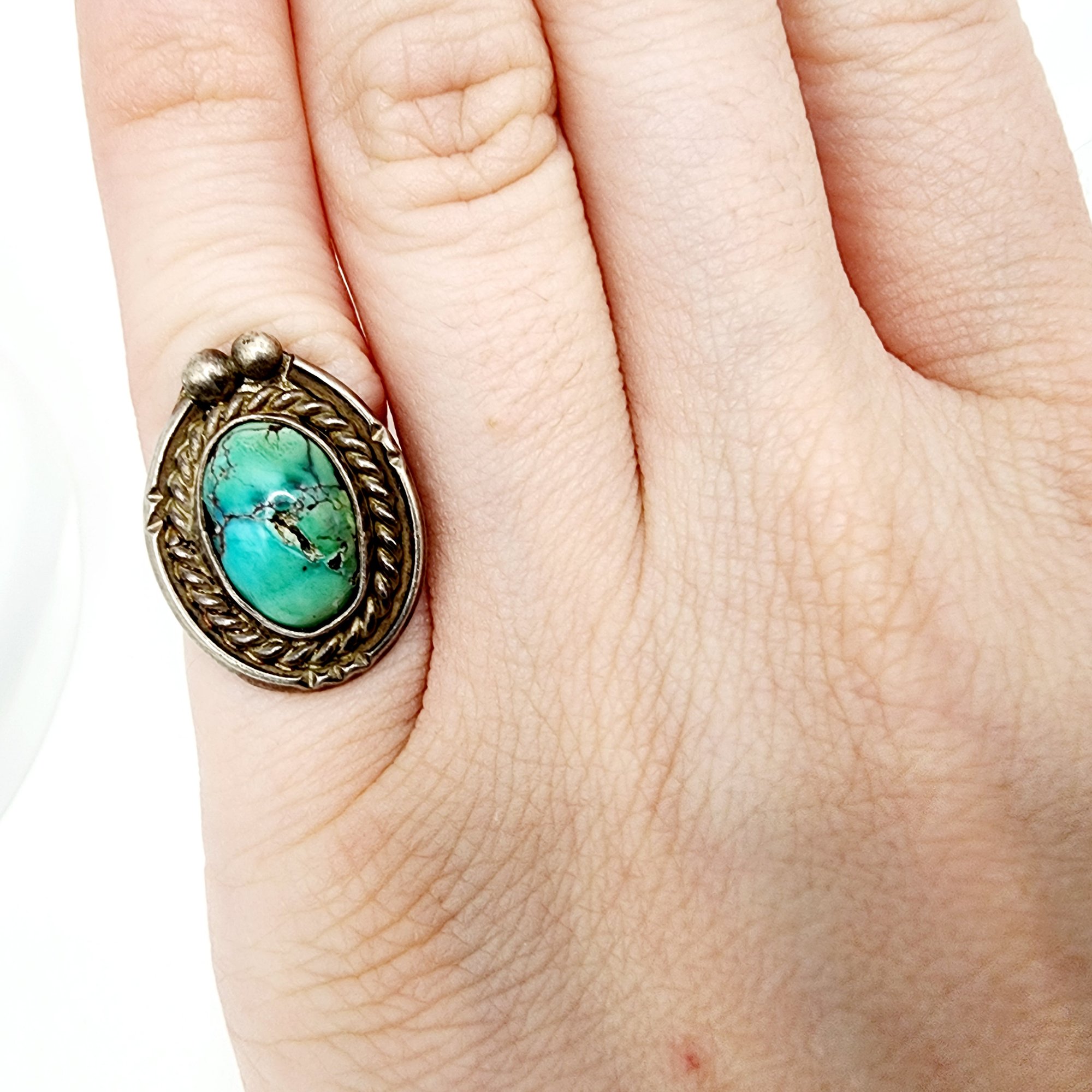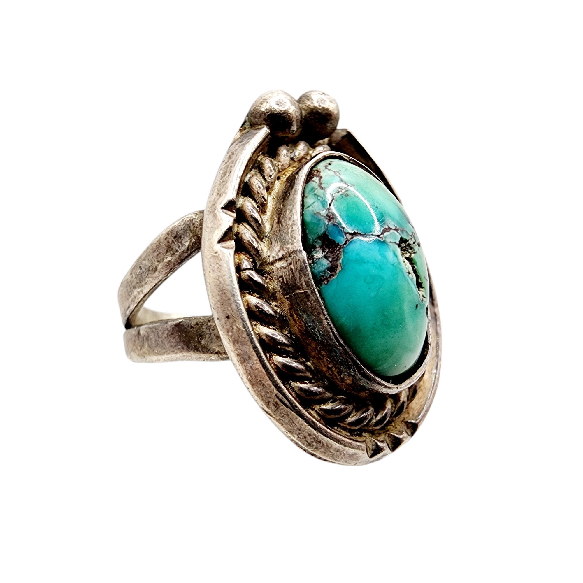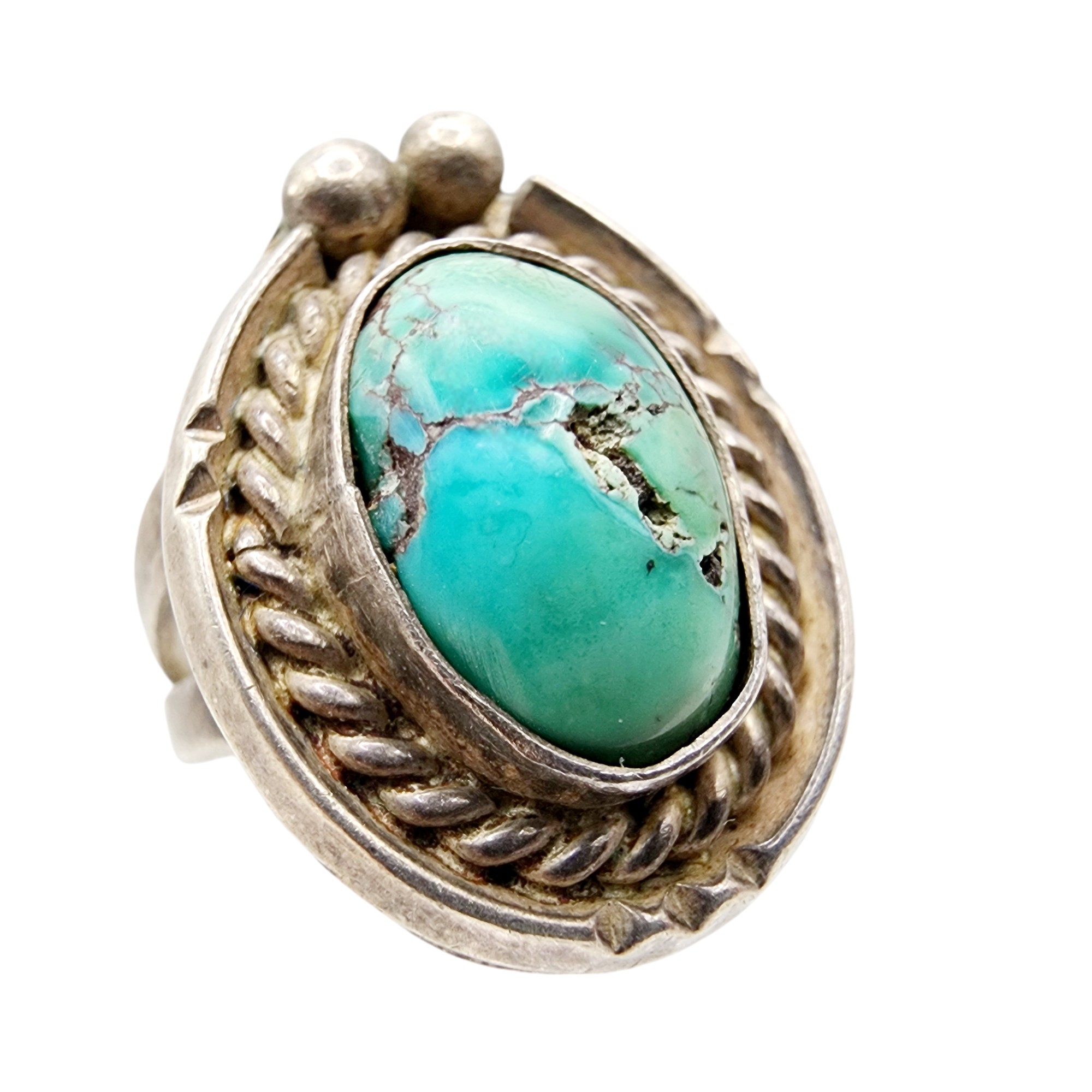 Navajo Sterling Turquoise Horseshoe Ring Sz 4 5.4g
