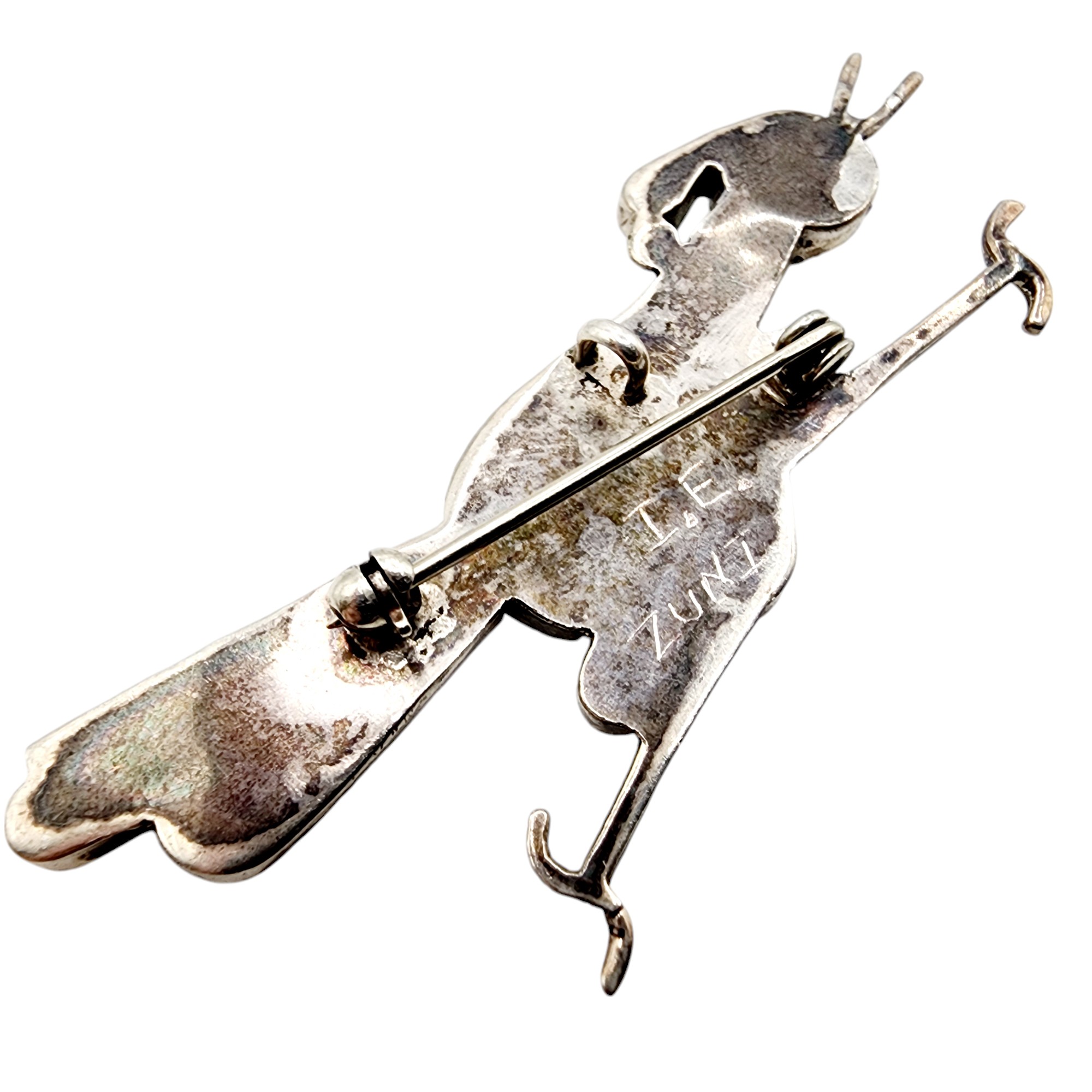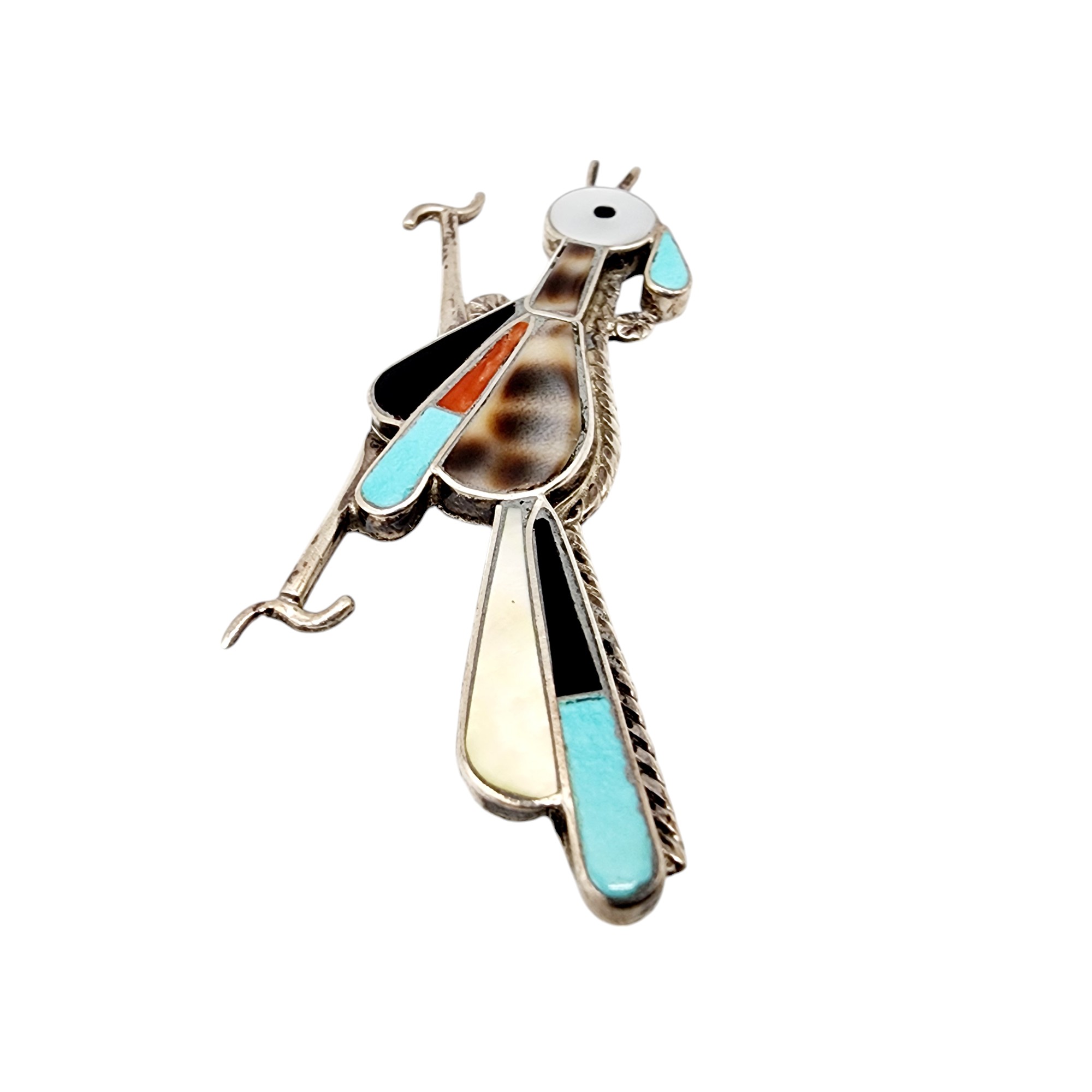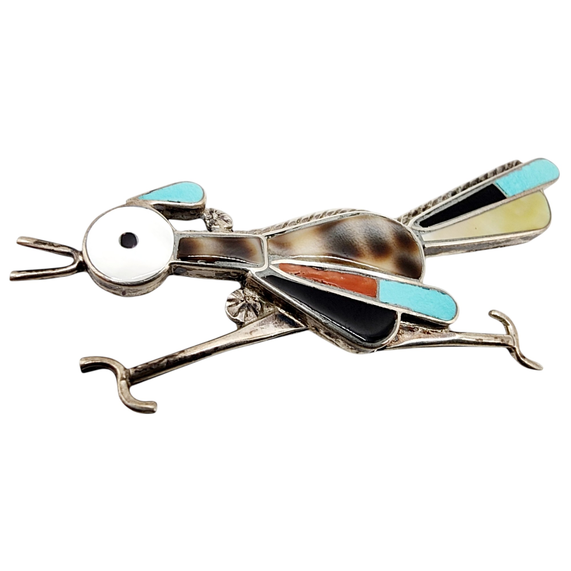 Signed ‘IE’ Zuni Vintage Sterling Inlay Roadrunner Pendant/Brooch 5.9g