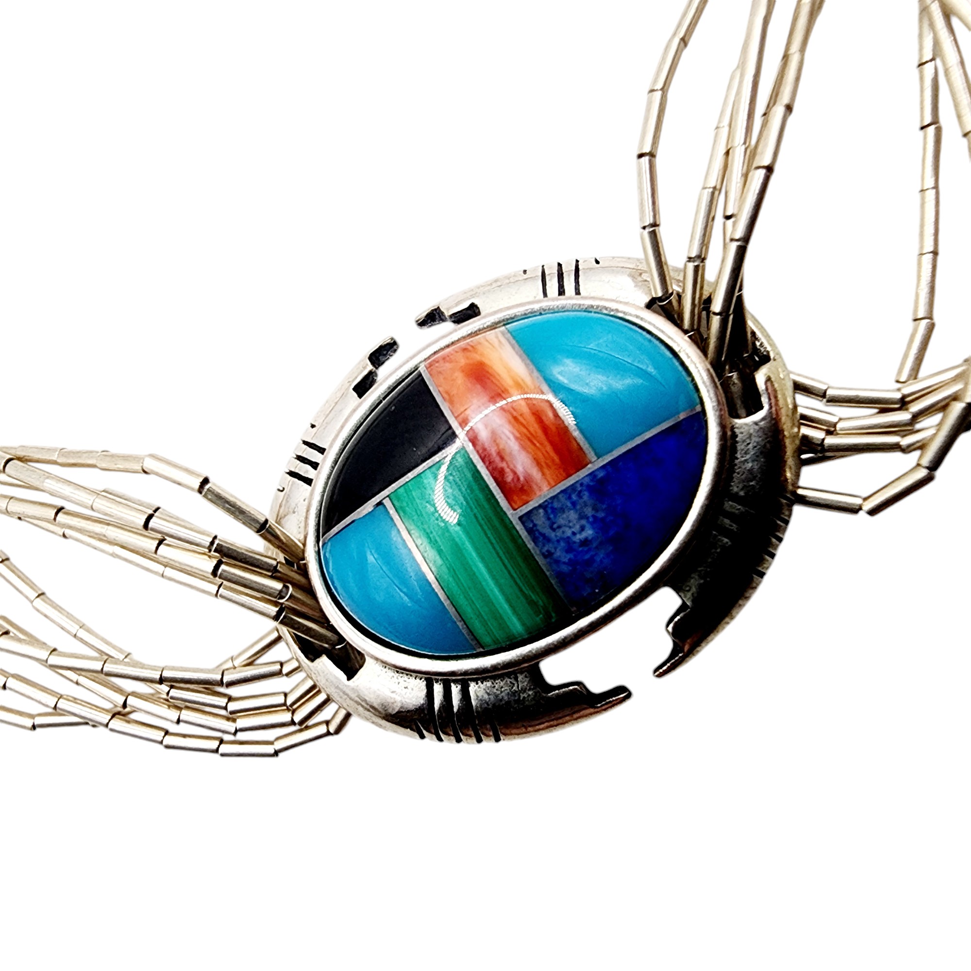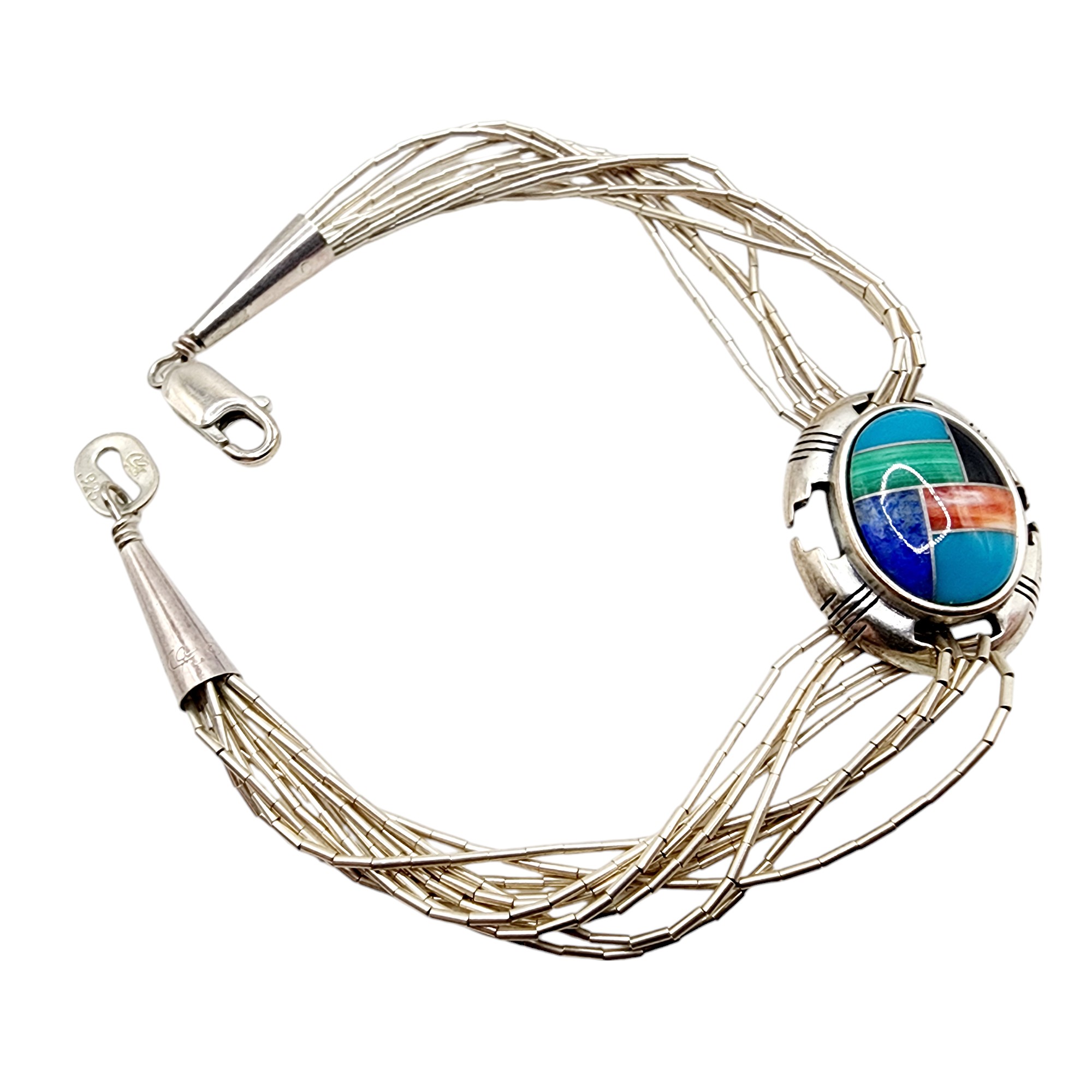 Relios and Carlisle Jewelry Co. Vintage Sterling Inlay Multistone Liquid Silver Bracelet 7.2g