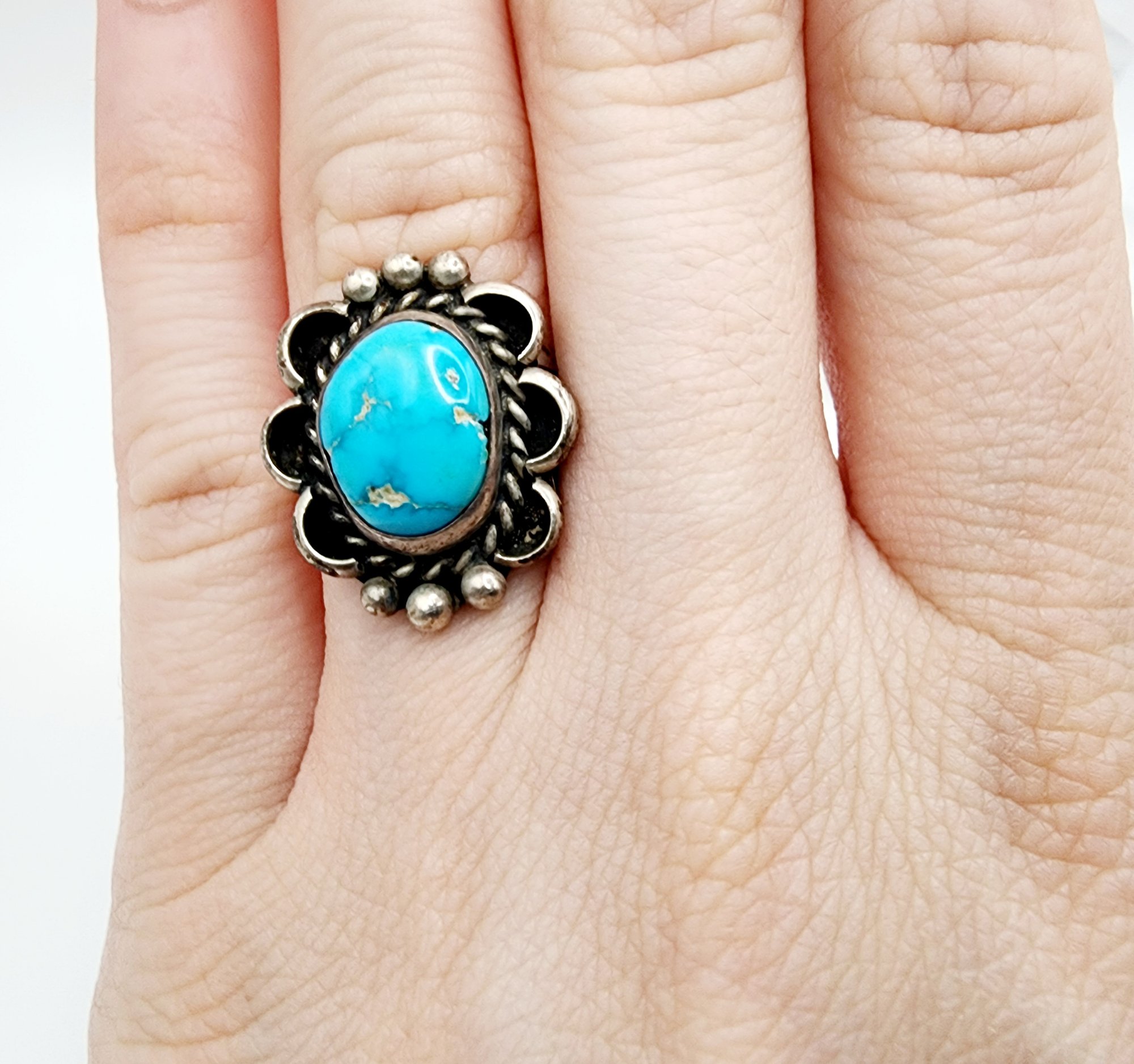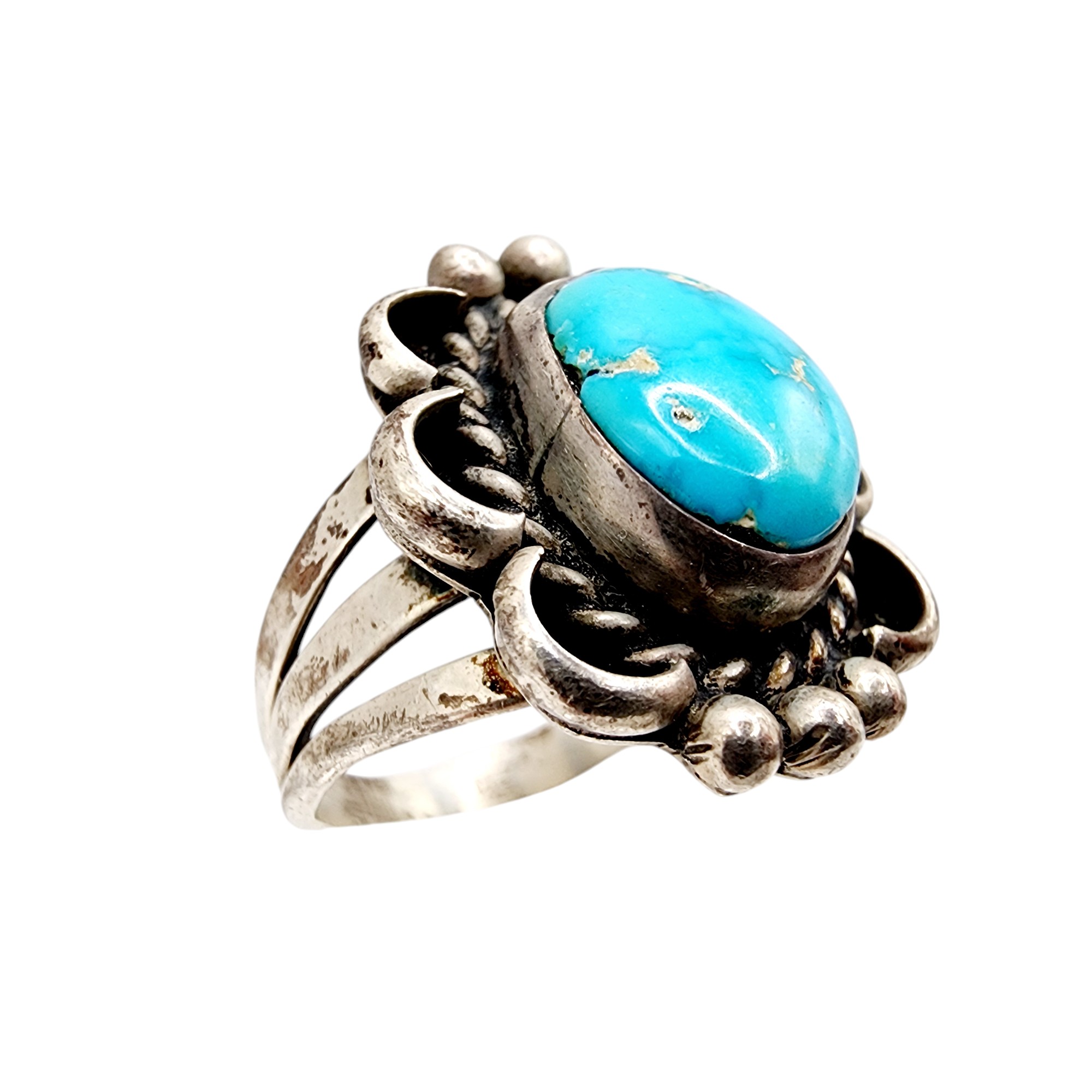Navajo Sterling Turquoise Lasso Ring Sz 7.7 6.6g