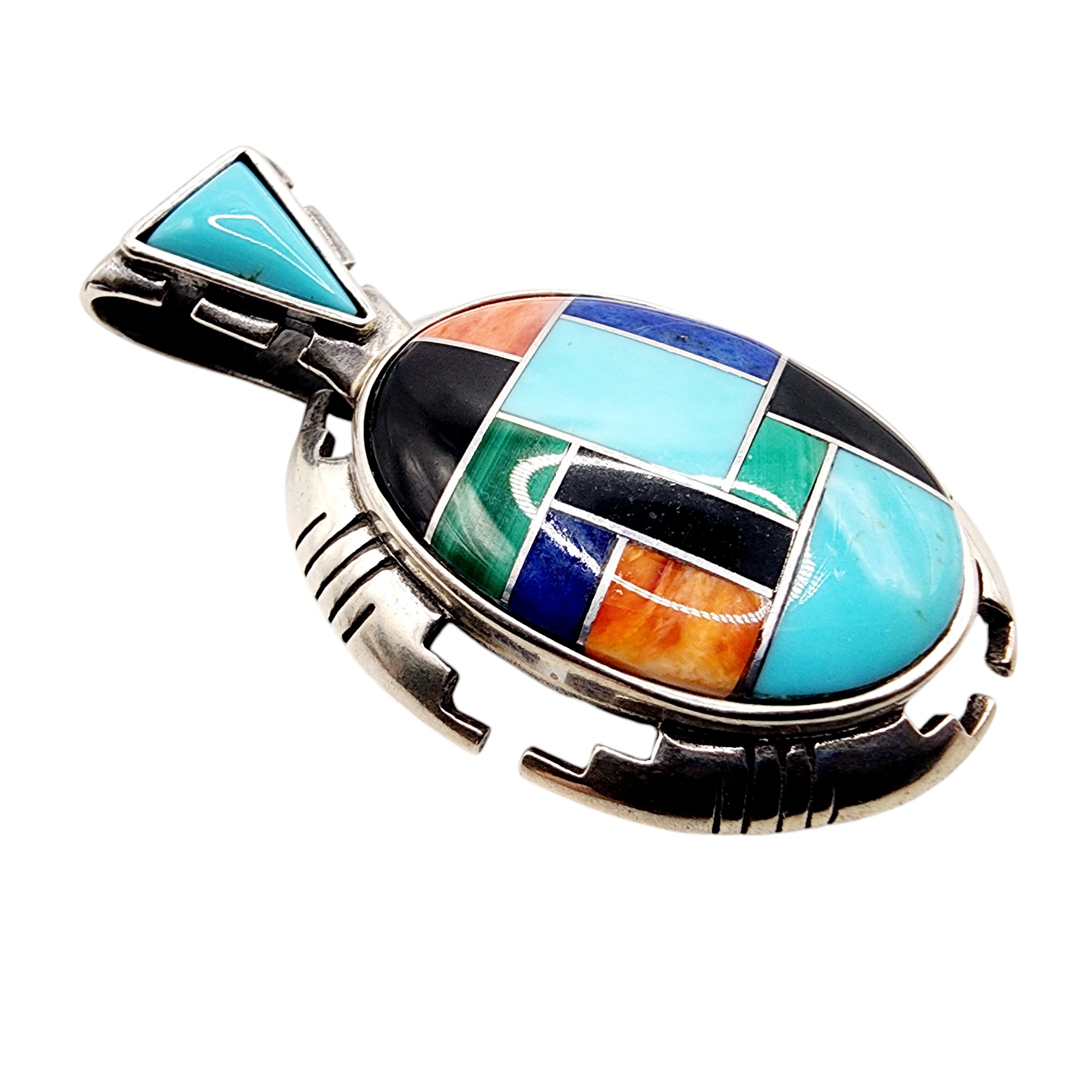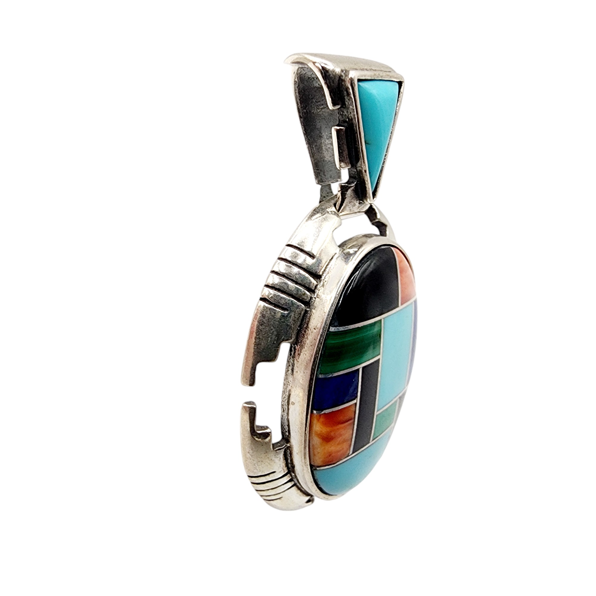 Carlisle Jewelry Co. of Albuquerque Sterling Turquoise Multi Stone Inlay Pendant 7.1g