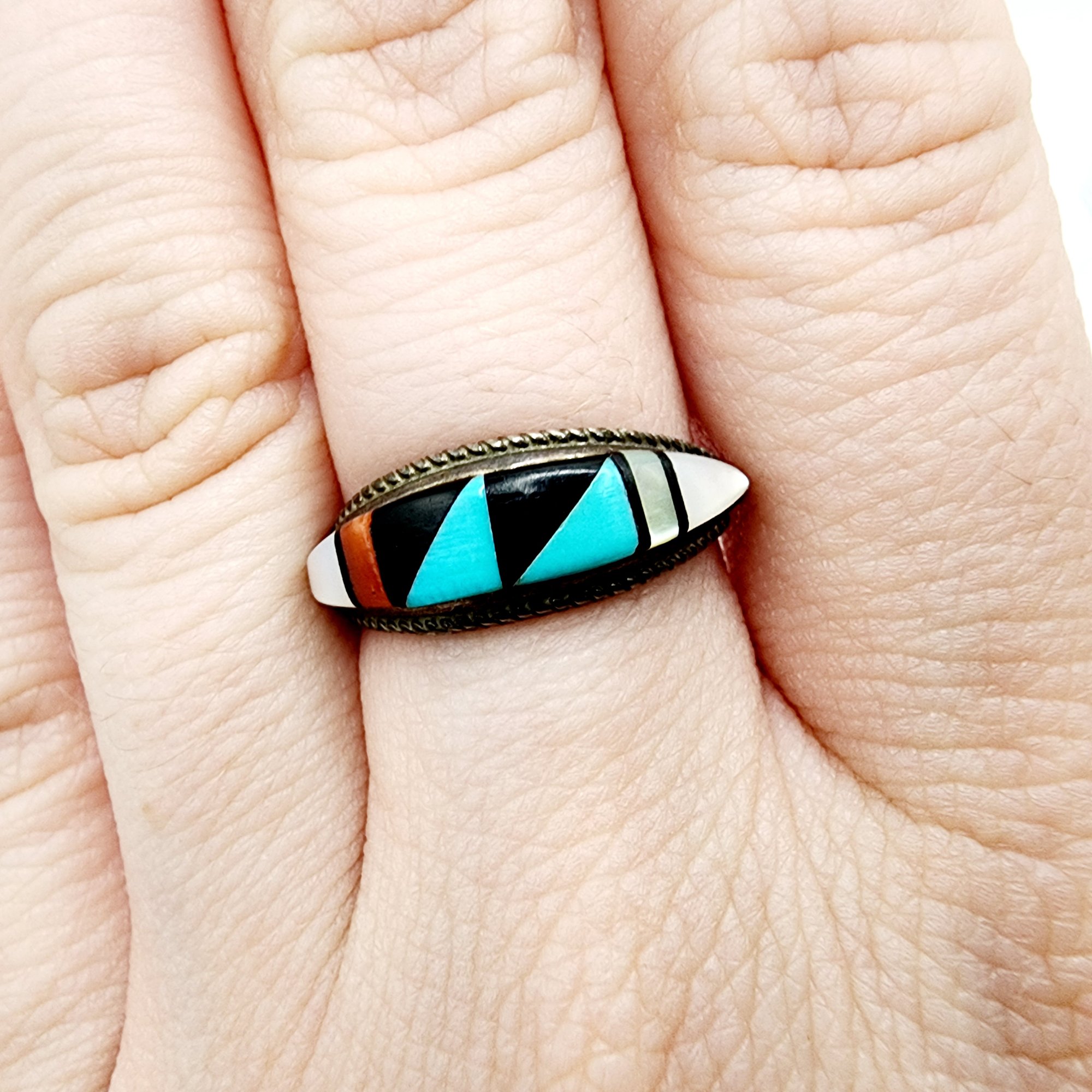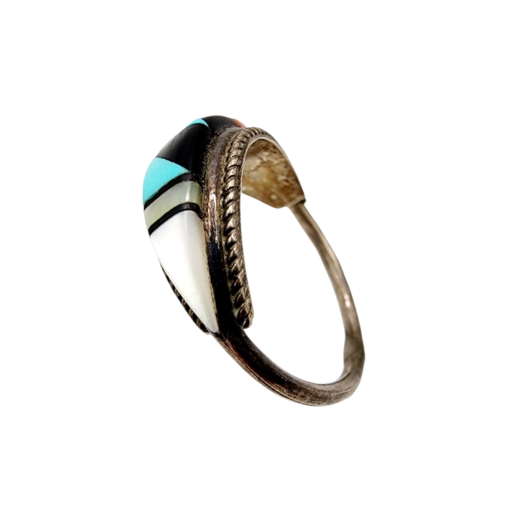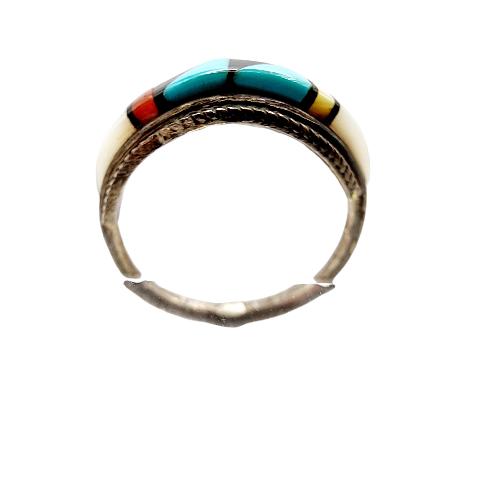 Robert and Bernice Leekya Zuni Inlay Ring Sz 7.5 2.4g