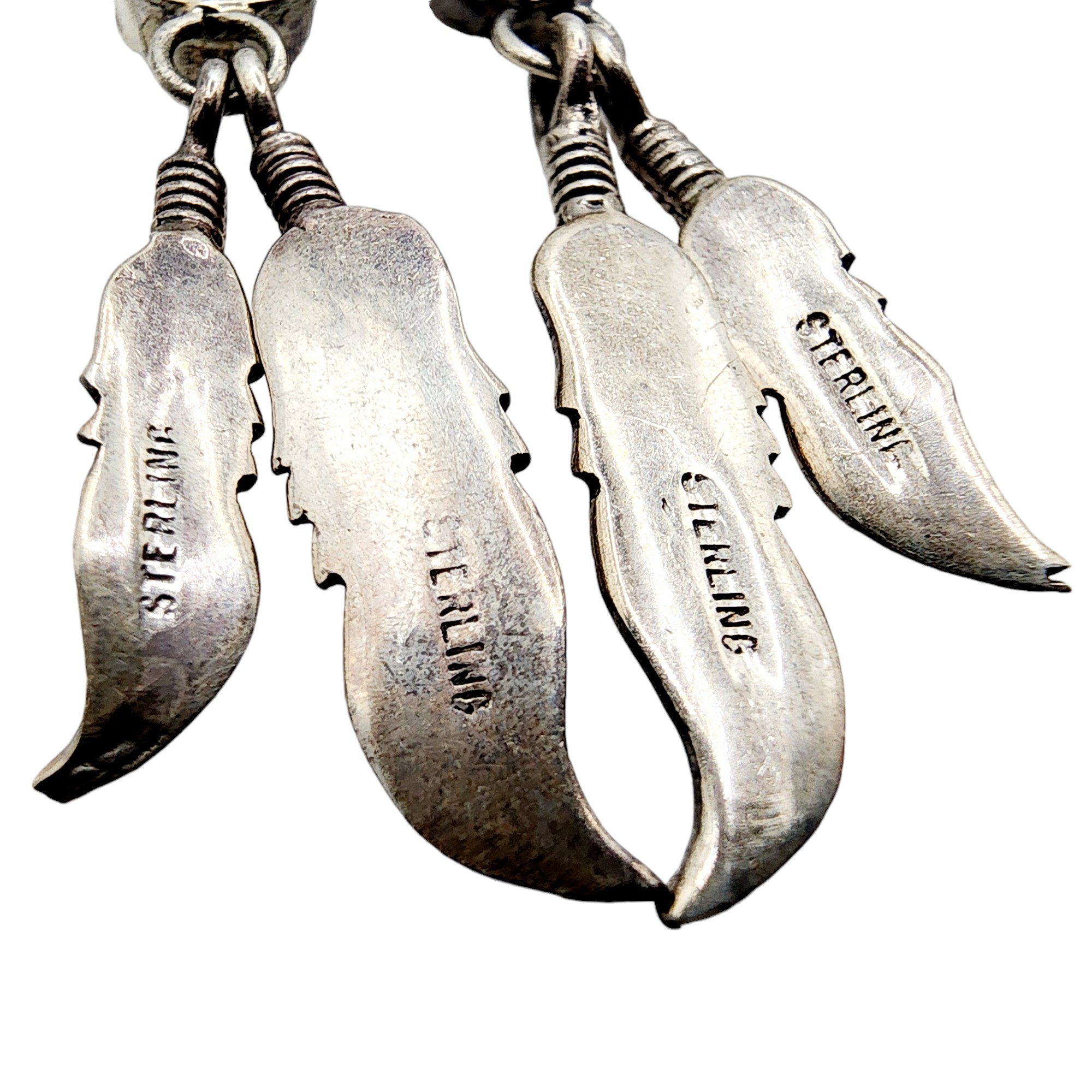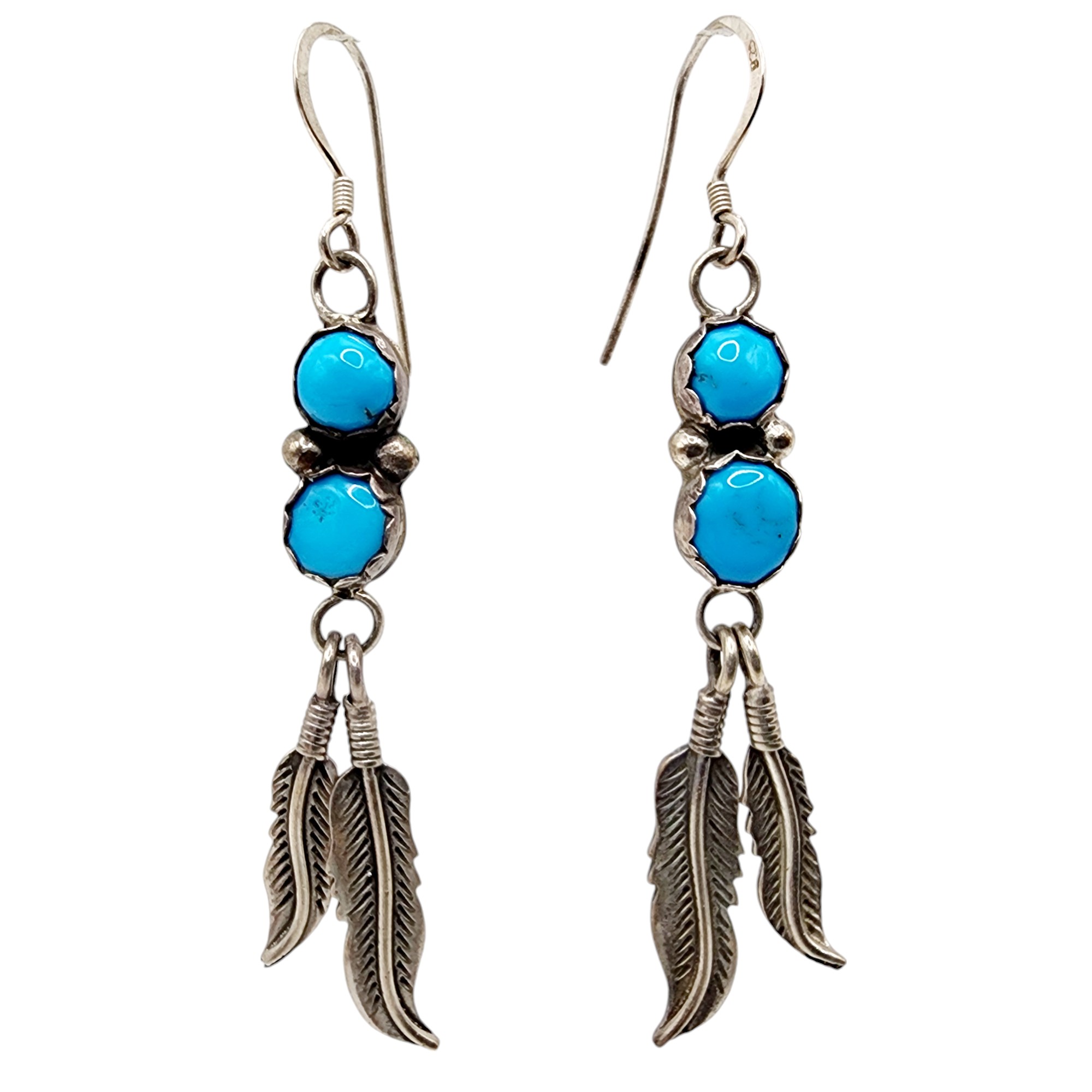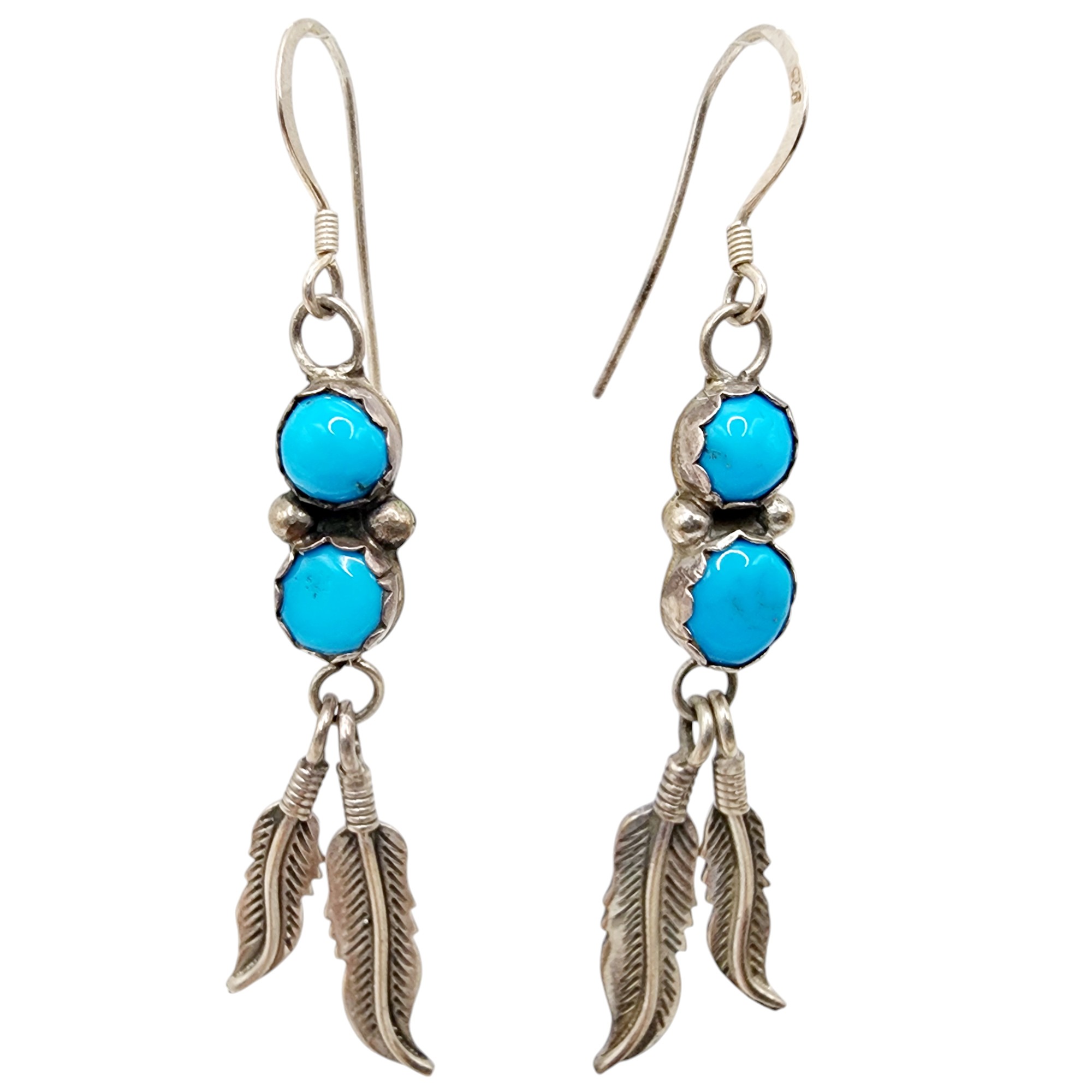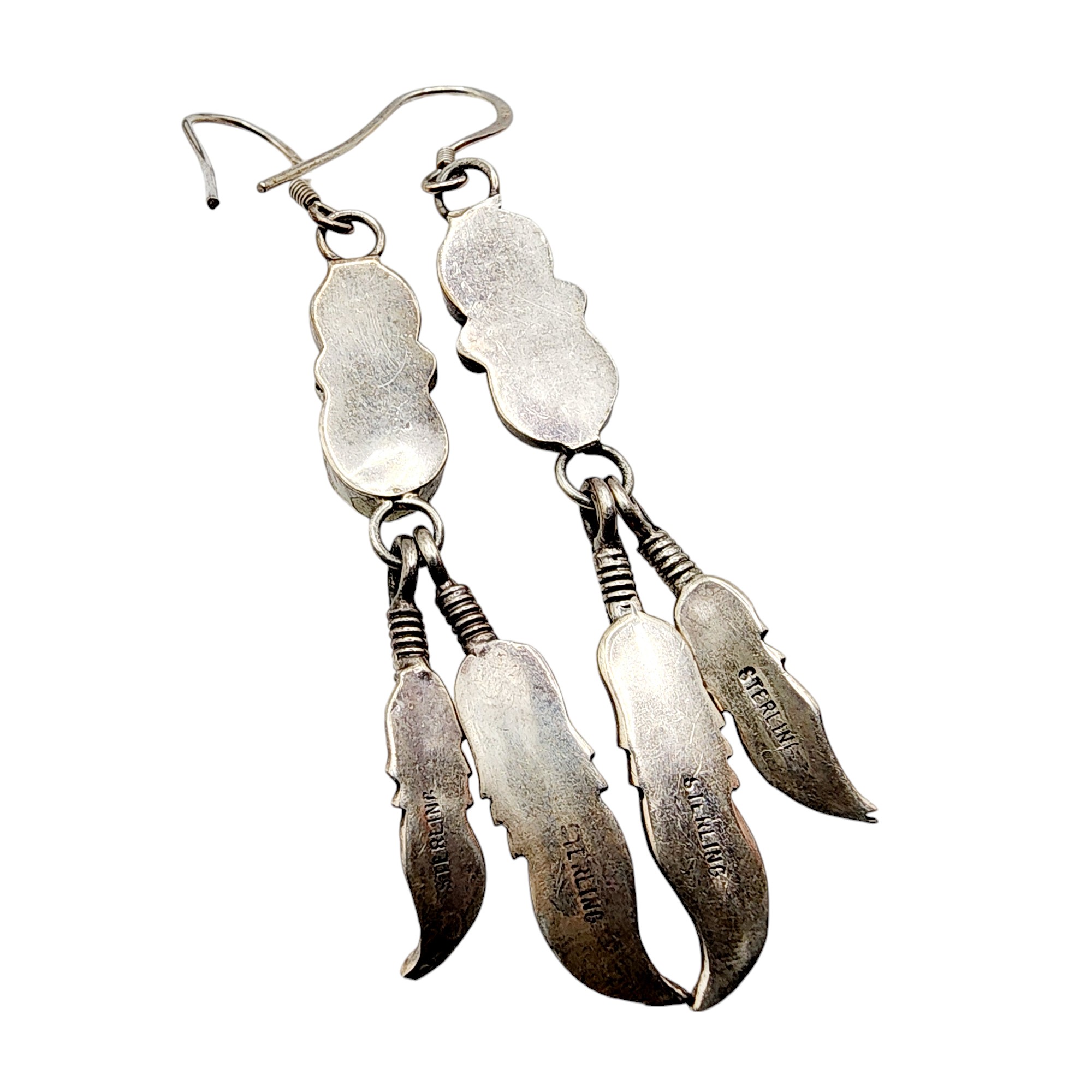 Vintage Sterling Navajo Turquoise Feather Earrings 7.9g