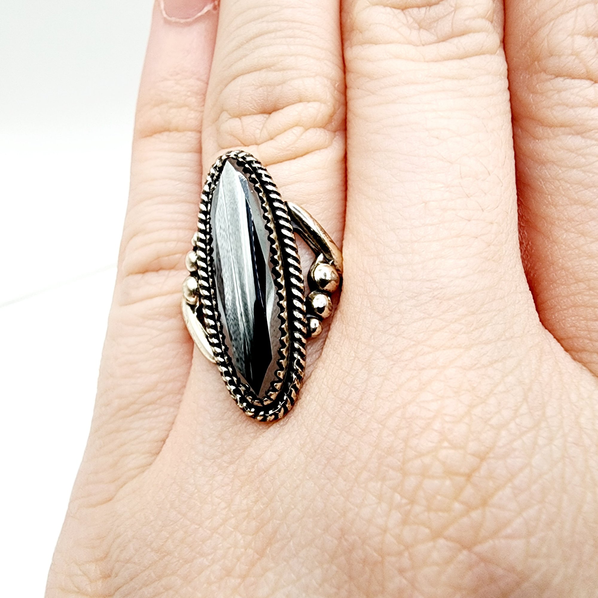 Vintage Wheeler Manufacturing Sterling Hematite Ring Sz 7 7g