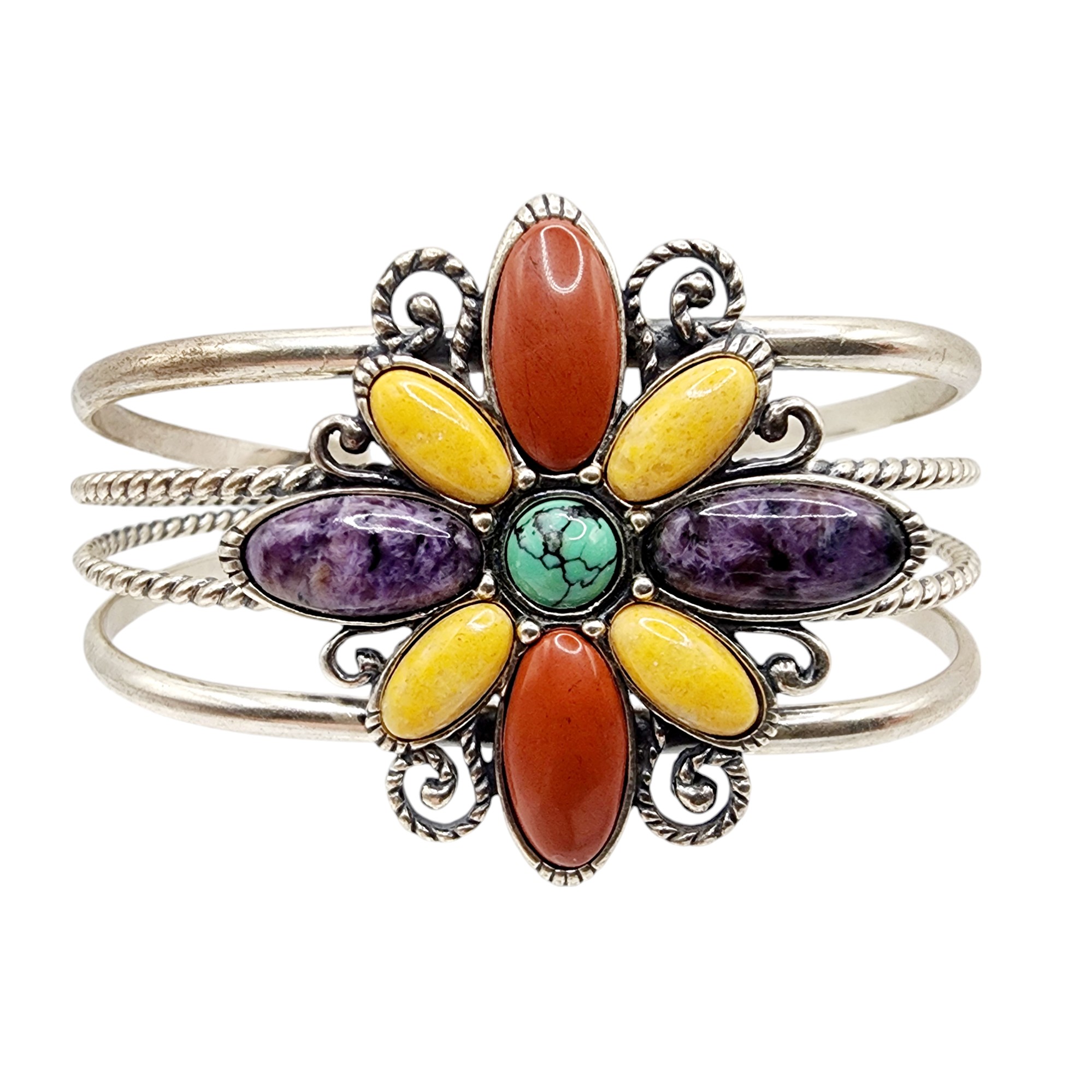 Carolyn Pollack Relios Sterling Multi Stone Cuff Bracelet 37.3g