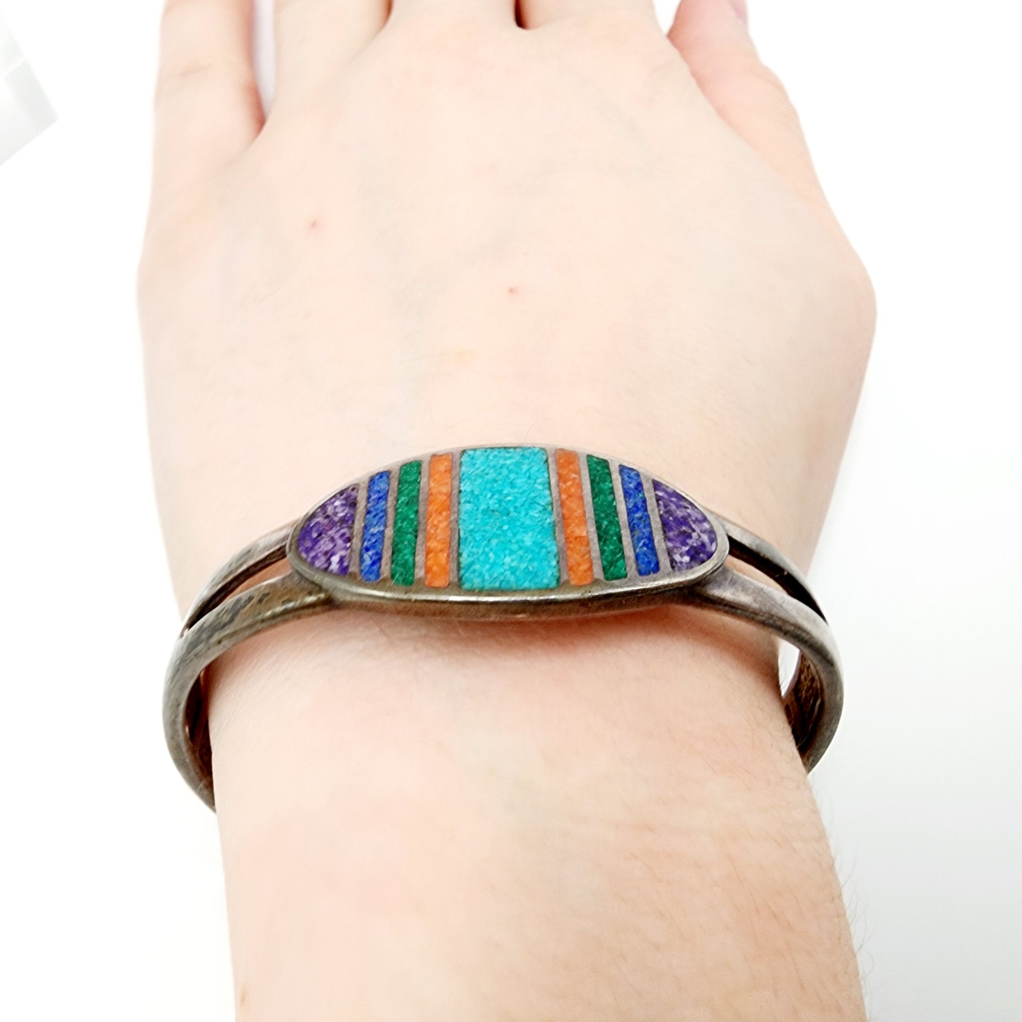 Vintage Signed Coleman Company Crushed Inlay Sterling Cuff Bracelet 30.1g
