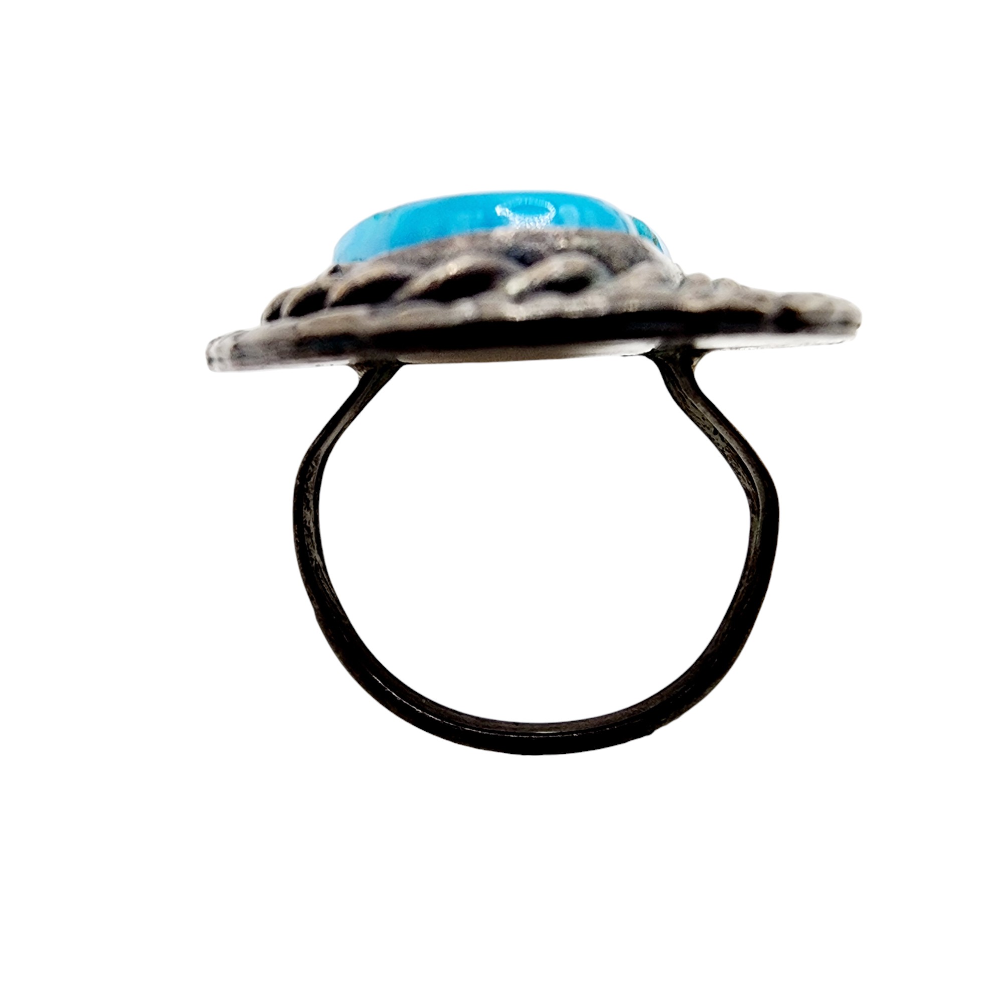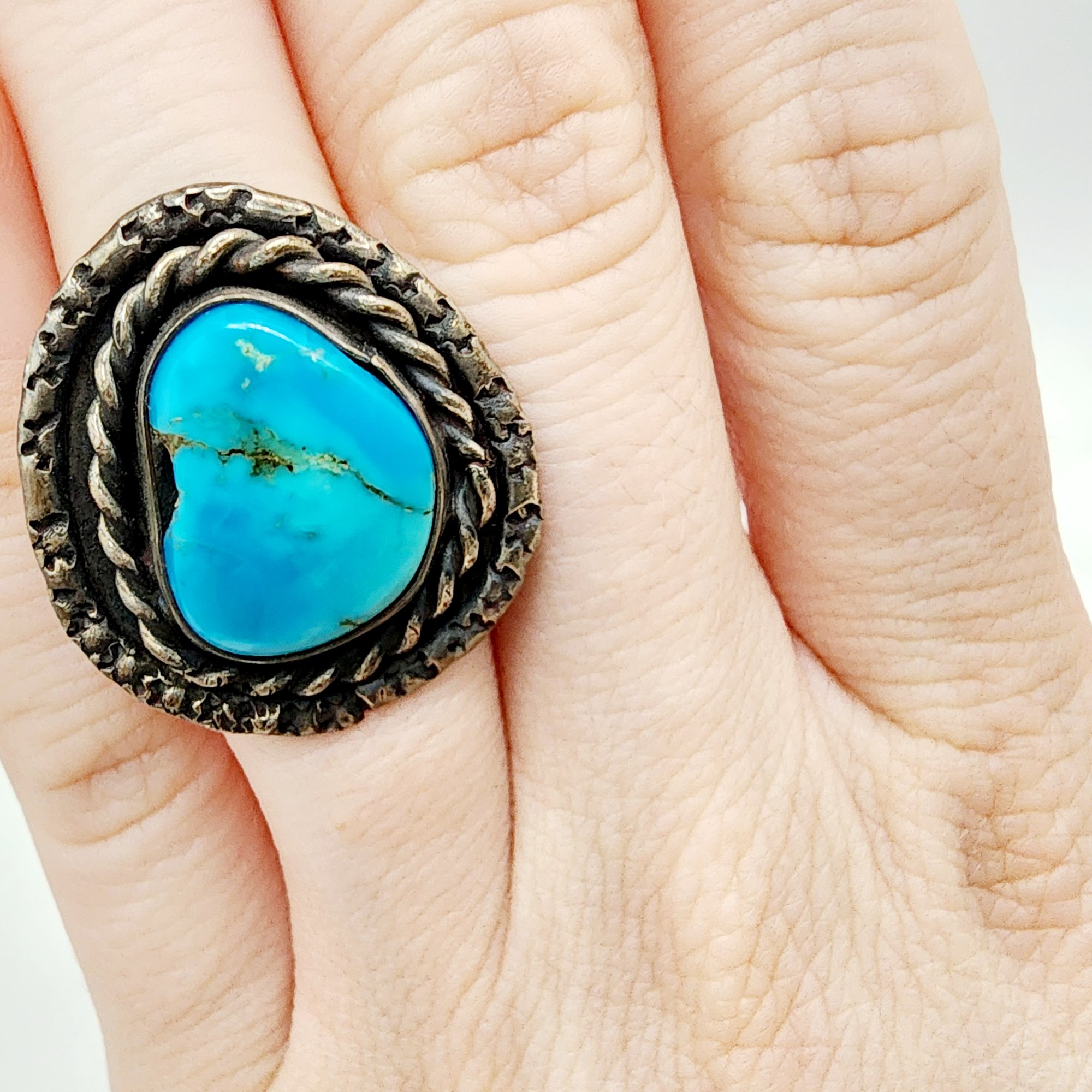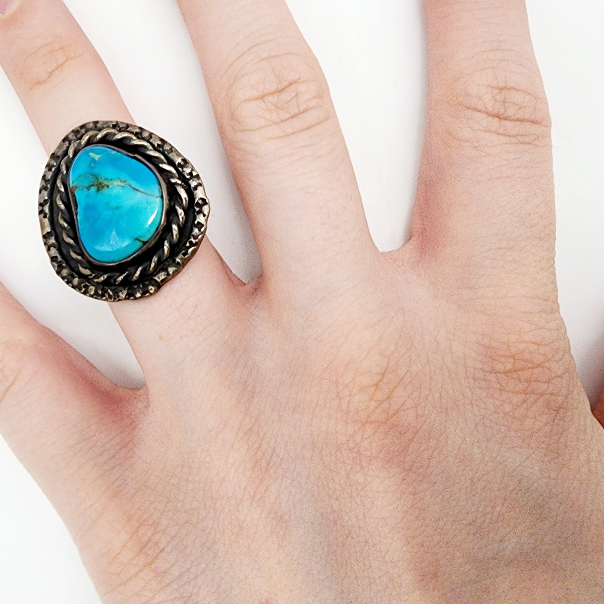 Navajo Sterling Turquoise Lasso Ring Sz 5.25 7.9g