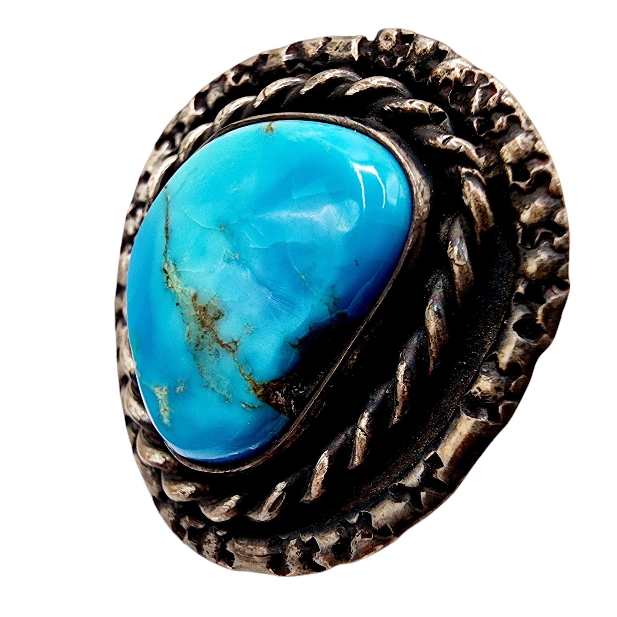 Navajo Sterling Turquoise Lasso Ring Sz 5.25 7.9g ring band out of shape
