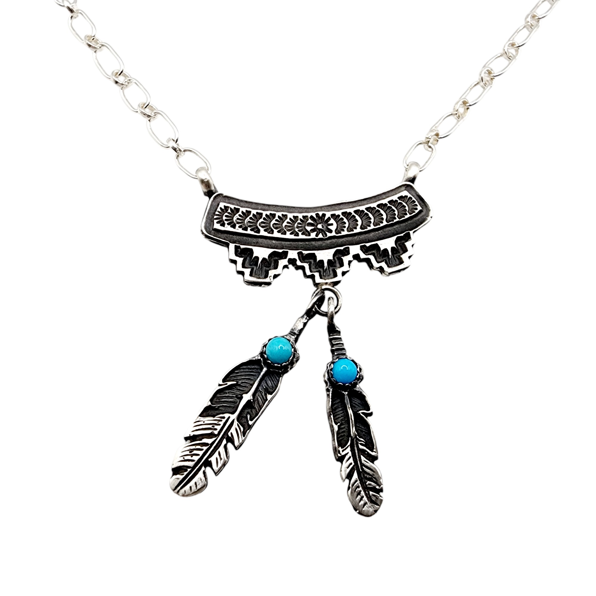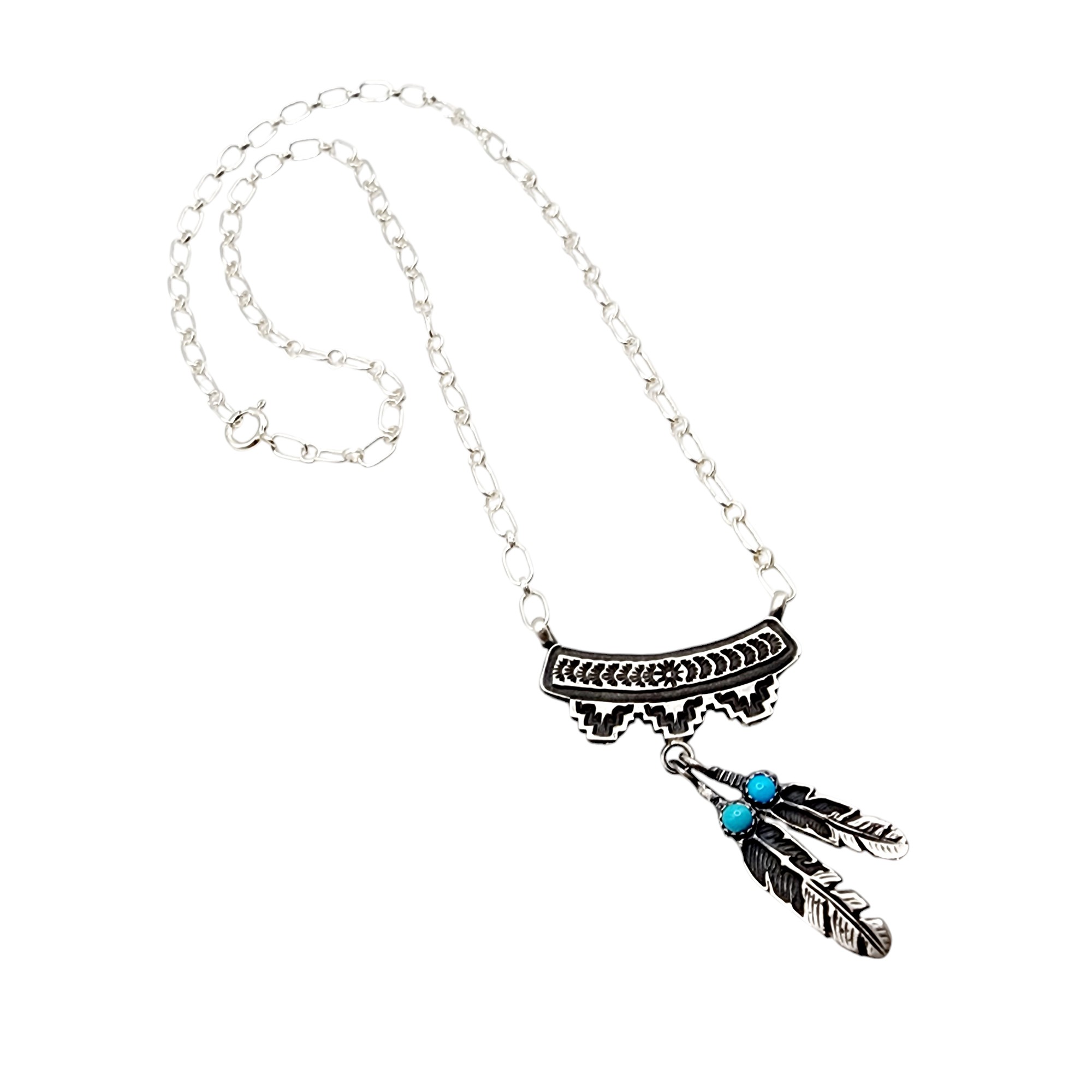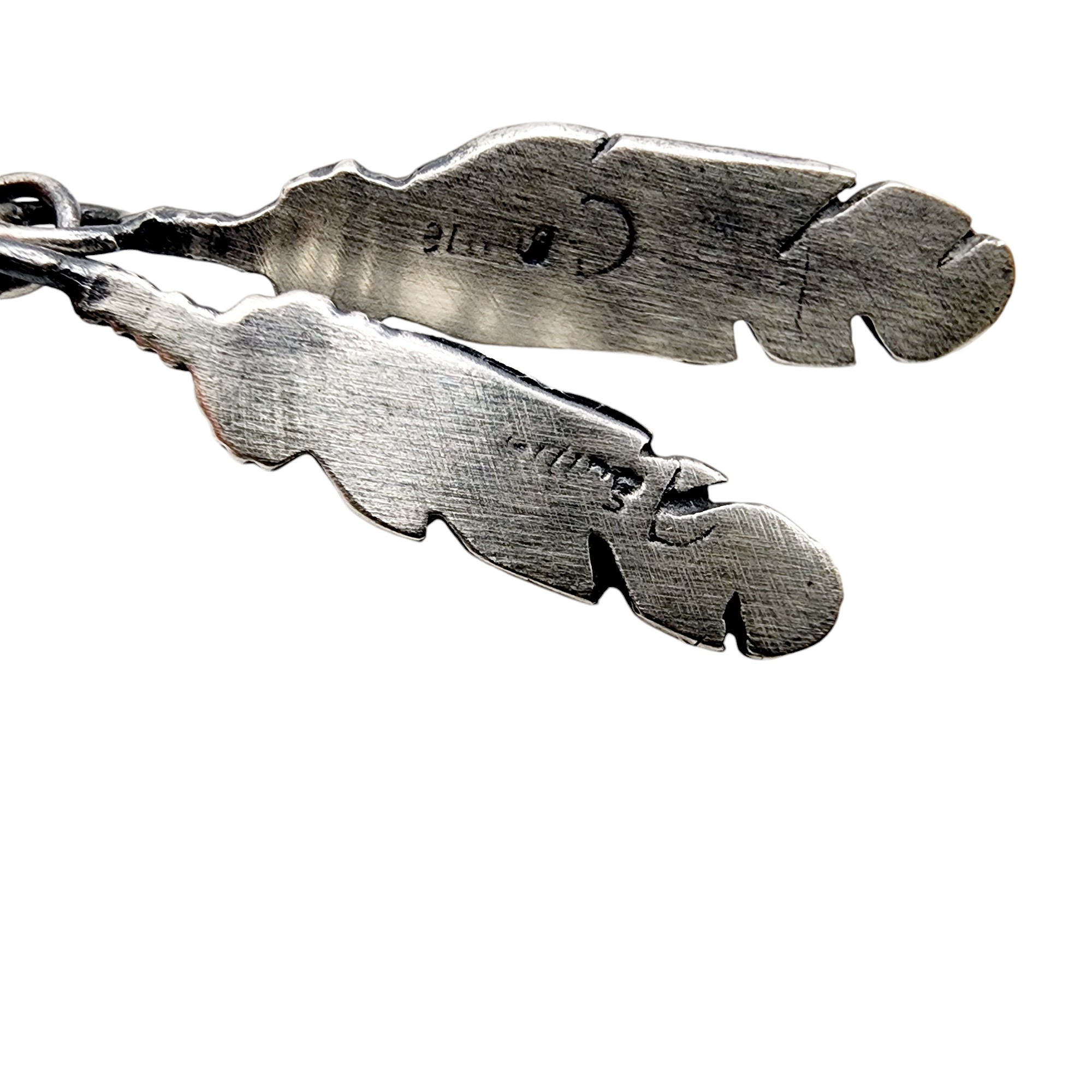 Signed ‘D’ Navajo Sterling Turquoise Feather Dangle Necklace 9.7g