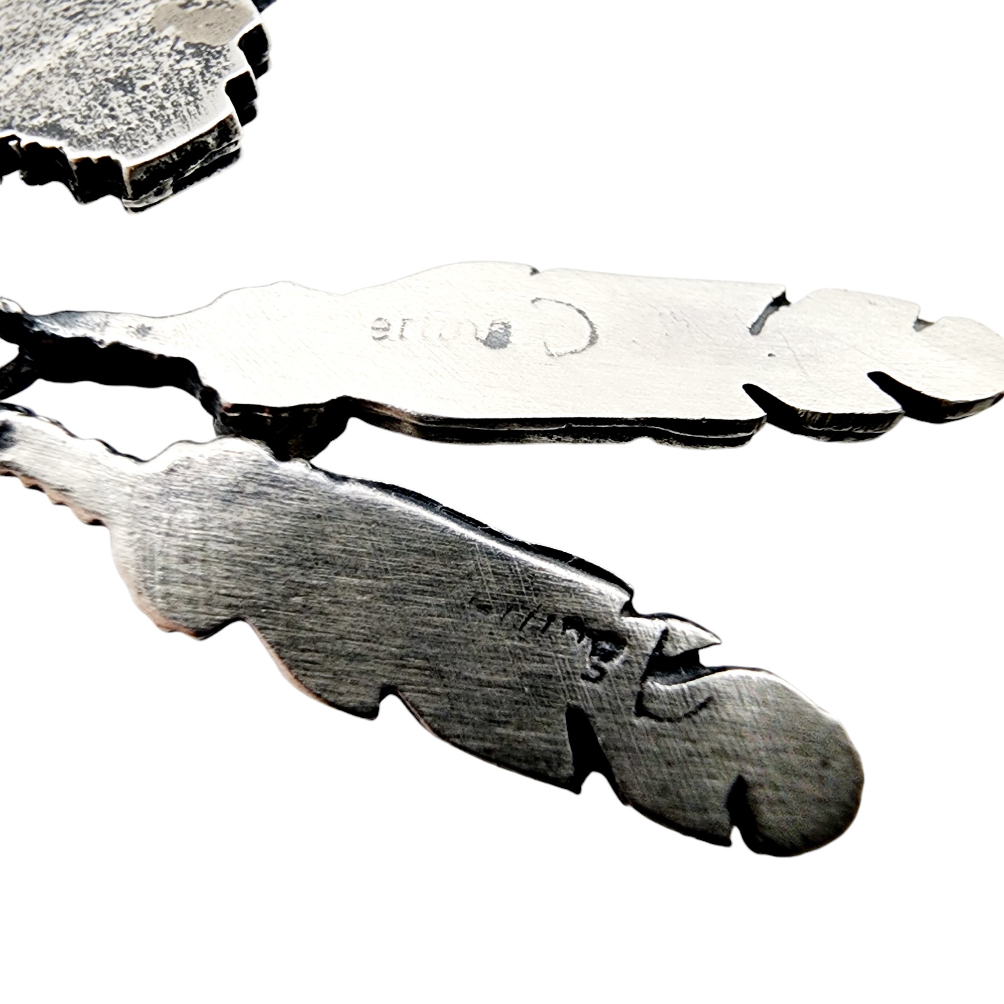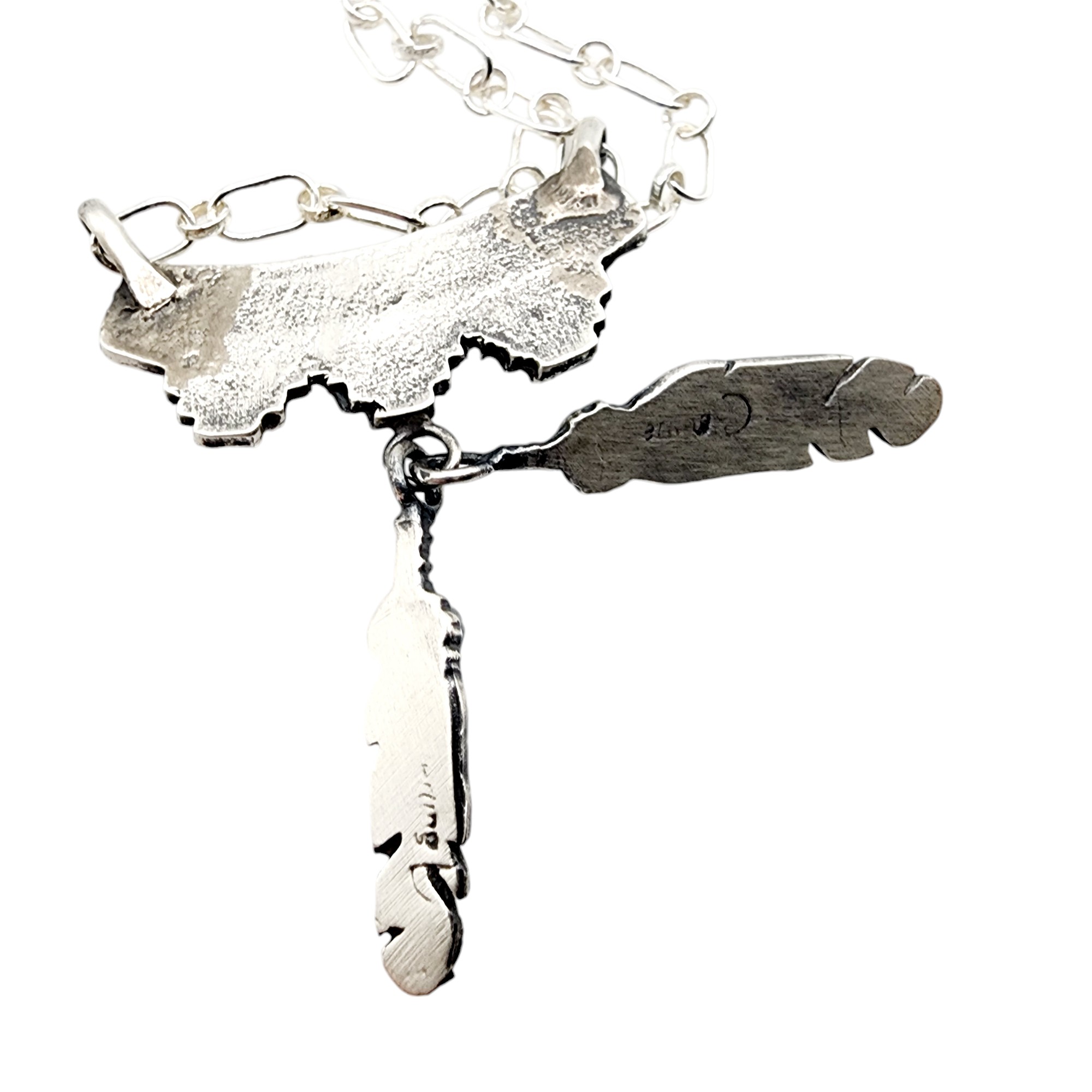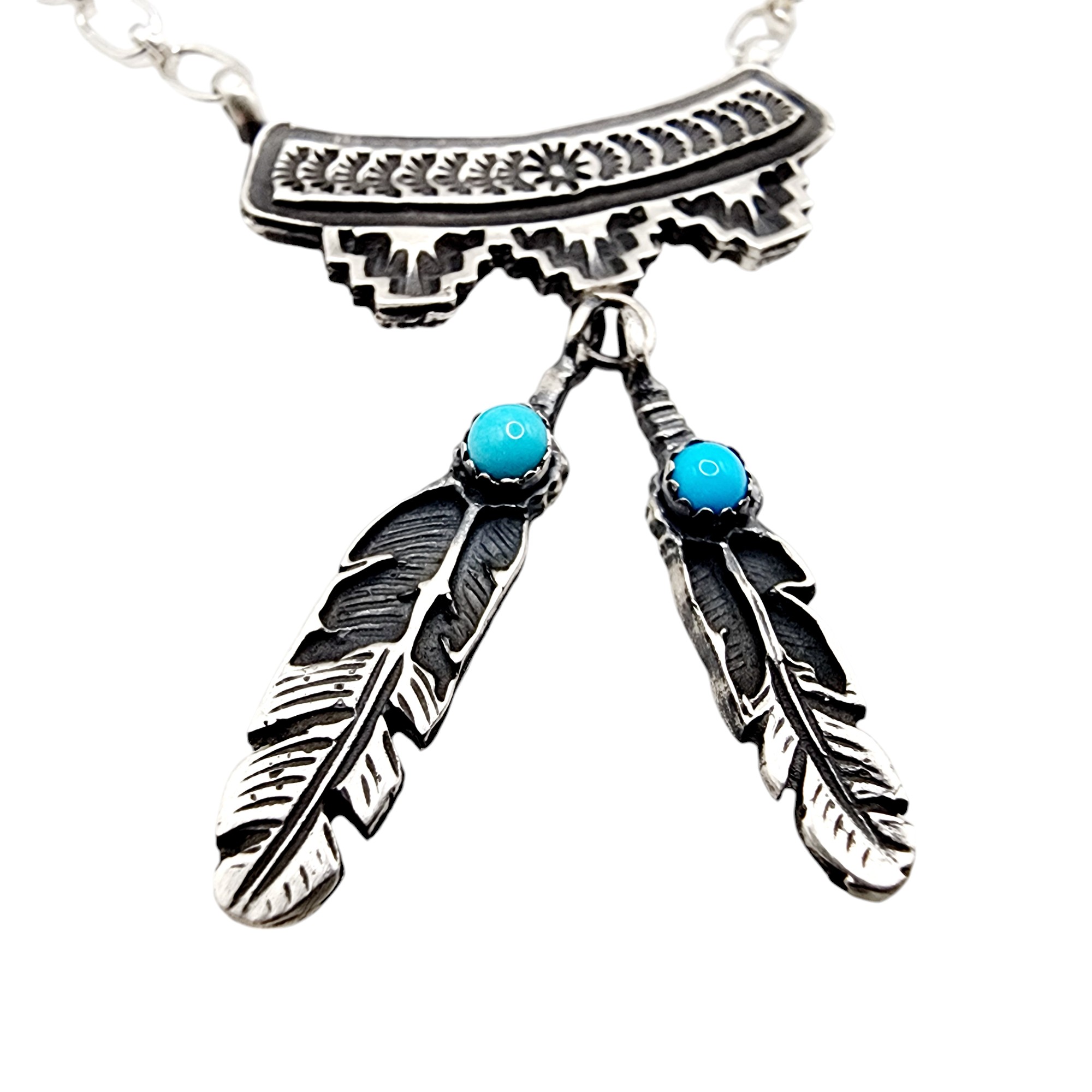 Signed ‘D’ Navajo Sterling Turquoise Feather Dangle Necklace 9.7g