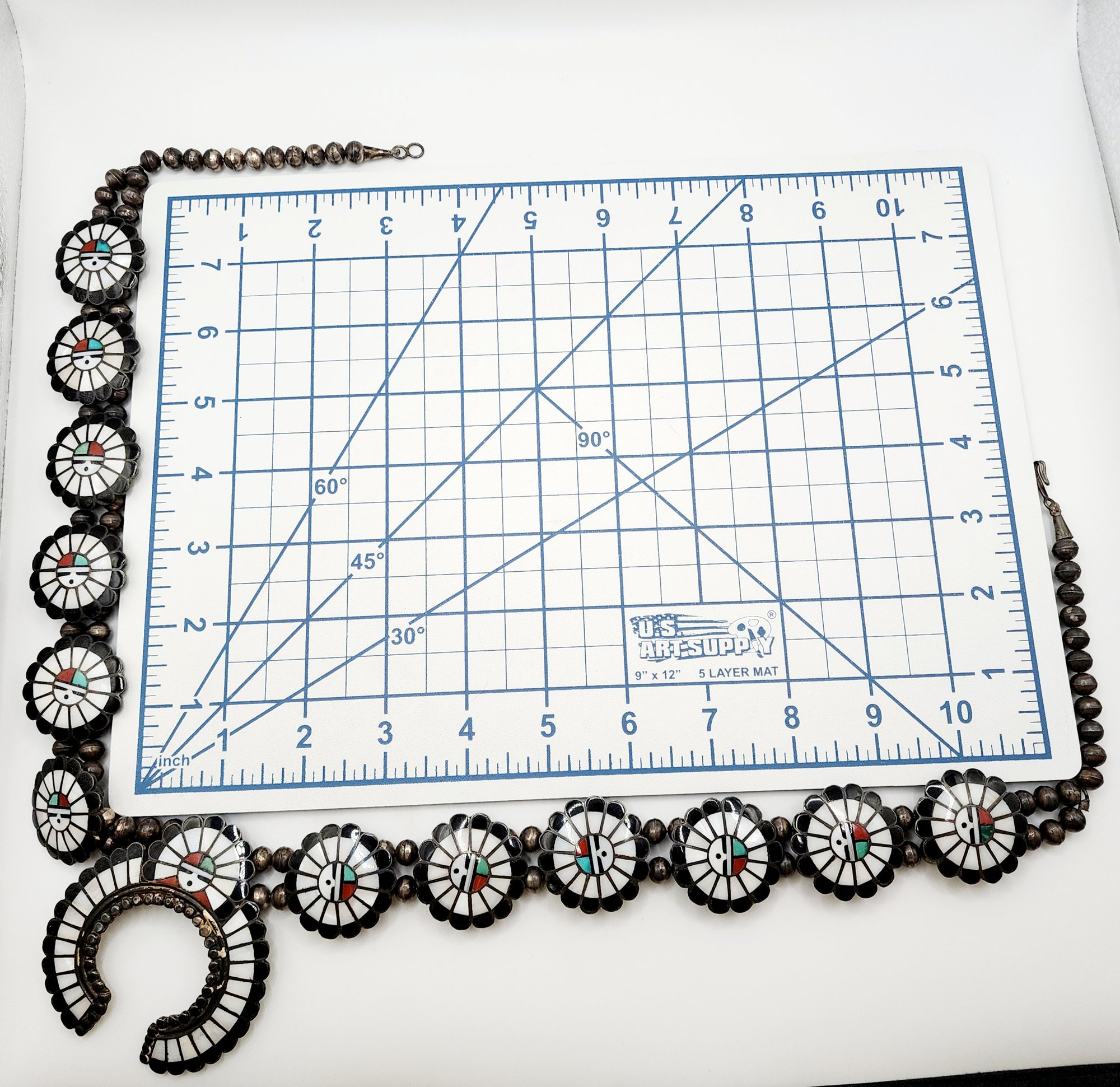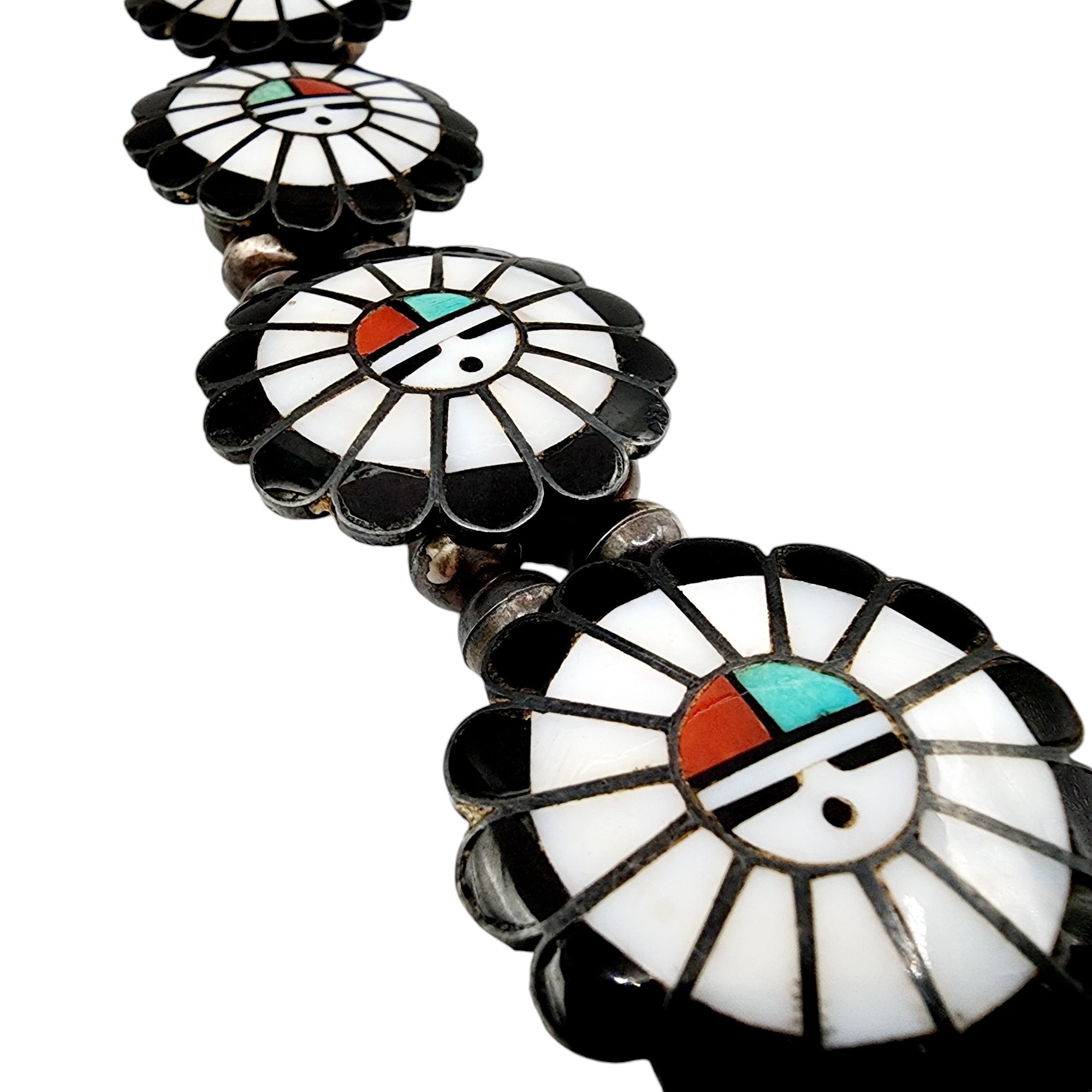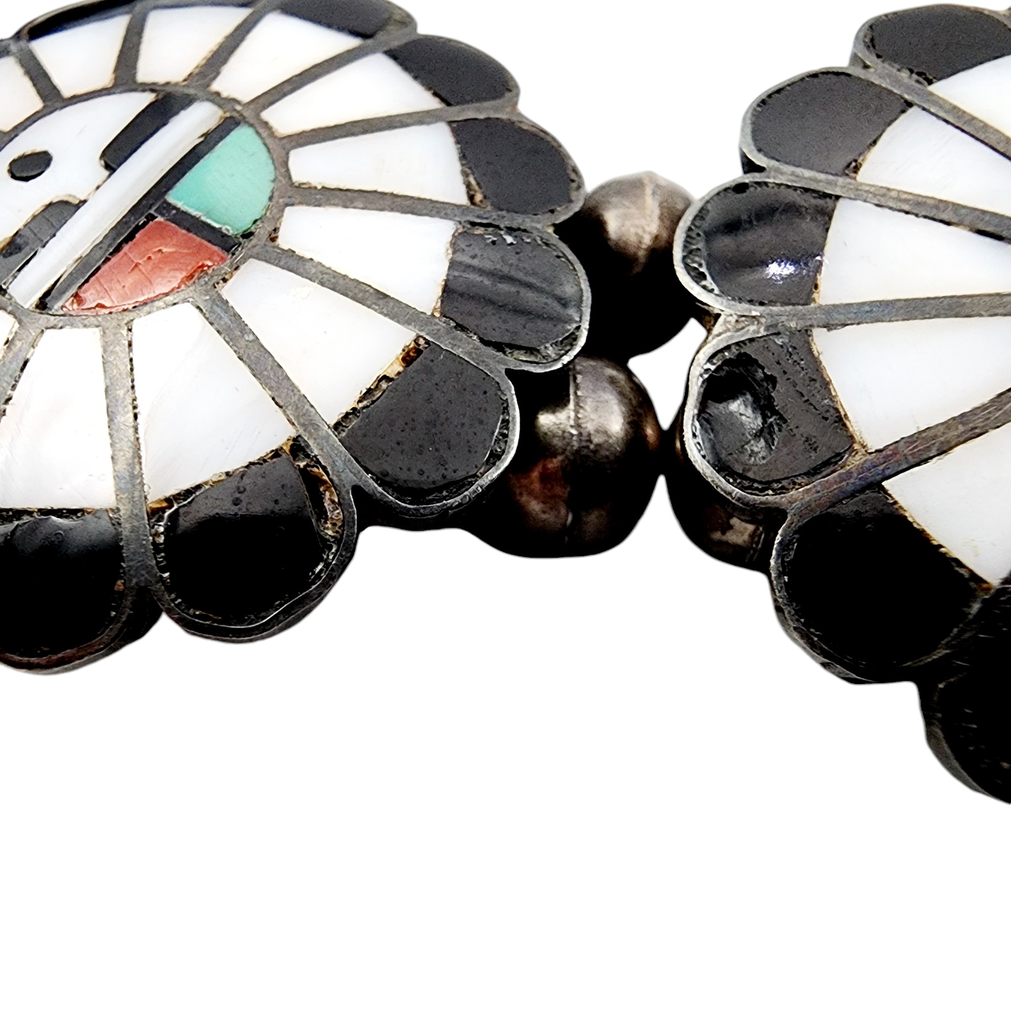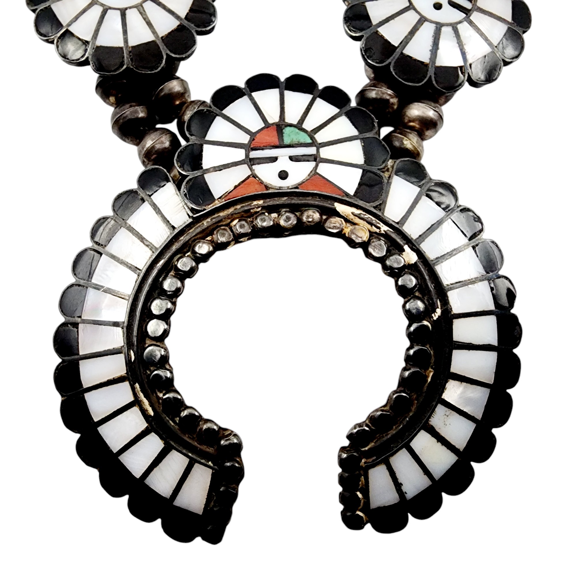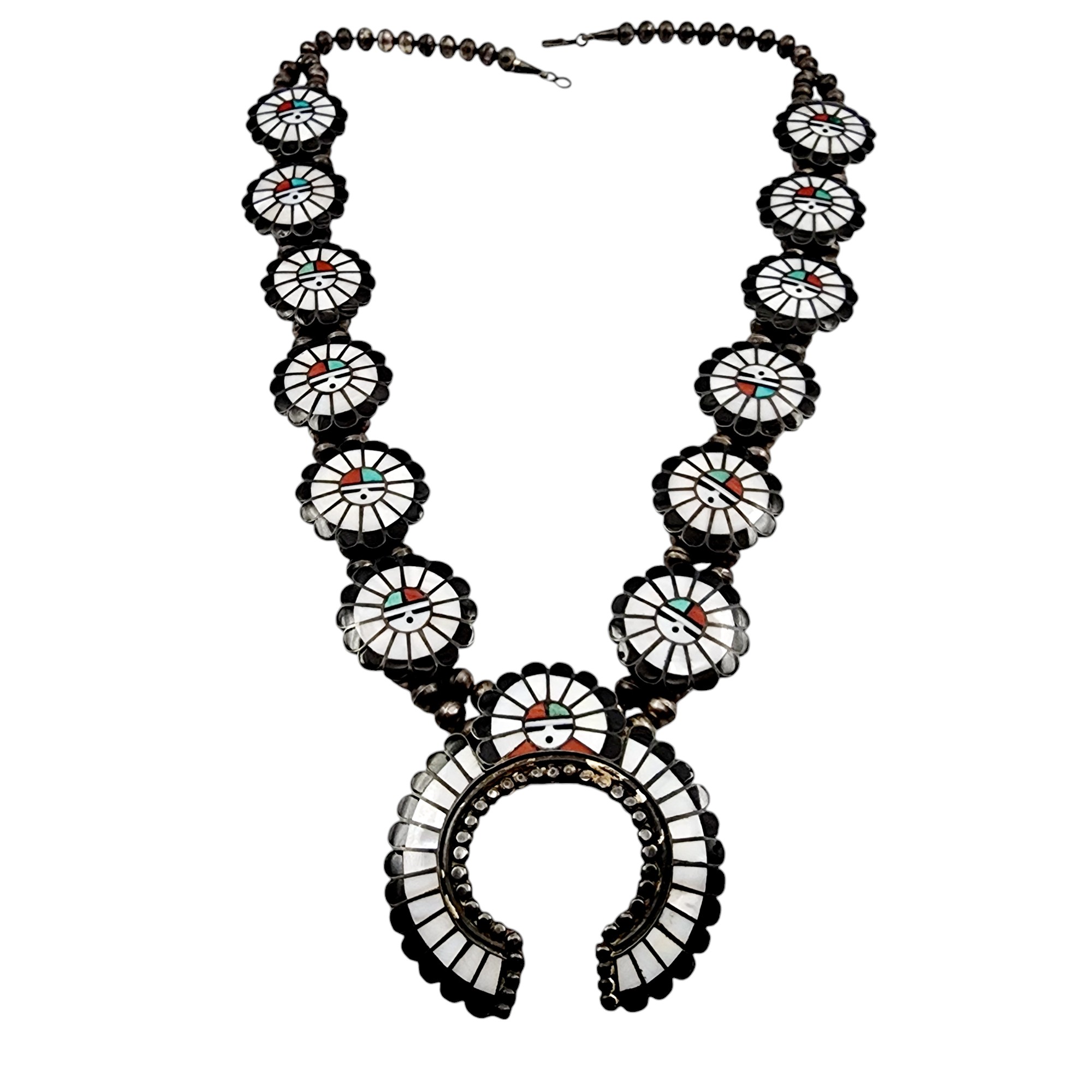 Vintage Zuni Sterling Multi Stone Sun Face Inlay Squash Blossom Necklace 223g