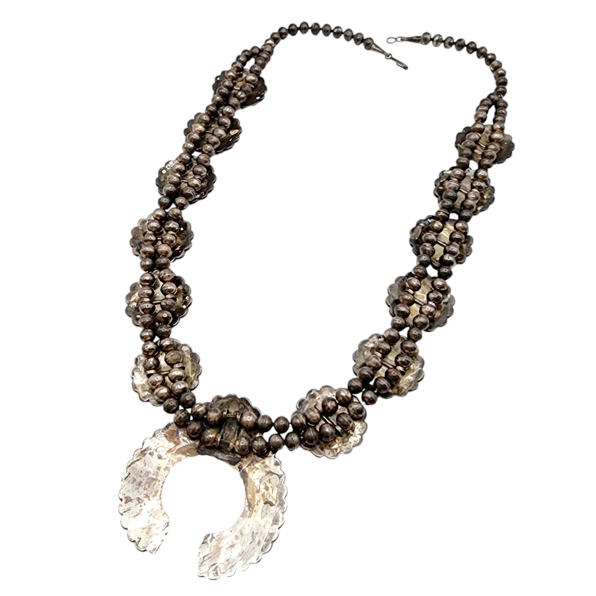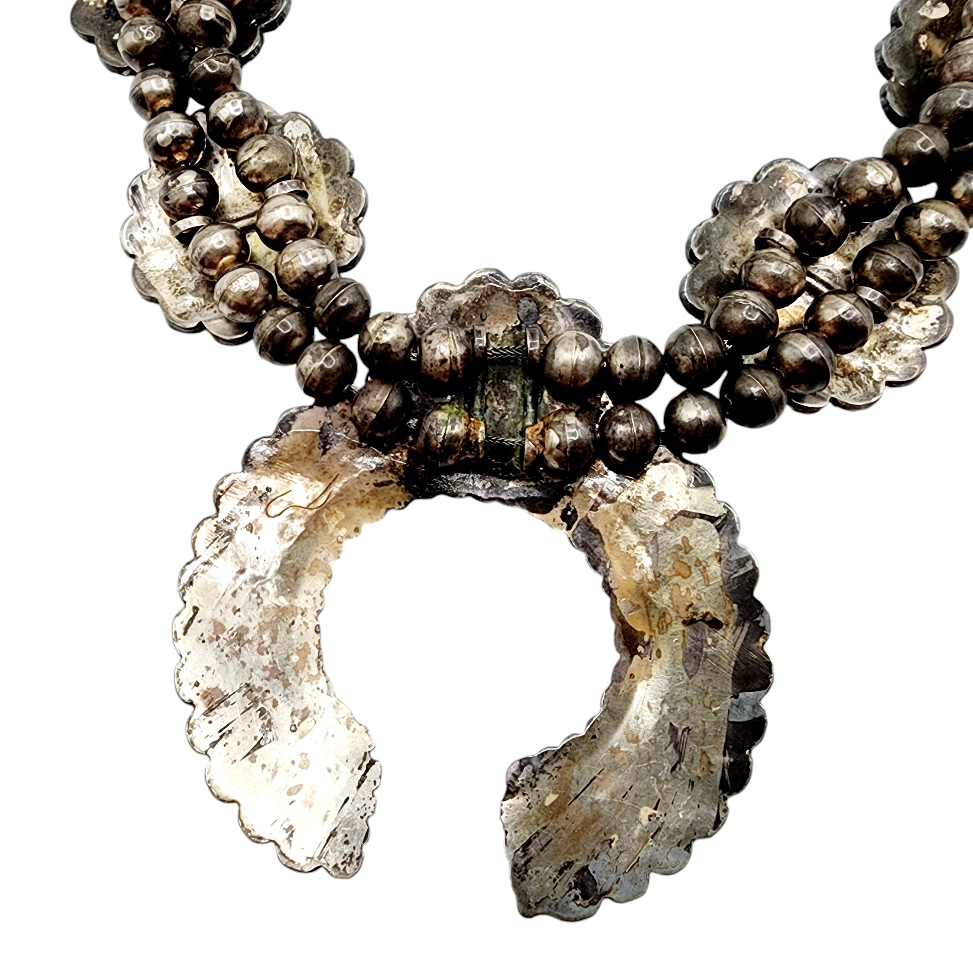 Vintage Zuni Sterling Multi Stone Sun Face Inlay Squash Blossom Necklace 223g as is view pictures for condition
