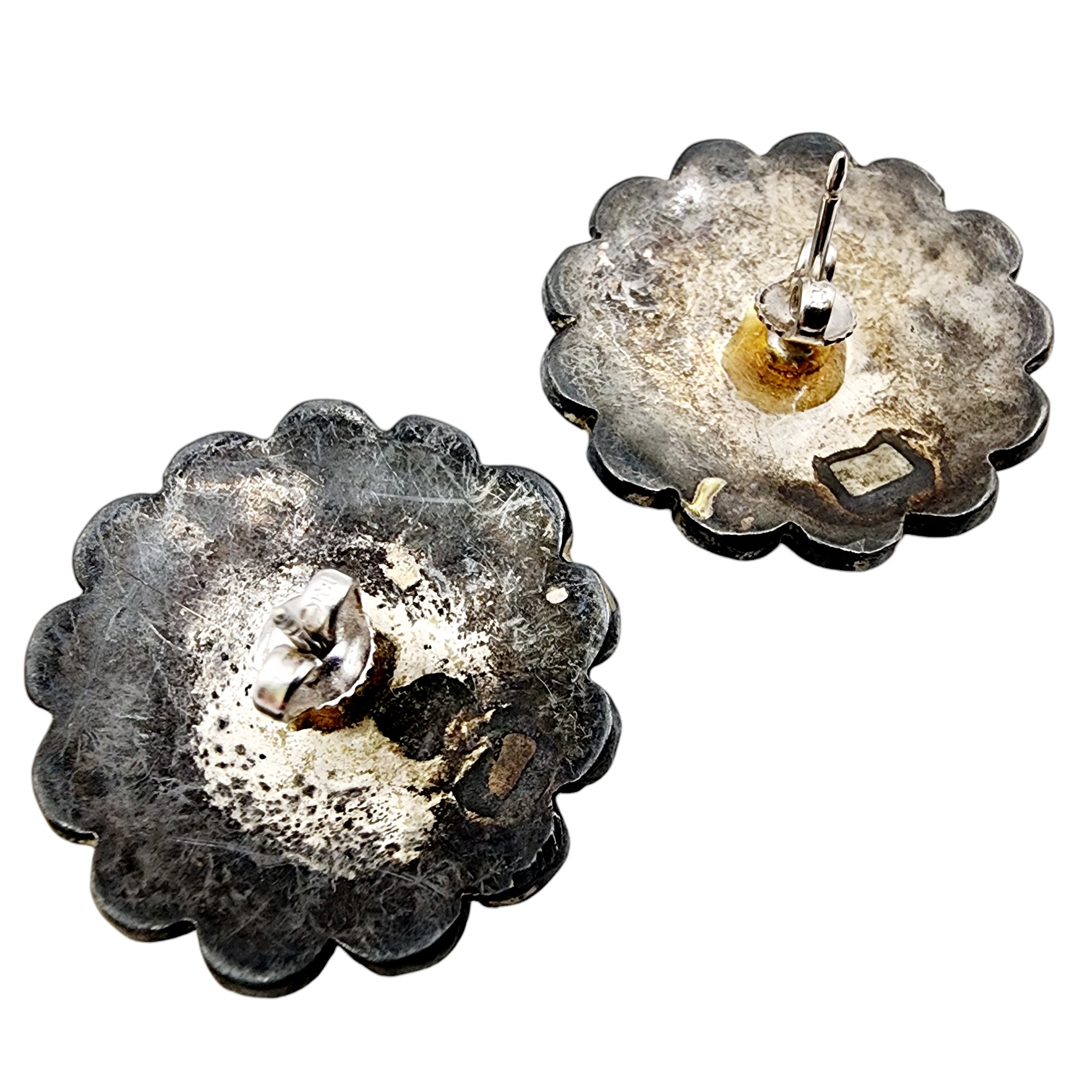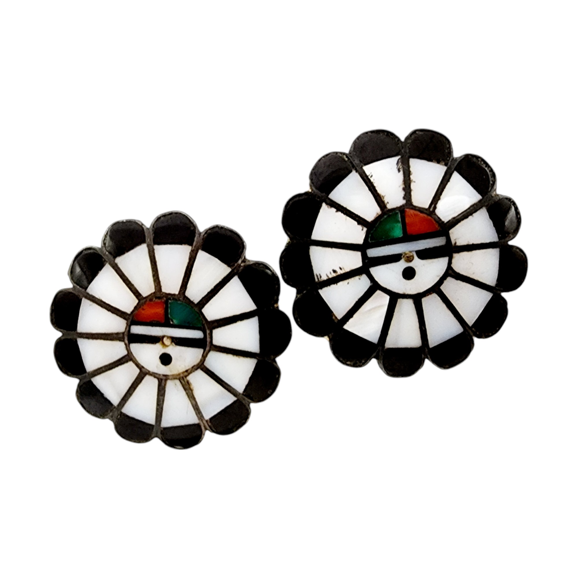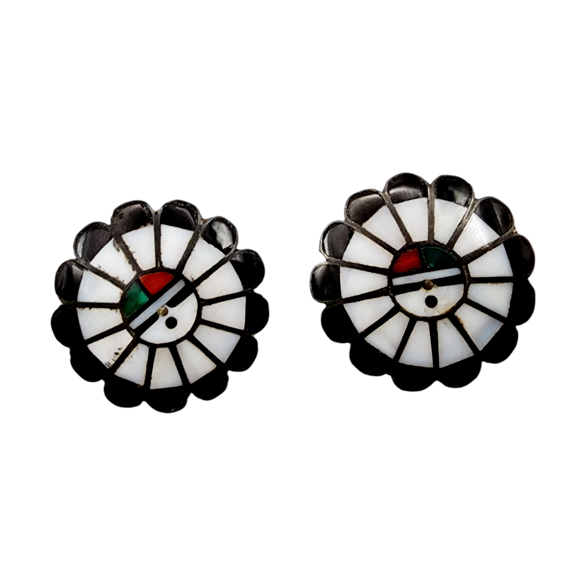 Vintage Zuni Sterling Multi Stone Sun Face Inlay Earrings 12.3g as is view pictures for condition