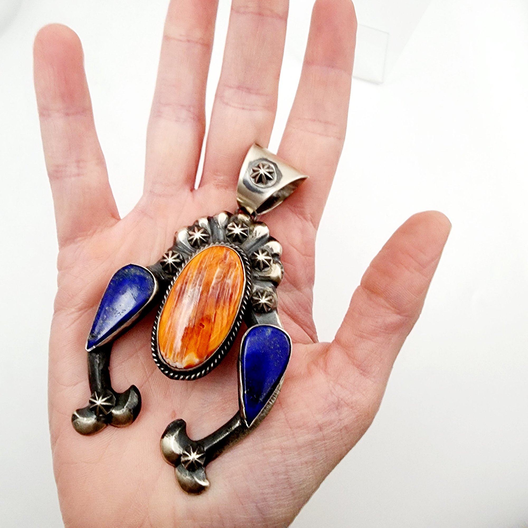 Chimney Butte Spiny Oyster Lapis Lazuli Naja Sterling Pendant 71.1g *Previous owner cleaned/polished this item*