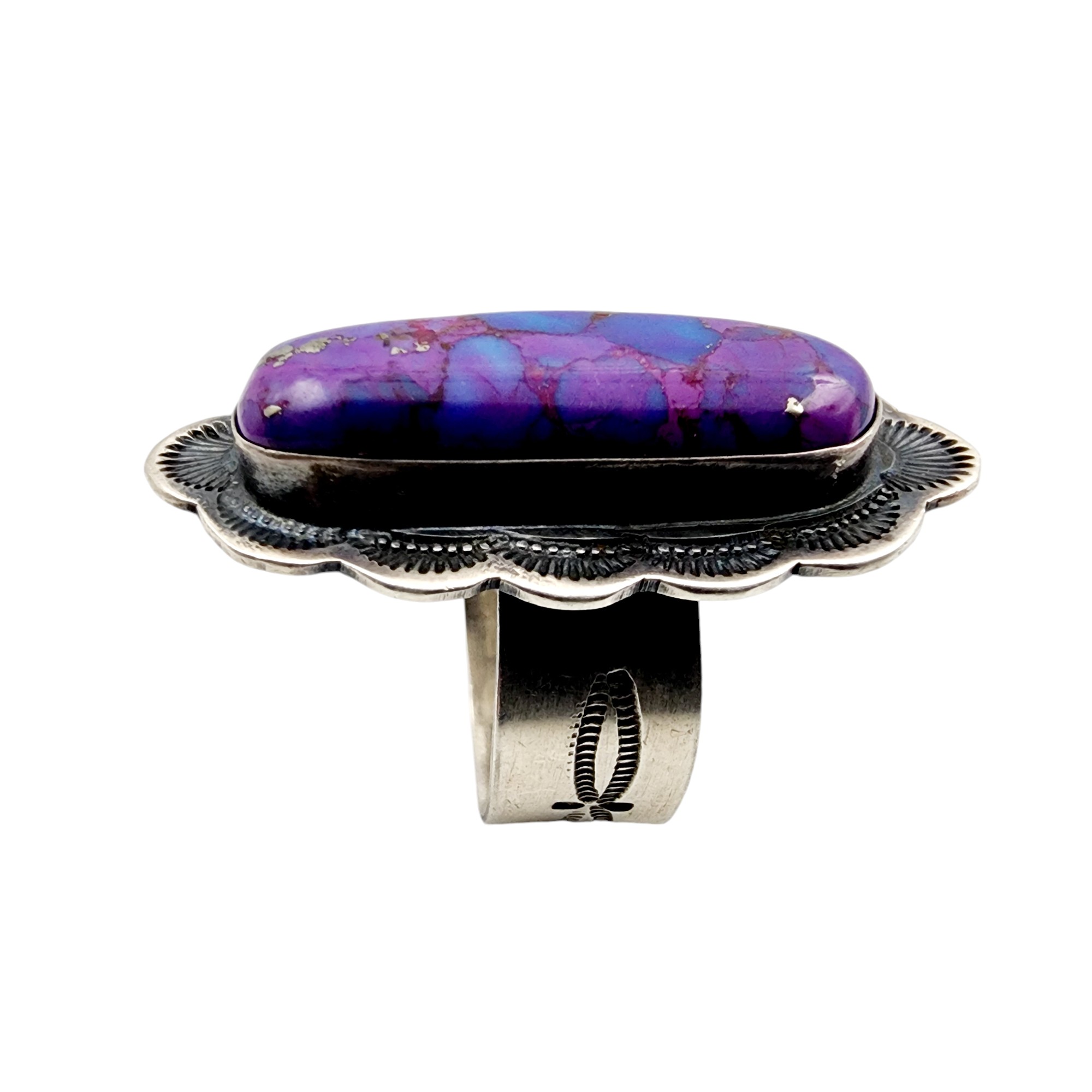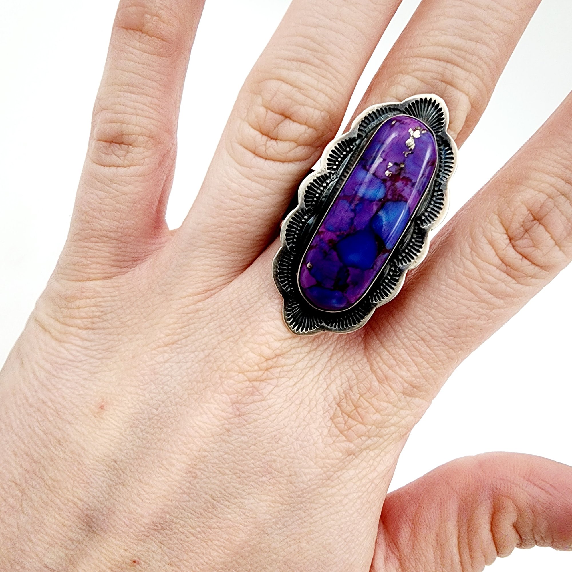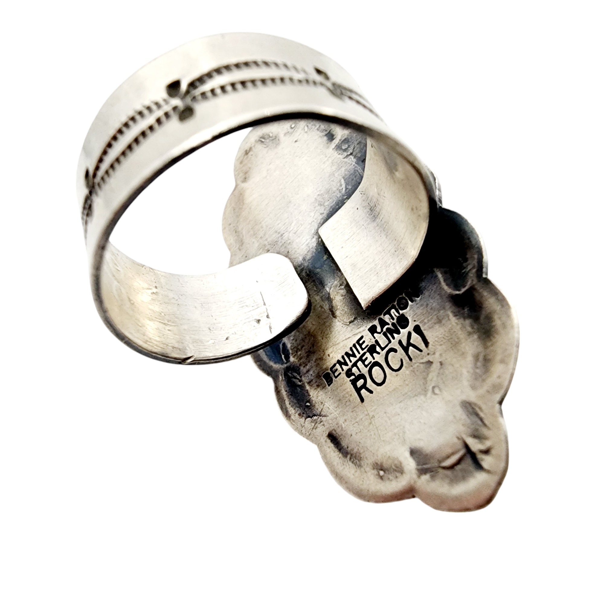 Bennie Ration & Rocki Gorman Navajo Purple Mohave Turquoise Hand Stamped Sterling Ring Sz 10.25 14.5g – this ring is OUTSTANDING! Well-made incredible craftmanship.