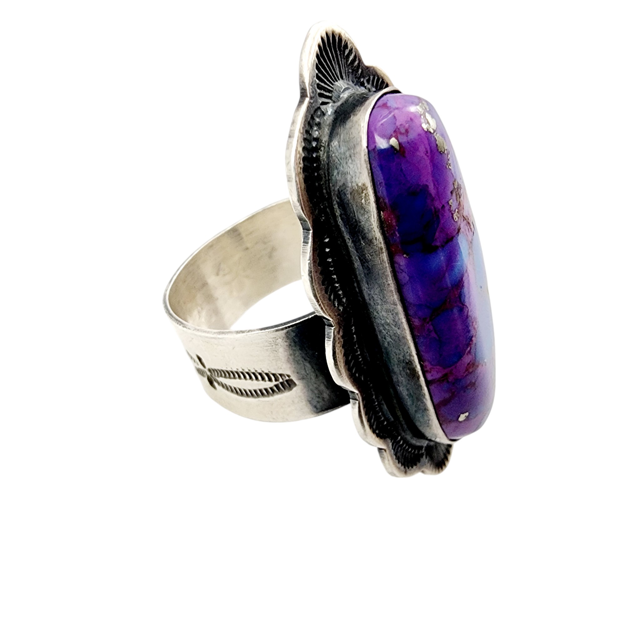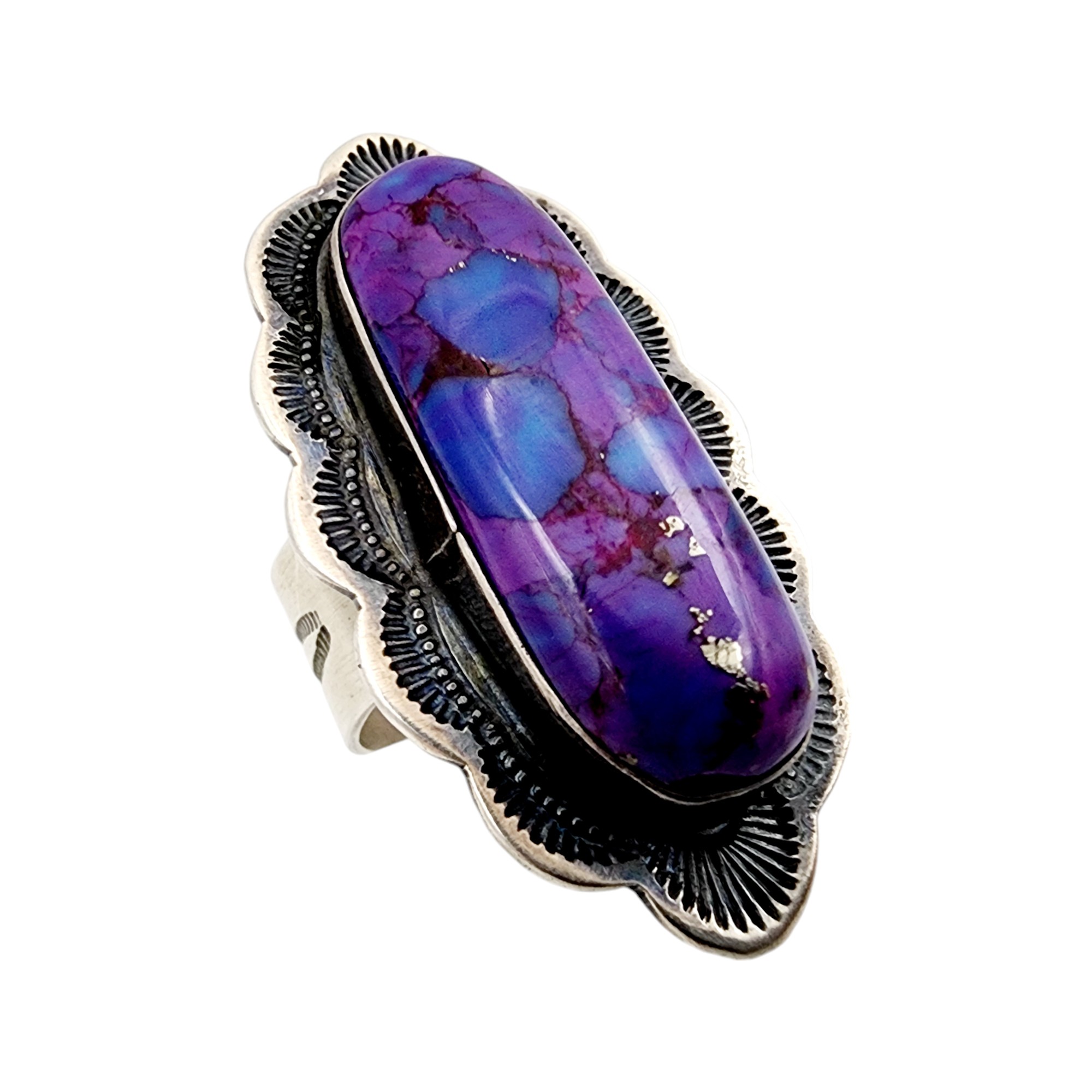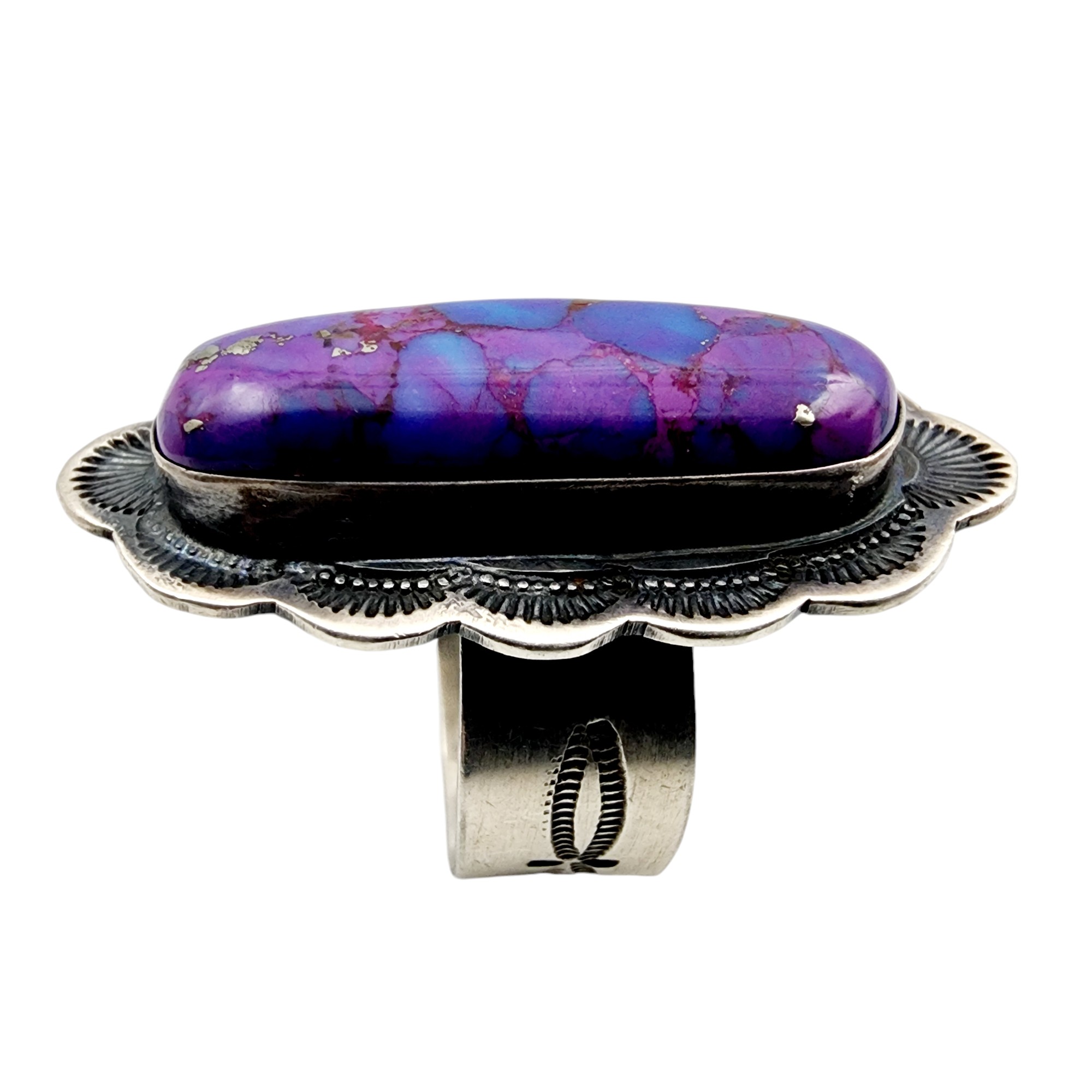 Bennie Ration & Rocki Gorman Navajo Purple Mohave Turquoise Hand Stamped Sterling Ring Sz 10.25 14.5g – this ring is OUTSTANDING! Well-made incredible craftmanship.