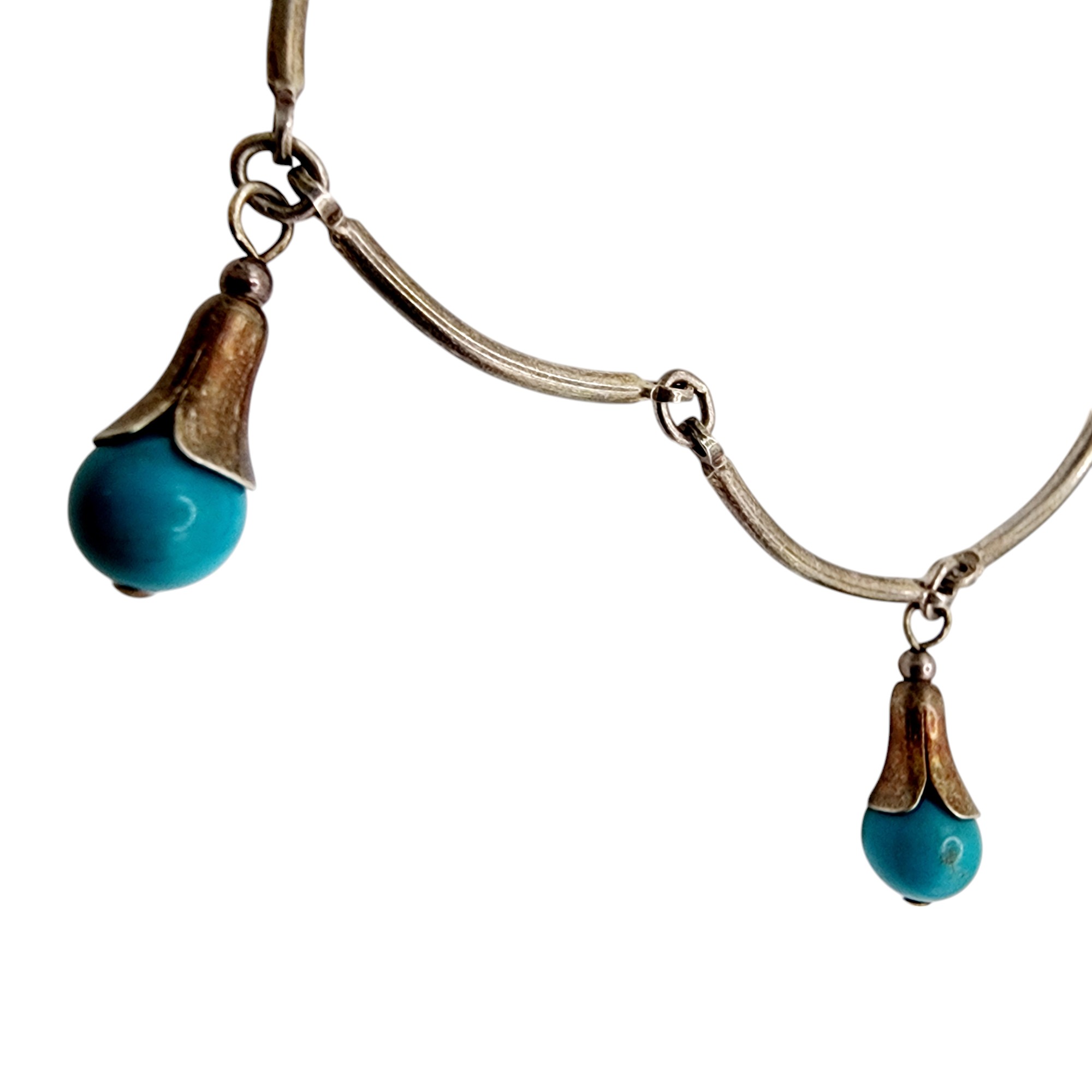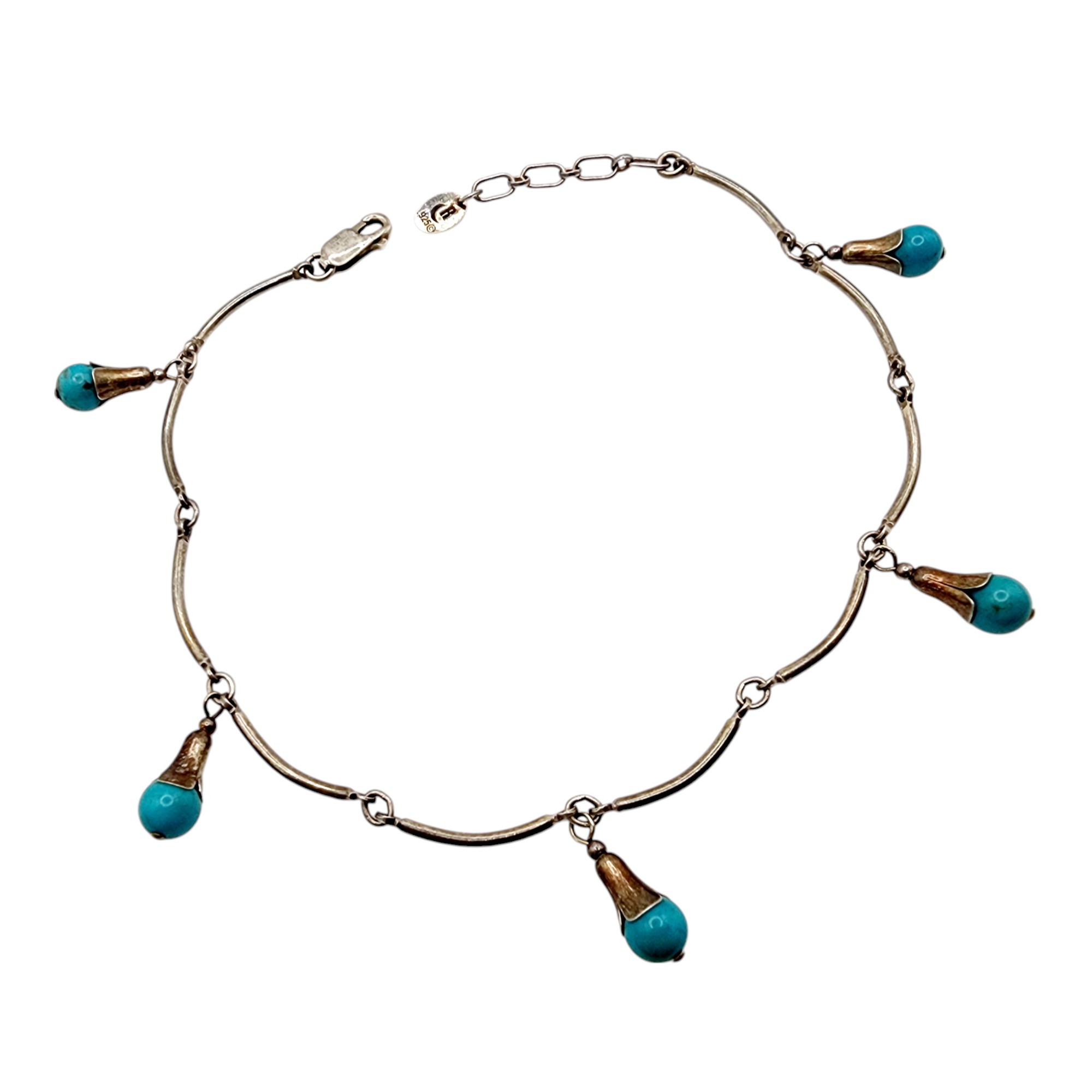 Carolyn Pollack Relios Sterling Turquoise Bead Anklet Bracelet 7.4g
