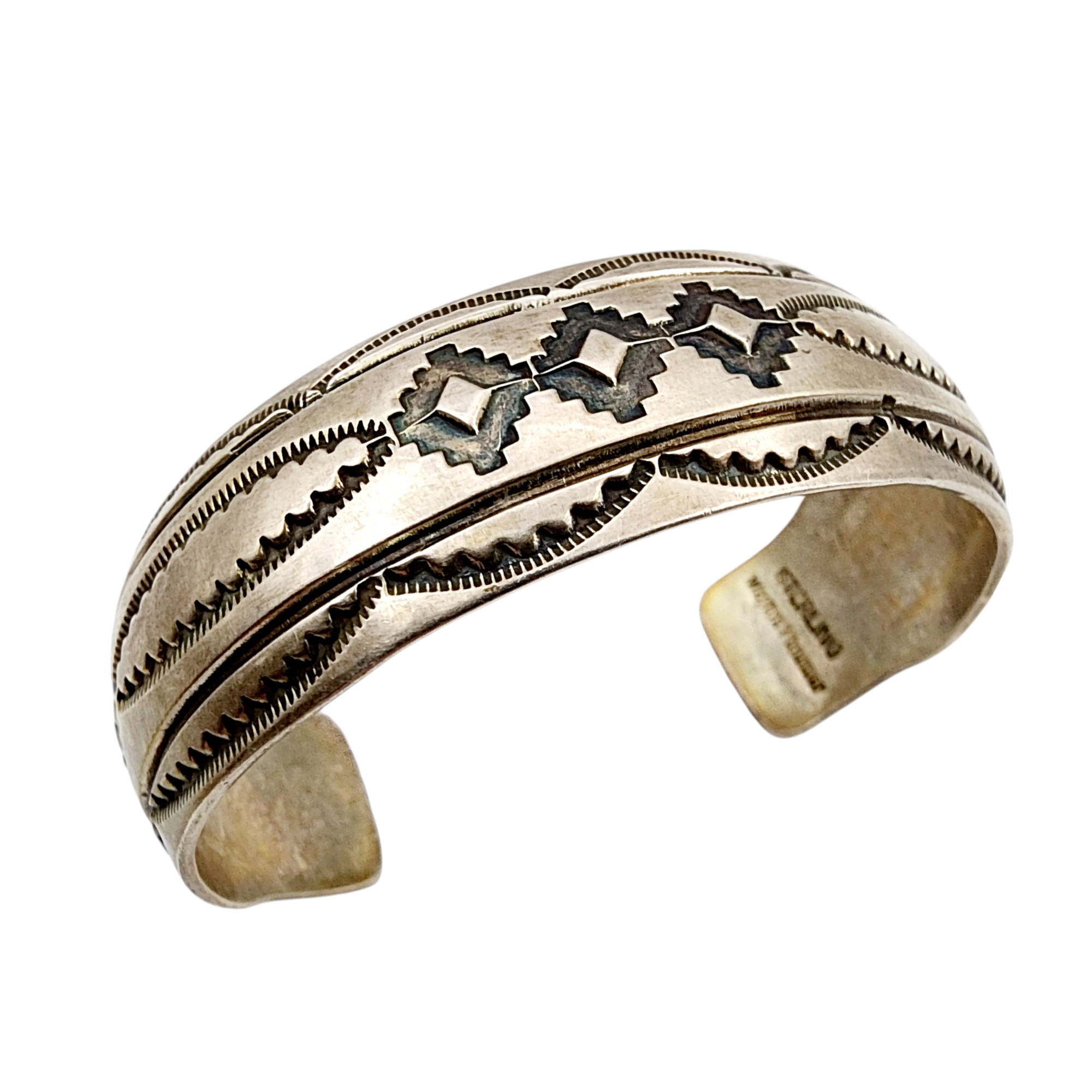 Vintage Waylon Plummer Navajo Sterling Hand Stamped Cuff 38.9g