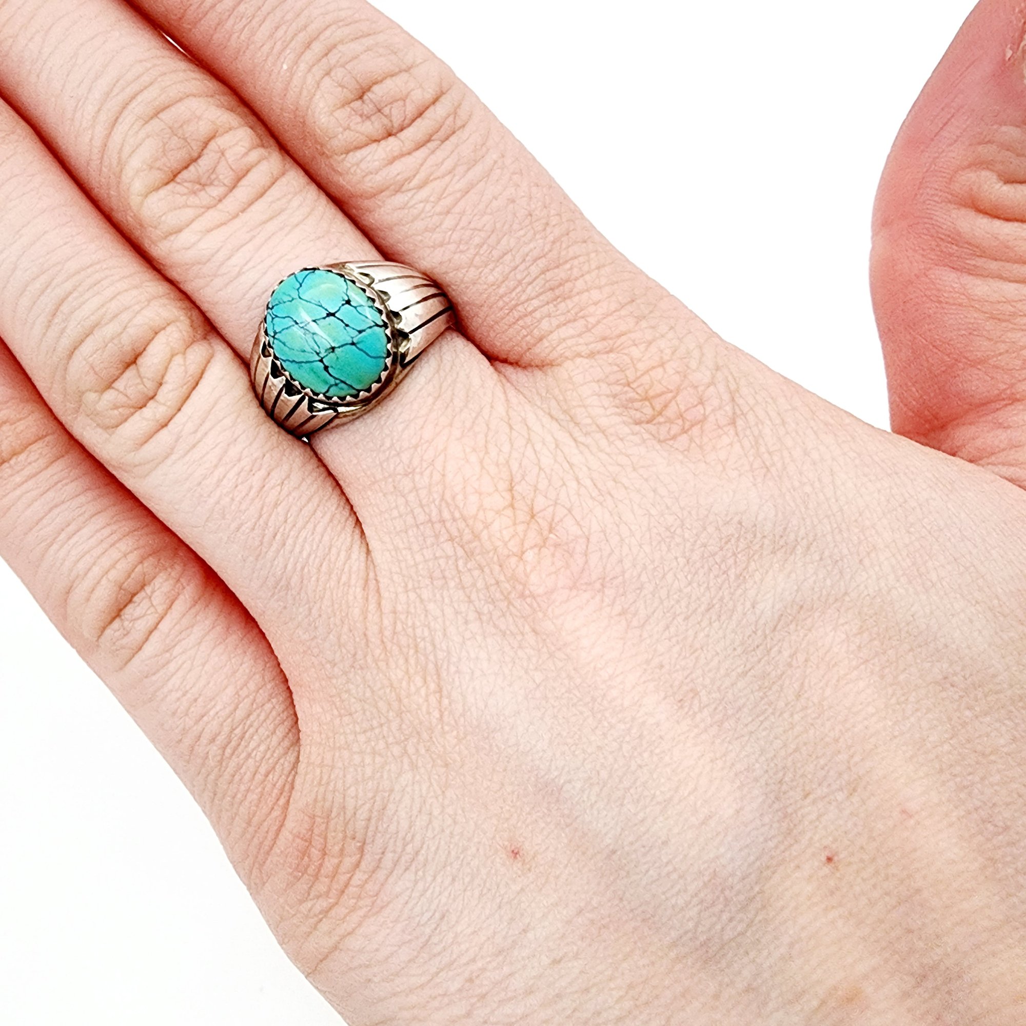 Vintage Elsie Yazzie Navajo Sterling Turquoise Ring Sz 8.25 7.7g
