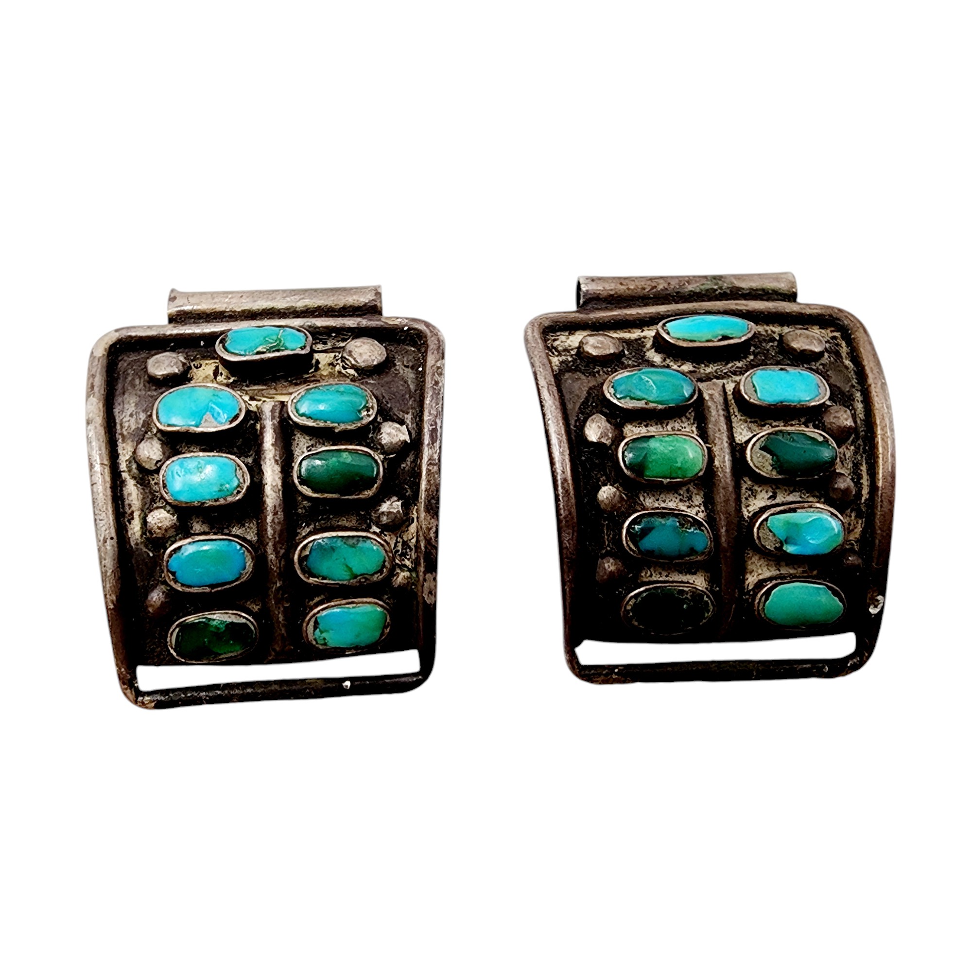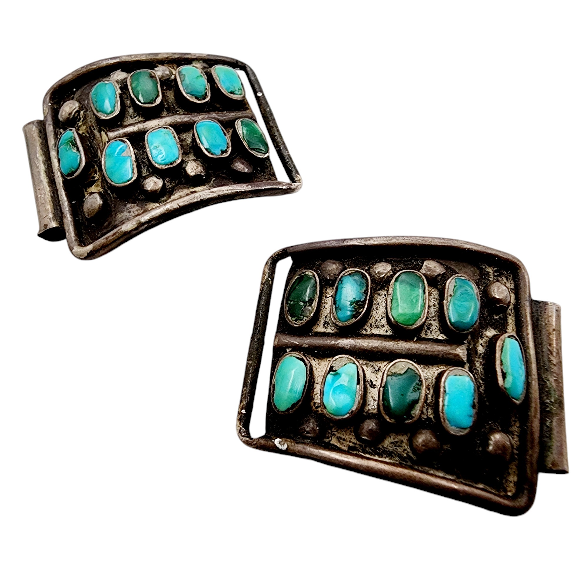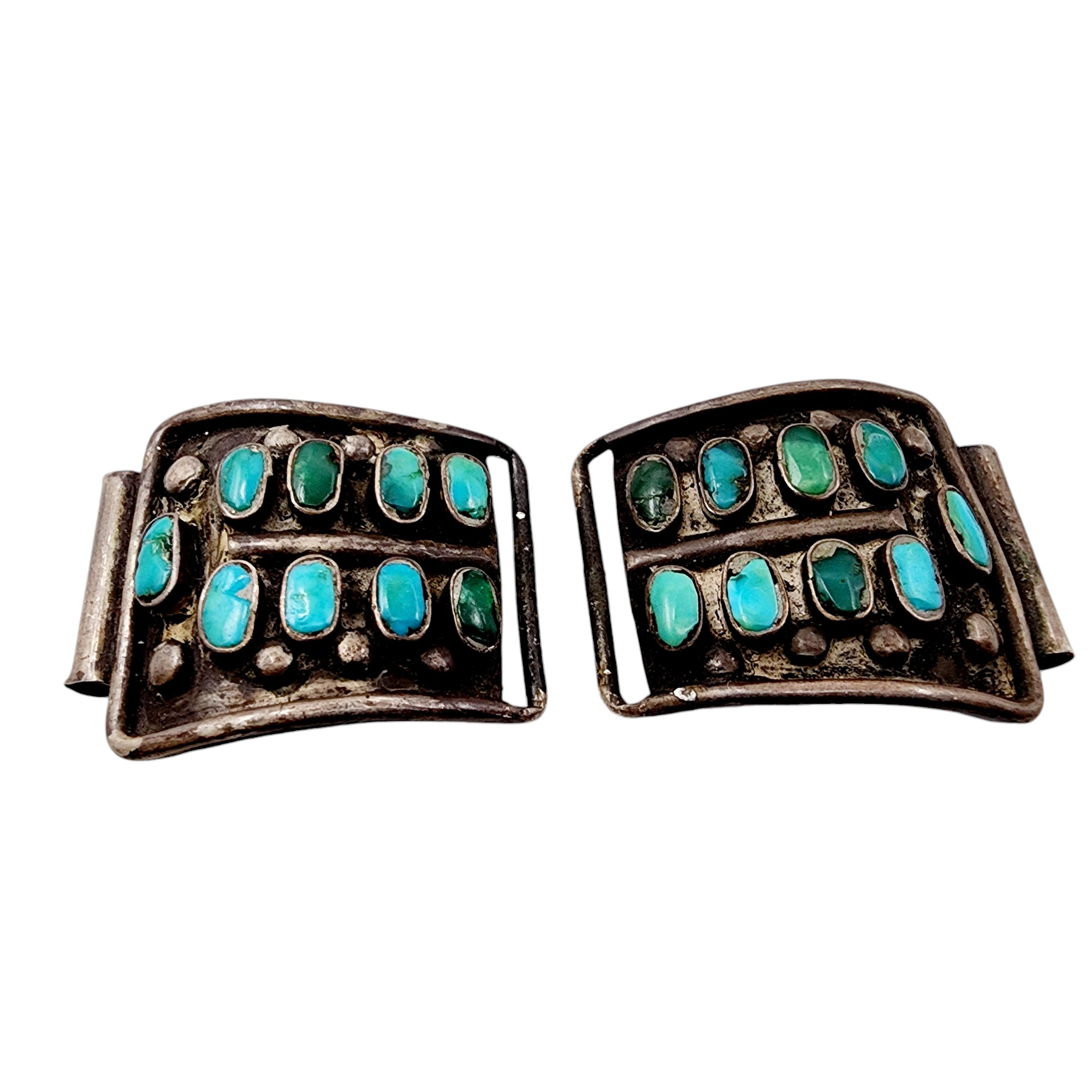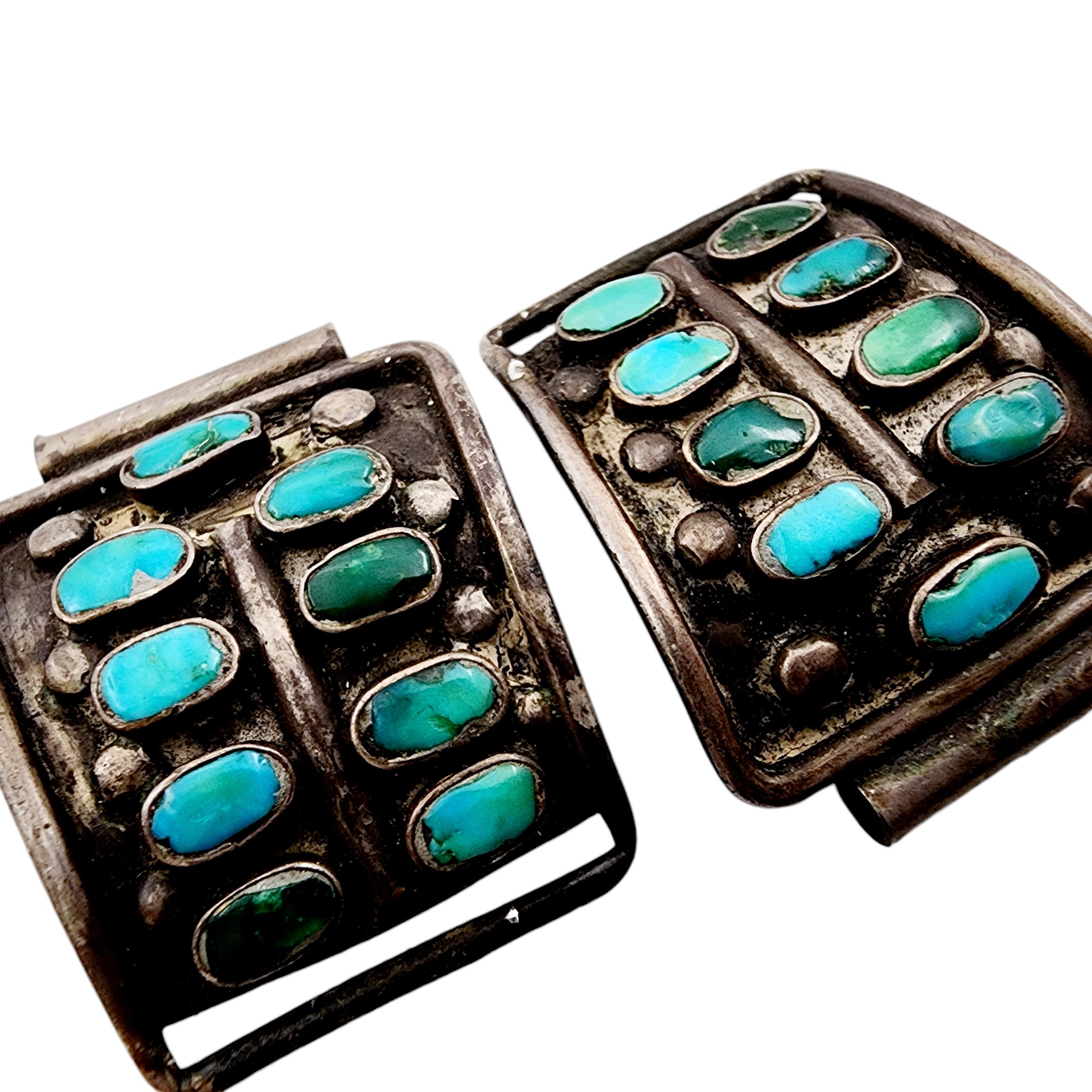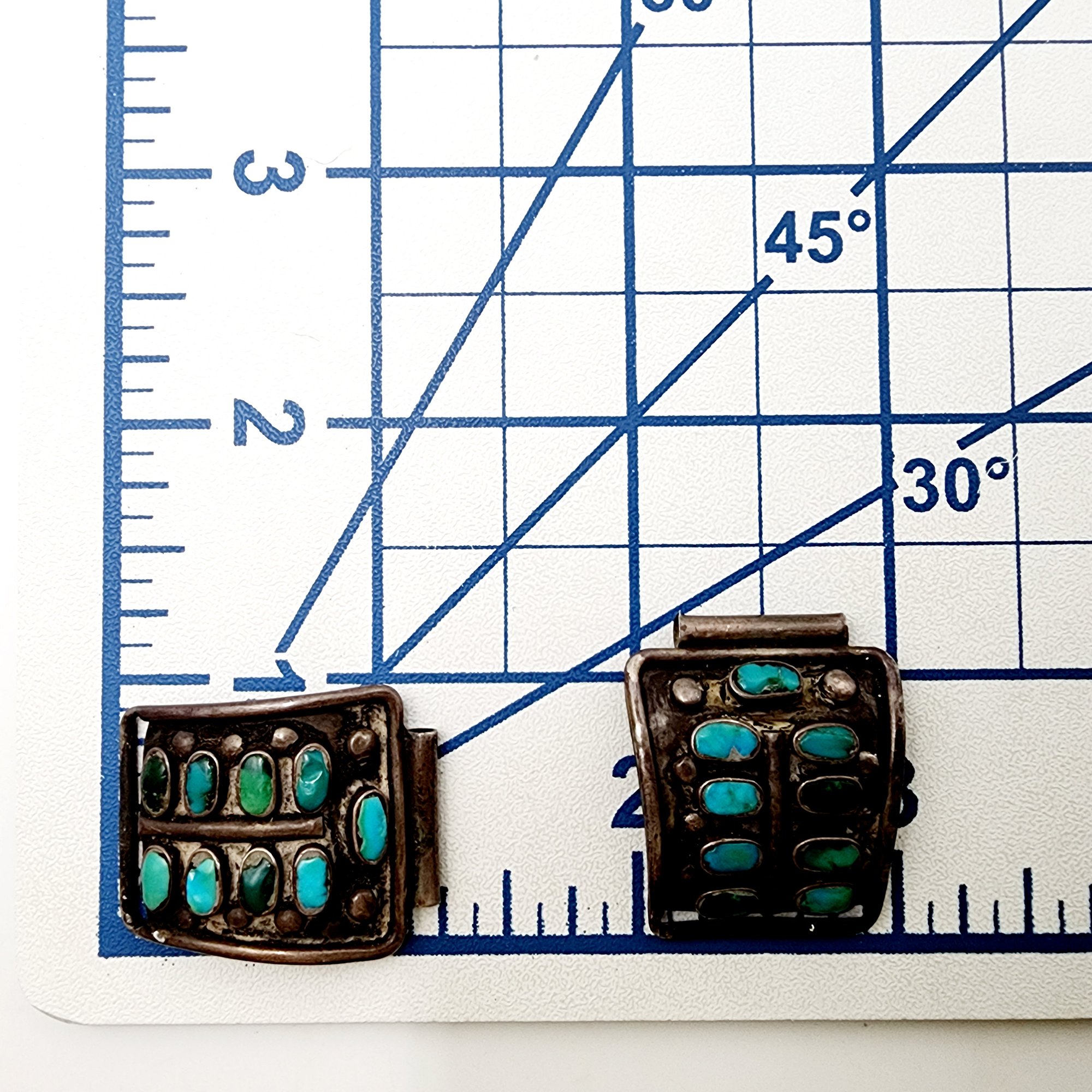 Vintage Zuni Sterling Cluster Turquoise Watch Tips 15.3g