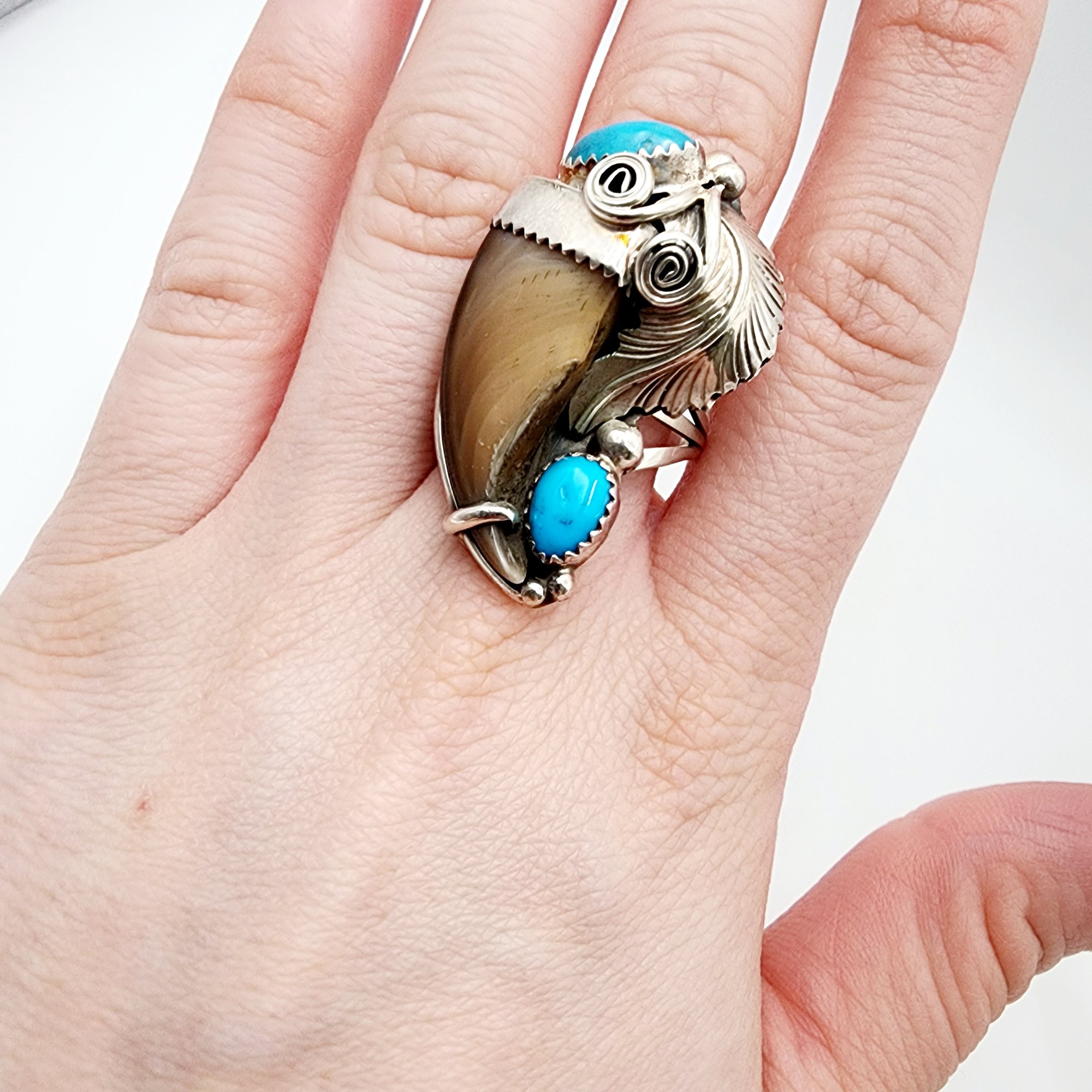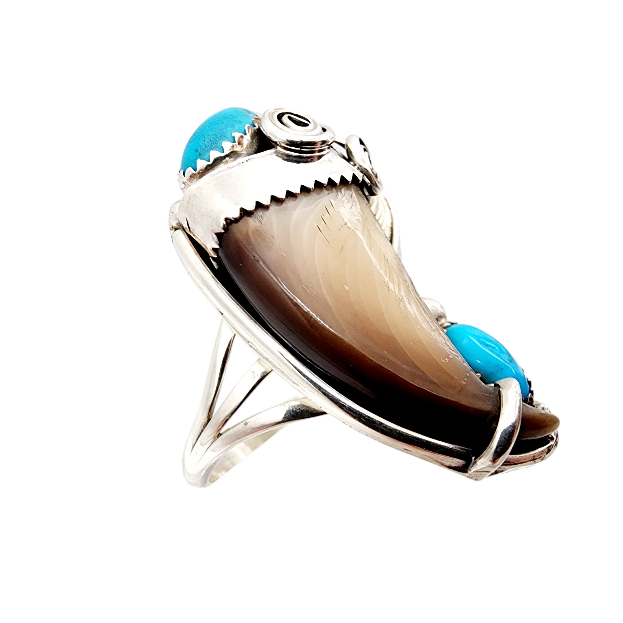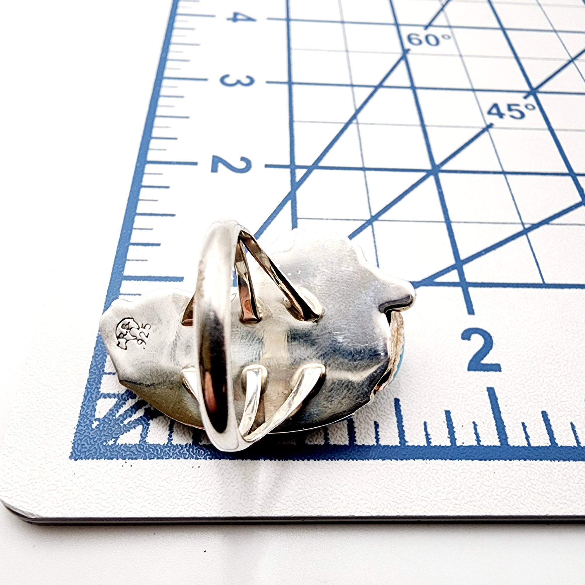 Running Bear Sterling Turquoise Bear Claw Ring Sz 10.75 11.4g *Previous owner cleaned/polished this item*
