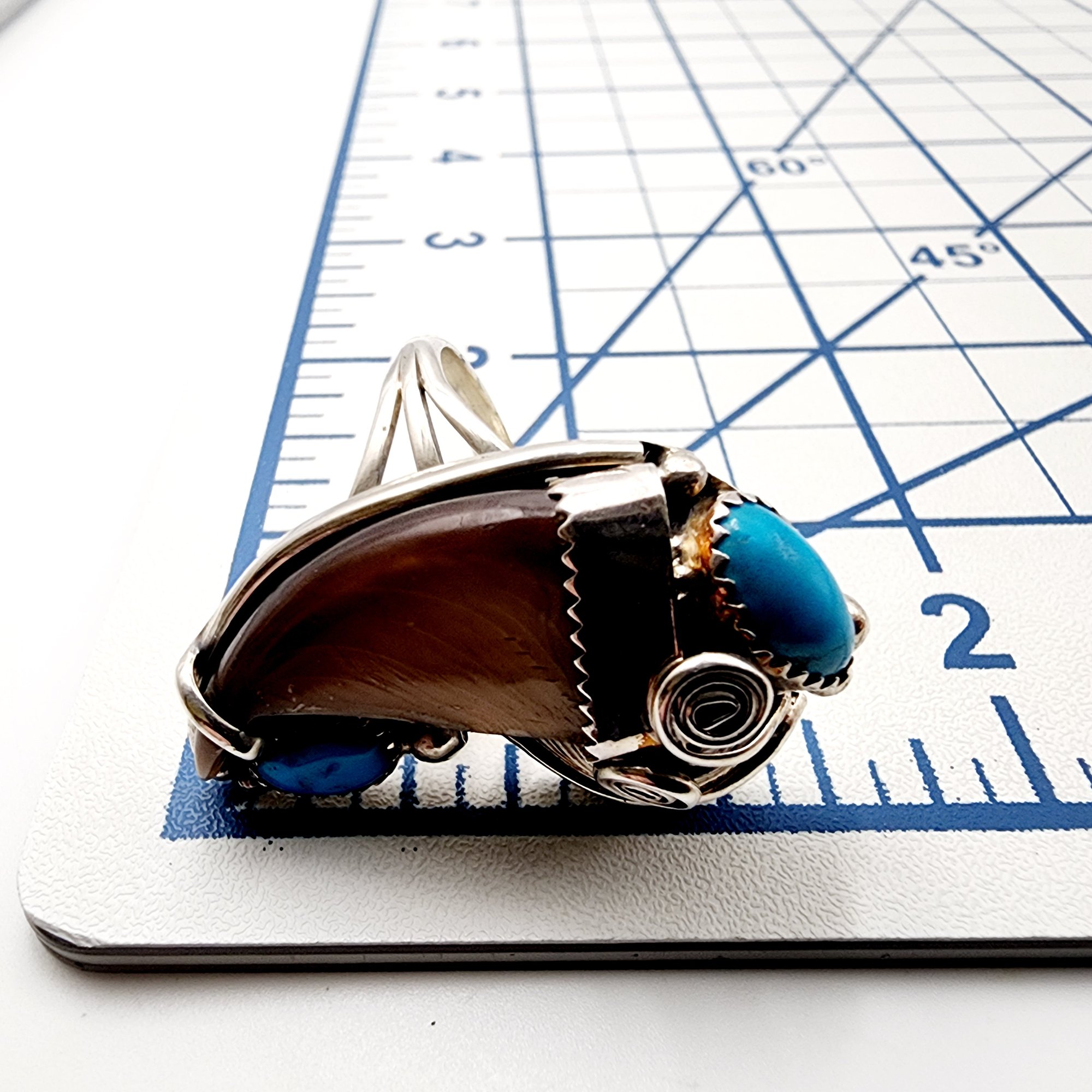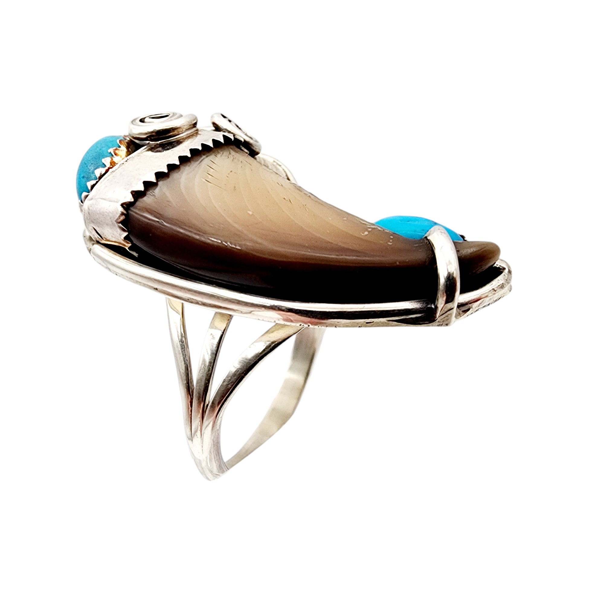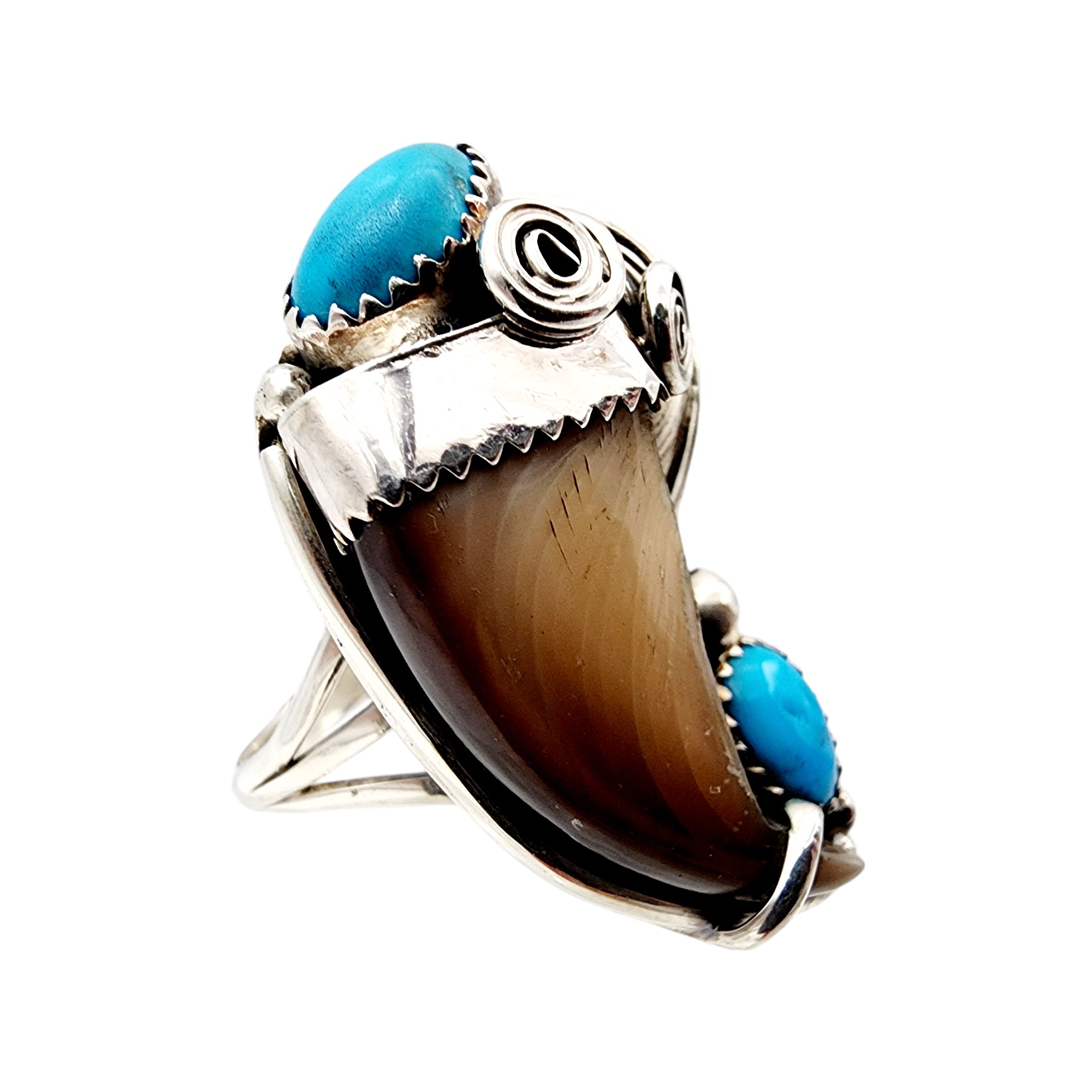 Running Bear Sterling Turquoise Bear Claw Ring Sz 10.75 11.4g *Previous owner cleaned/polished this item*