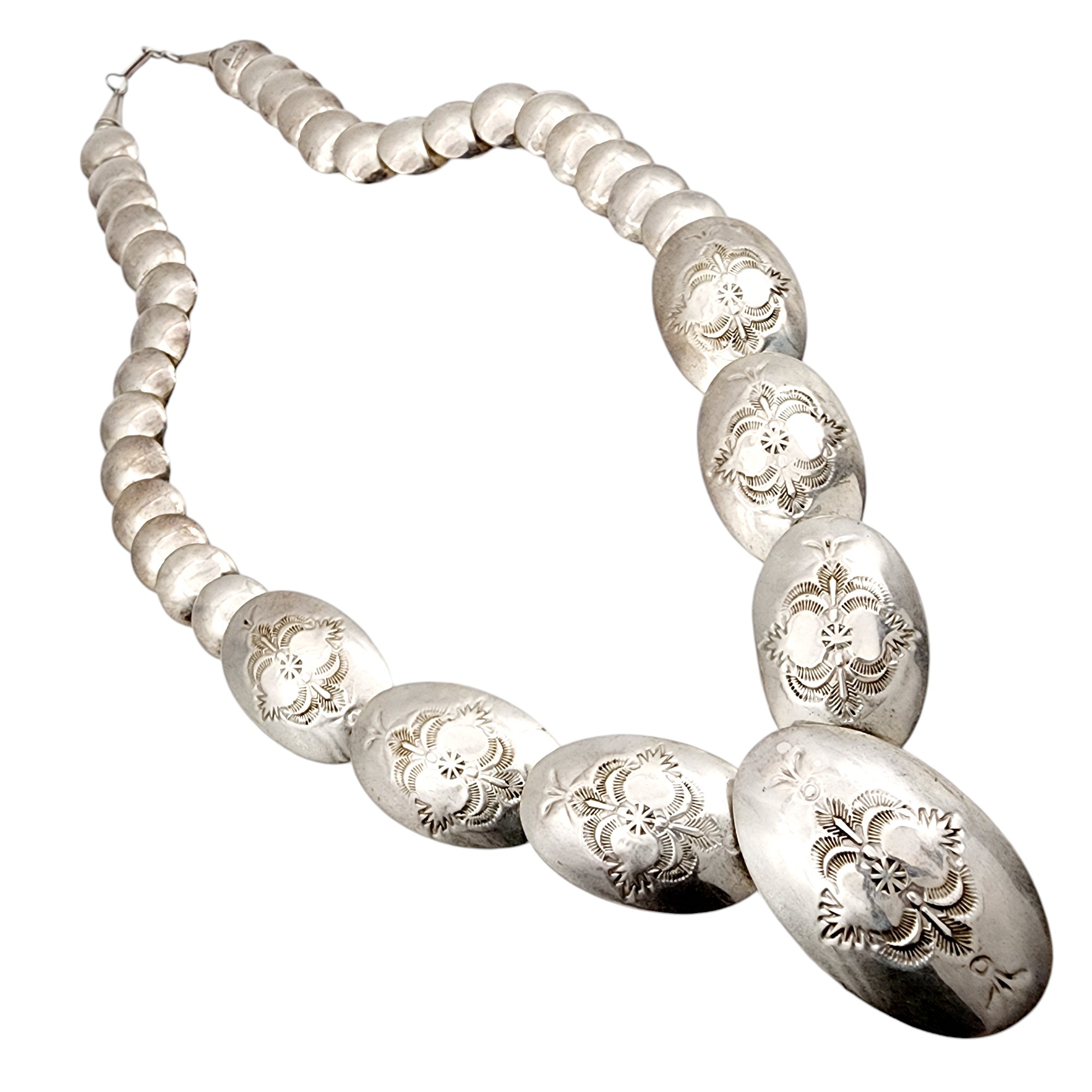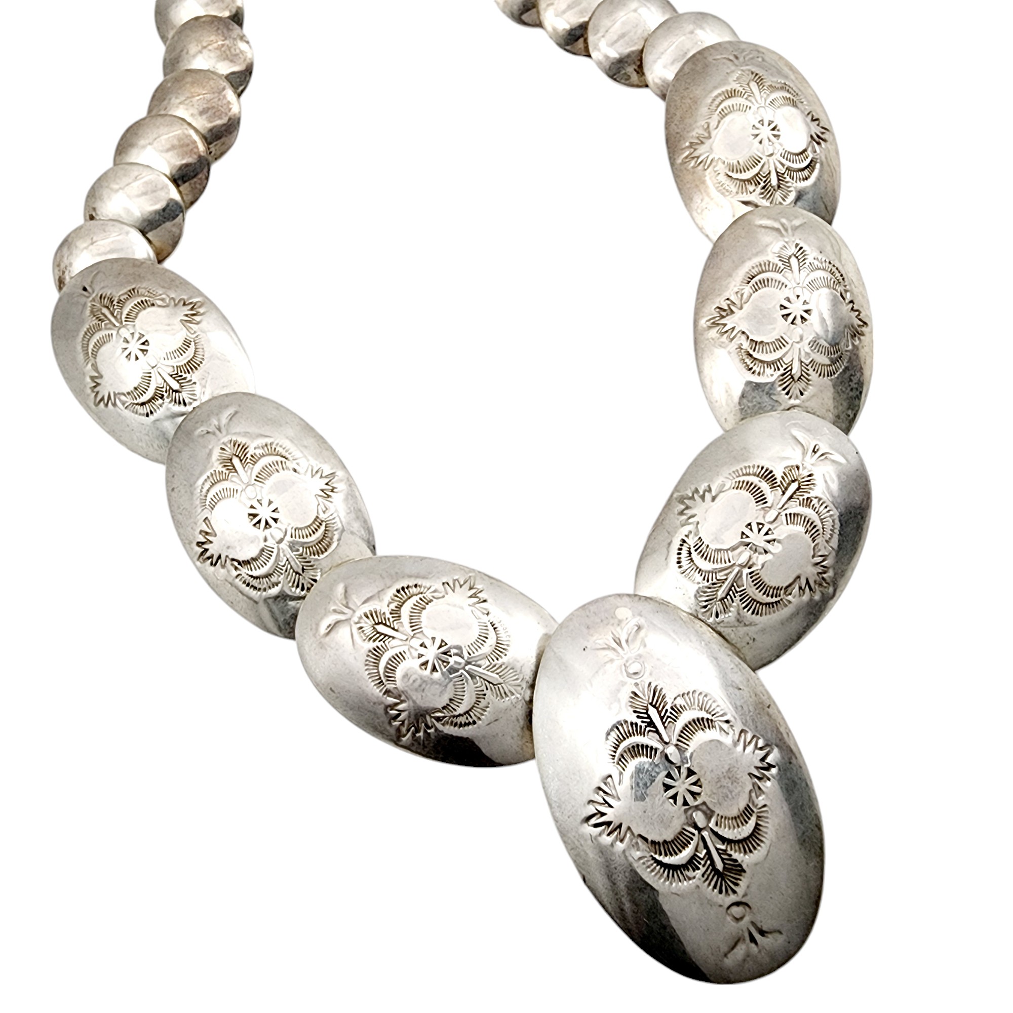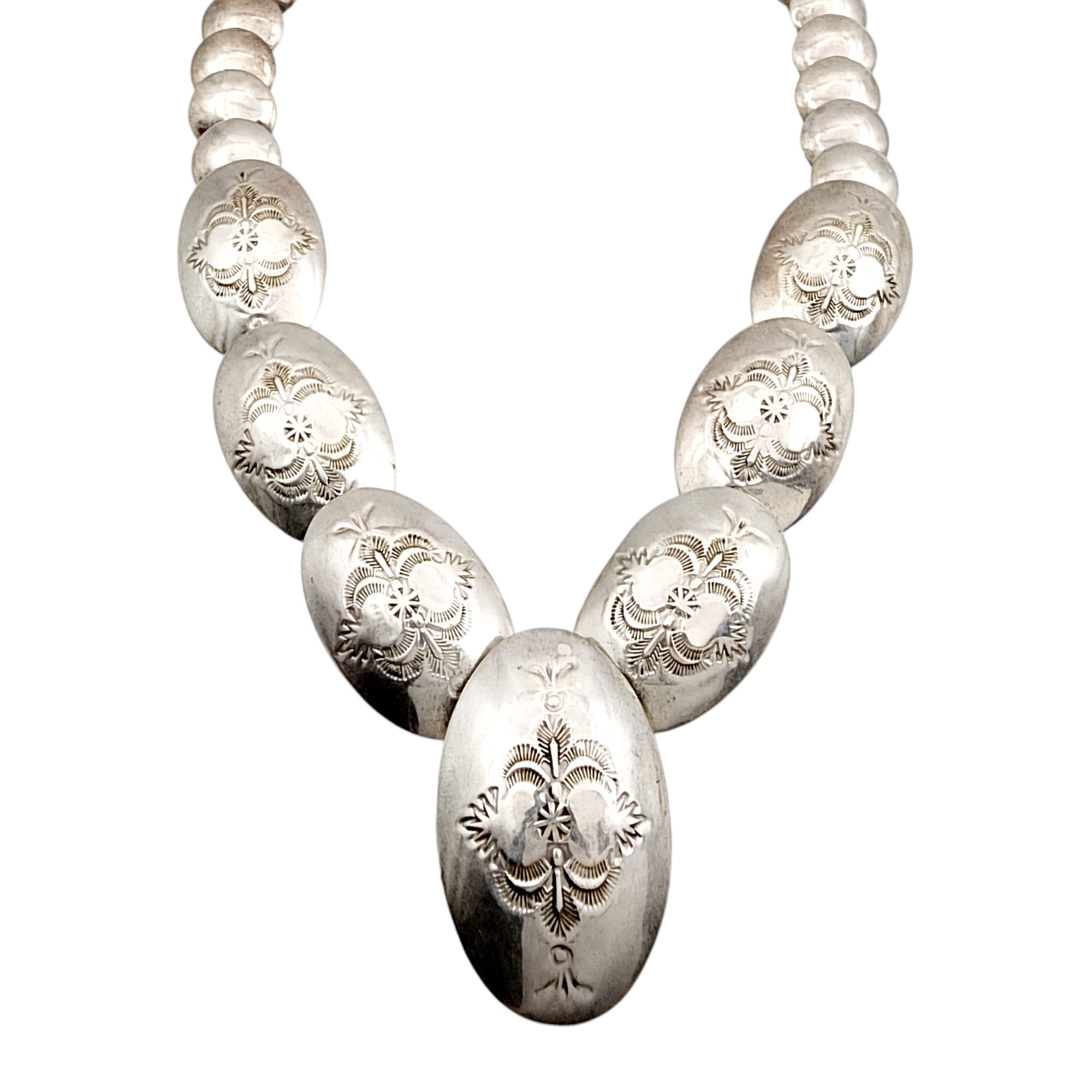Vintage Alfred Martinez Navajo Sterling Handstamped Pillow Bead Necklace 65g